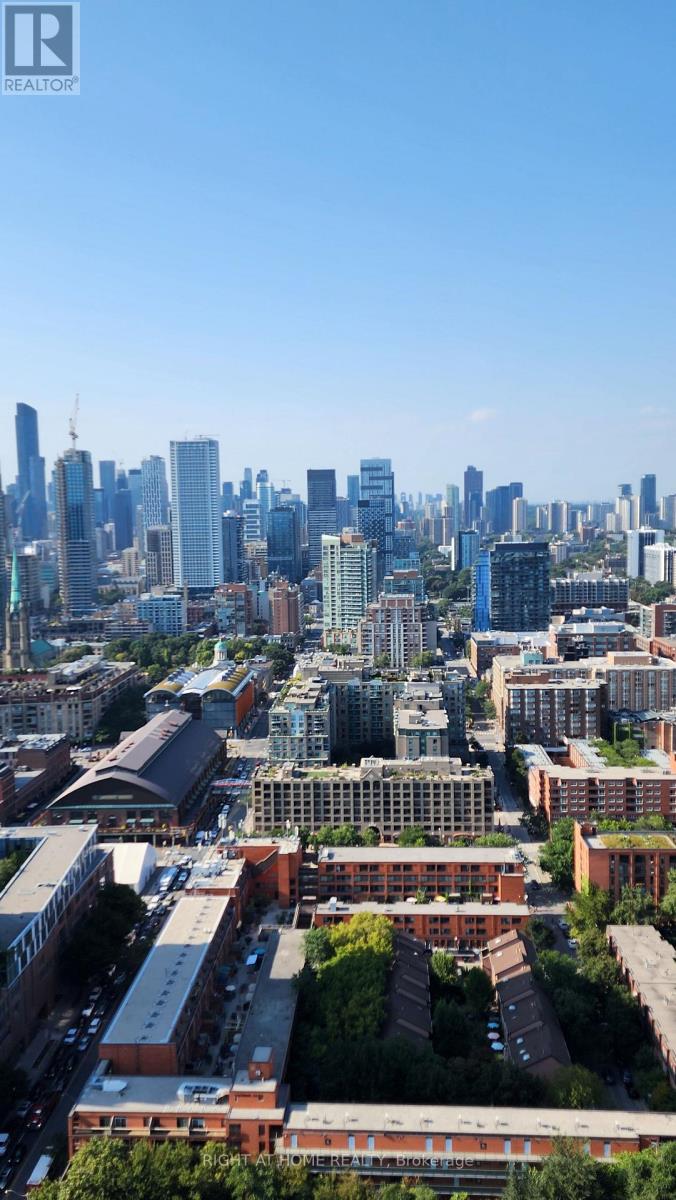 Luxury High Floor 2Bed + 2Wash Suite. (772Sq.Ft + Balcony 129 Sq. Ft) Daniels Lighthouse East Tower. Spacious and Practical Open Concept Layout With 9 ft Ceiling To Floor And Wall-To-Wall Windows.(Upgraded Smooth Ceilings & Kitchen Backsplash tile) Bright Clear North West Facing Corner Unit With Unobstructed Panoramic City View and Partially Lake View. Large Family Room With Walkout To Balcony, Premium Kitchen With Modern Cabinetry , Under Counter, Lighting, Tile Backsplash And A Full Suite Of Premium Built-In Appliances. Beautifully Finished Bathrooms With Marble Tiling, Modern Vanities And Premium Fixtures. Luxury Roll Type Window Covering.Steps To TTC Union Station, Loblaws, Farm Boy, Sugar Beach, Water's Edge Promenade, George Brown College. Mins To Scotia Arena, Financial District, St. Lawrence Market, Island Ferry and Distillery District. **EXTRAS** Xtreme Fitness Centre, Theater, Art & Craft Studio,Tennis/Basket ball Court, Garden prep studio, Party Room/BBQ Terrace, Zen Garden, Fireside Lounge, Social Club, Gardening Plots, 24hr Concierge, Appliance Sharing/Catering Kitchen. ** AAA Tenants ** No Smoking, No Cannabis, No Pets Allowed (id:64974)