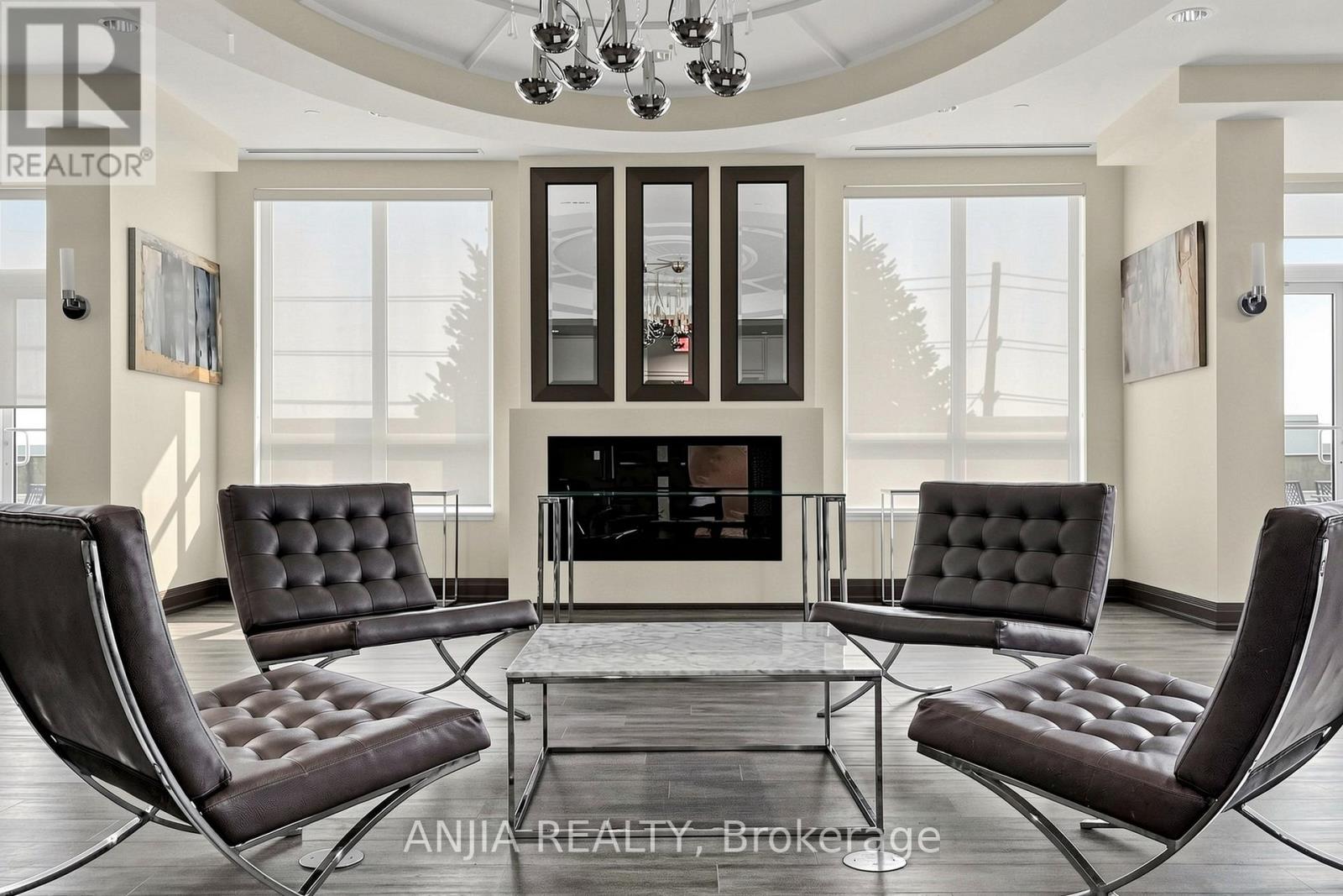 Experience the best of Thornhill living in this stunning, sun-filled 835 sq. ft. condo. This isn't your average unit-it's packed with high-end upgrades and unique features:Rare Features: Soaring 10-foot ceilings and a massive 210 sq. ft. private terrace with incredible Southeast city views. Same floor with amenities!The Suite: An open-concept layout featuring a gourmet kitchen with quartz countertops, custom backsplash, and stainless steel appliances.Premium Upgrades: Custom zebra roller shades and built-in closet organizers are already installed for you.also light fixtures and smart thermosta! Peace & Quiet: Located away from the elevators for maximum privacy.The Location: Direct indoor access to the Trade Centre and supermarket. Just minutes from Finch Subway and Hwy 407. (id:64974)