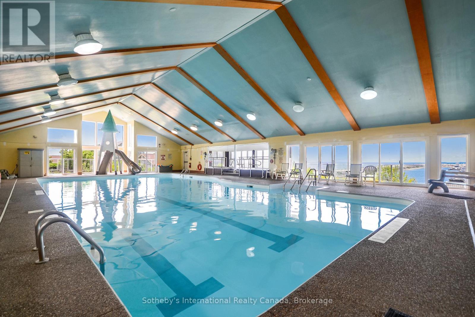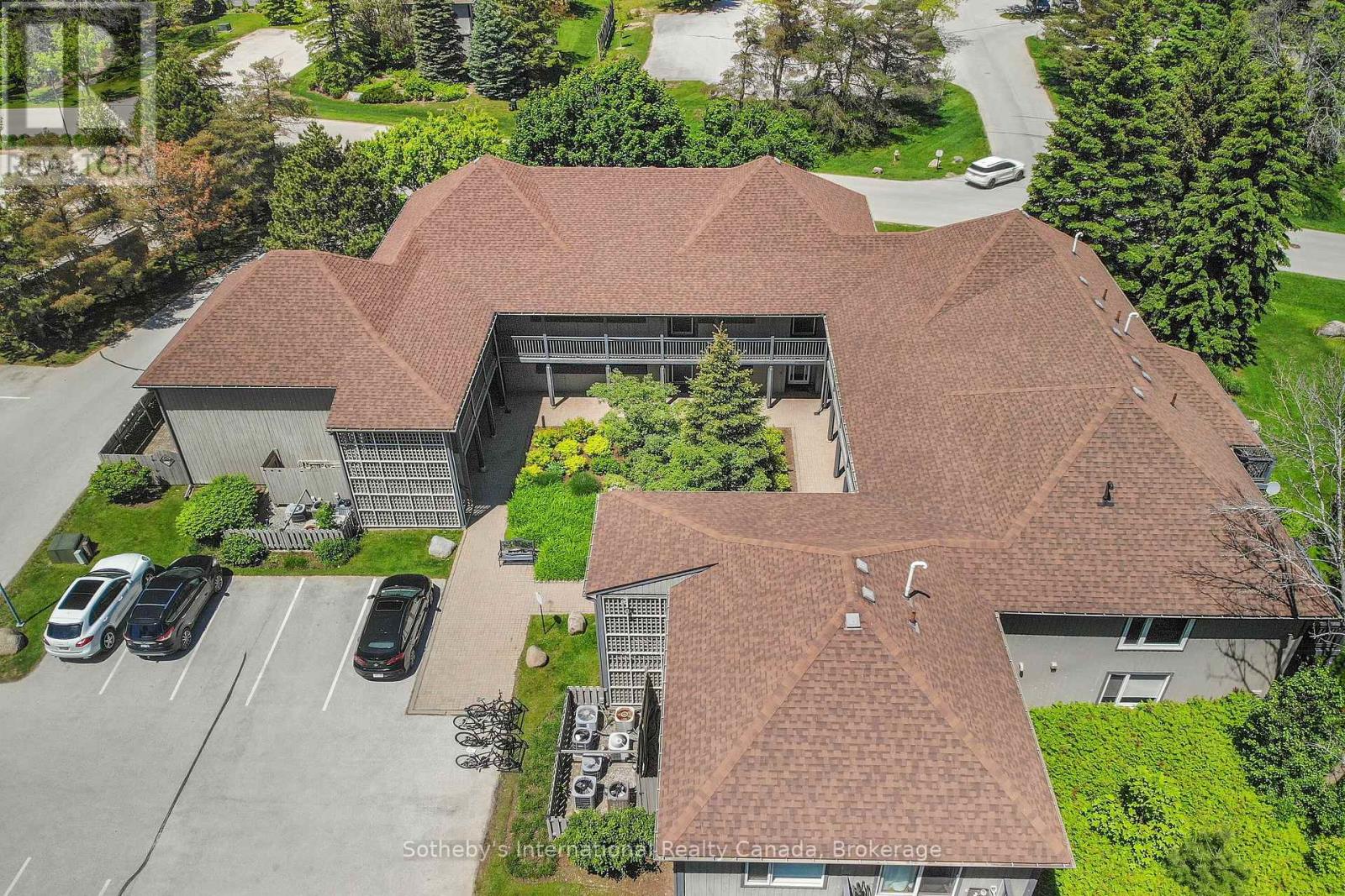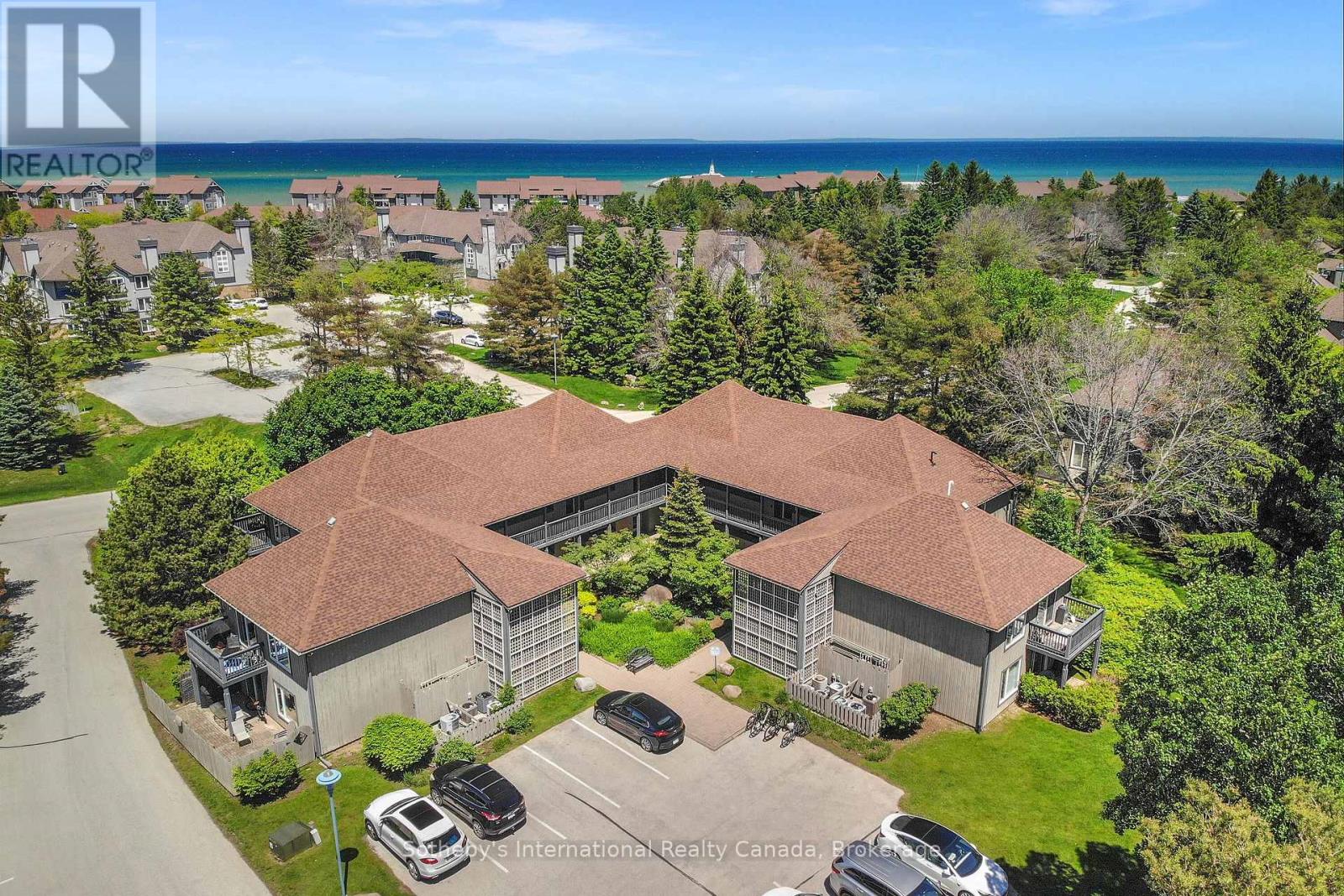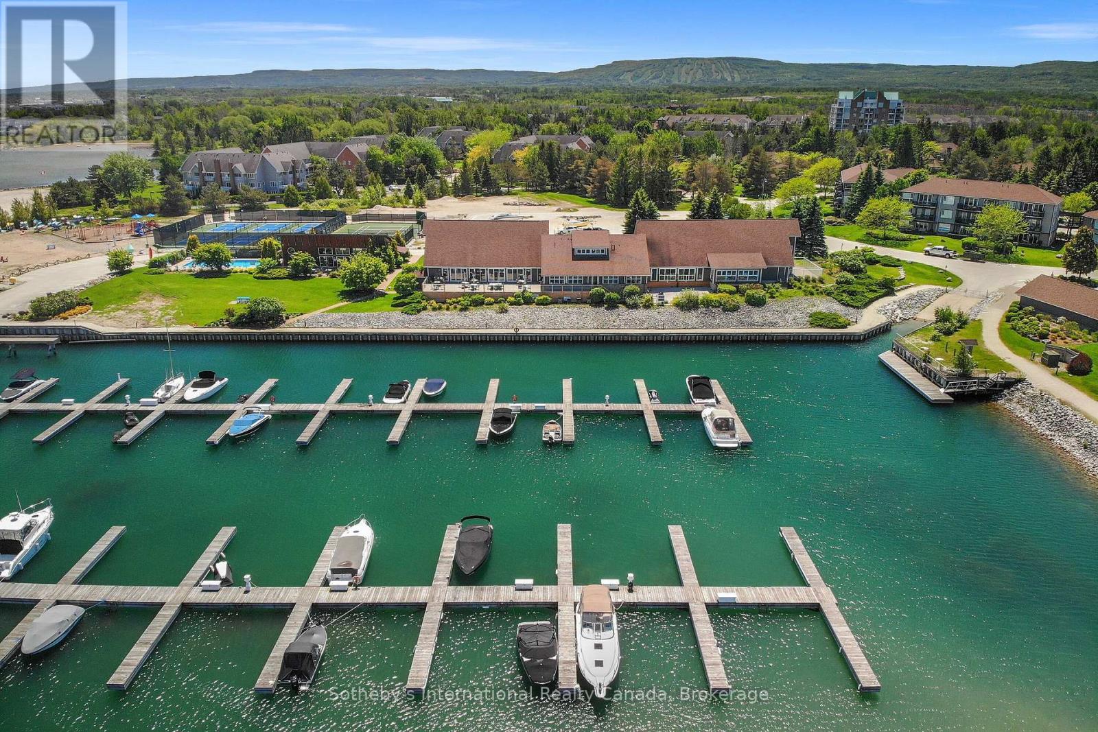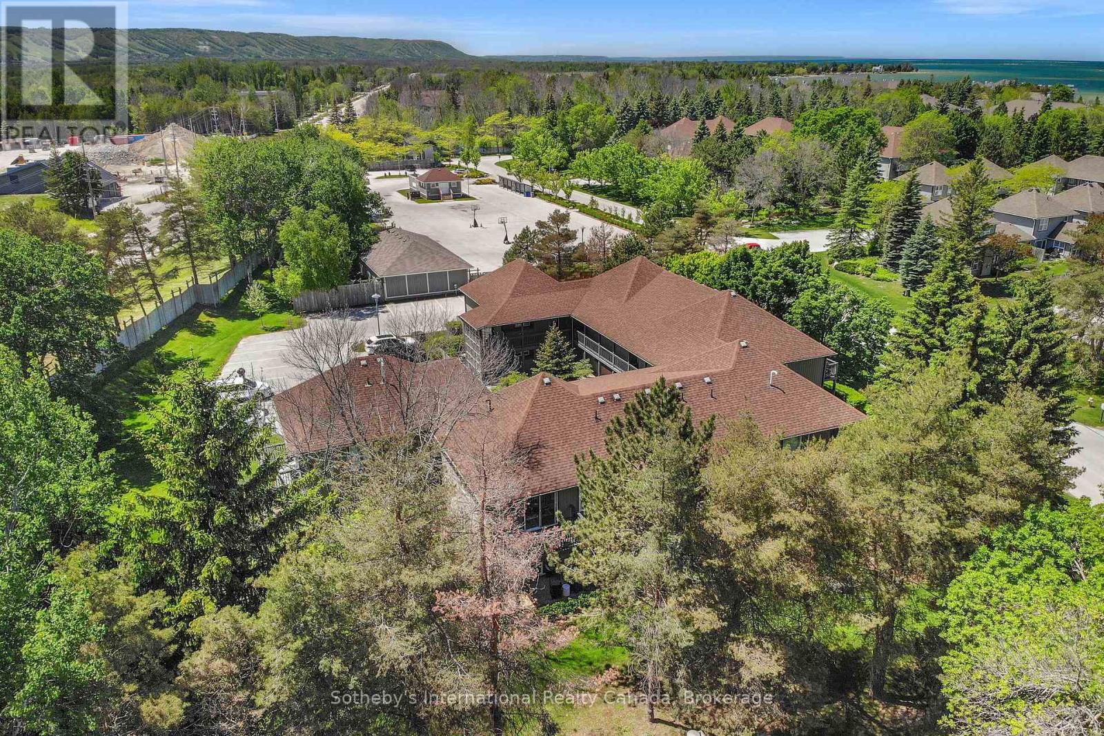 This 2 bedroom, 2 bathroom, 2nd floor unit has gorgeous forest\\landscape views out of the primary suite and living area. An open and bright livingroom with gas f/p, dining area and kitchen that features stainless steel appliances. The Primary suite has double closets and ensuite bath with shower. One large guest bedroom plus a second full bath. Enjoy over 1 mile of walking paths in the community, with over 10 acres of environmentally protected lands including a private marina and boat house, 7 tennis courts, 4 pickleball courts, 2 outdoor pools, a sandy beach, two additional beaches and a deep swimming area off the yacht pier, a volleyball court, kayak racks\\access and putting green. The recreation centre is huge and has an indoor pool, spas, sauna, gym, games room, library, double kitchen, outdoor patio seating, social room with piano and more! Just minutes to shopping or entertainment at the Gayety Theatre, the ski hills at Blue Mountain, and on route to the quaint town of Thornbury, not to mention having Georgian Bay and Wasaga Beach at your finger tips!. Updates include; flooring and trim (2024), water heater (2023), windows (2021), gas line to BBQ (2019). The deck has a view of beautiful trees\\forest which provides a very private and enjoyable outdoor experience. You would own two outdoor storage lockers and have access to two more common storage areas. There is one parking space with additional guest parking in the immediate parking area. (id:64974)