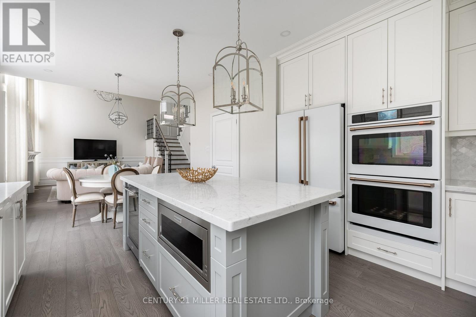 Welcome to 3310 Timeless Drive, a beautifully upgraded, move-in-ready home in Oakville's highly sought-after Lakeshore Woods, offering over 3,500 sq. ft. of finished living space on a private, tree-lined lot with excellent curb appeal and desirable south-east exposure that fills the home with natural light throughout the day. Step inside through the fiberglass front door to discover elegant millwork, a neutral designer palette, and a dramatic two-storey family room with a gas fireplace, oversized windows, custom blinds, and an open staircase with iron pickets. The first and second floors were extensively redone in January 2021, with approximately $150,000 spent on renovations including hardwood floors, new chandeliers throughout, and beautifully updated bathrooms with marble showers and sinks. The stylish white kitchen was fully refreshed in April 2022 at a cost of approximately $100,000, featuring branded appliances, new cabinetry, a marble backsplash, and quartz countertops, with a walk-out to a low-maintenance, well-treed backyard complete with a hot tub, ideal for entertaining. Upstairs, the spacious primary retreat offers a walk-in closet and spa-inspired ensuite with a soaker tub, while main-floor laundry with inside access to the double garage adds convenience. The professionally finished basement extends the living space with a large recreation room, home office or optional fifth bedroom, an additional office nook, cold room, and ample storage. Ideally located on a quiet street with quick access to the QEW and GO Train, and just minutes to Bronte Village, the harbour, shops, restaurants, lakefront trails, beaches, parks, tennis courts, and splash pad, this polished home offers an exceptional lakeside lifestyle. (id:64974)
