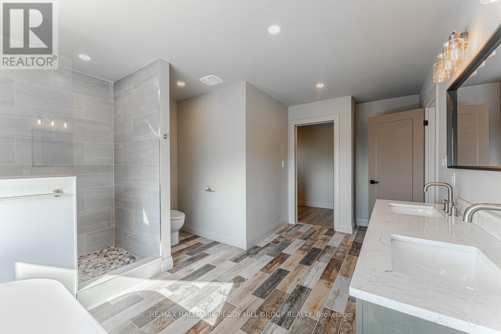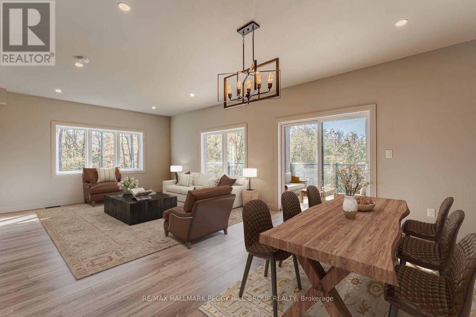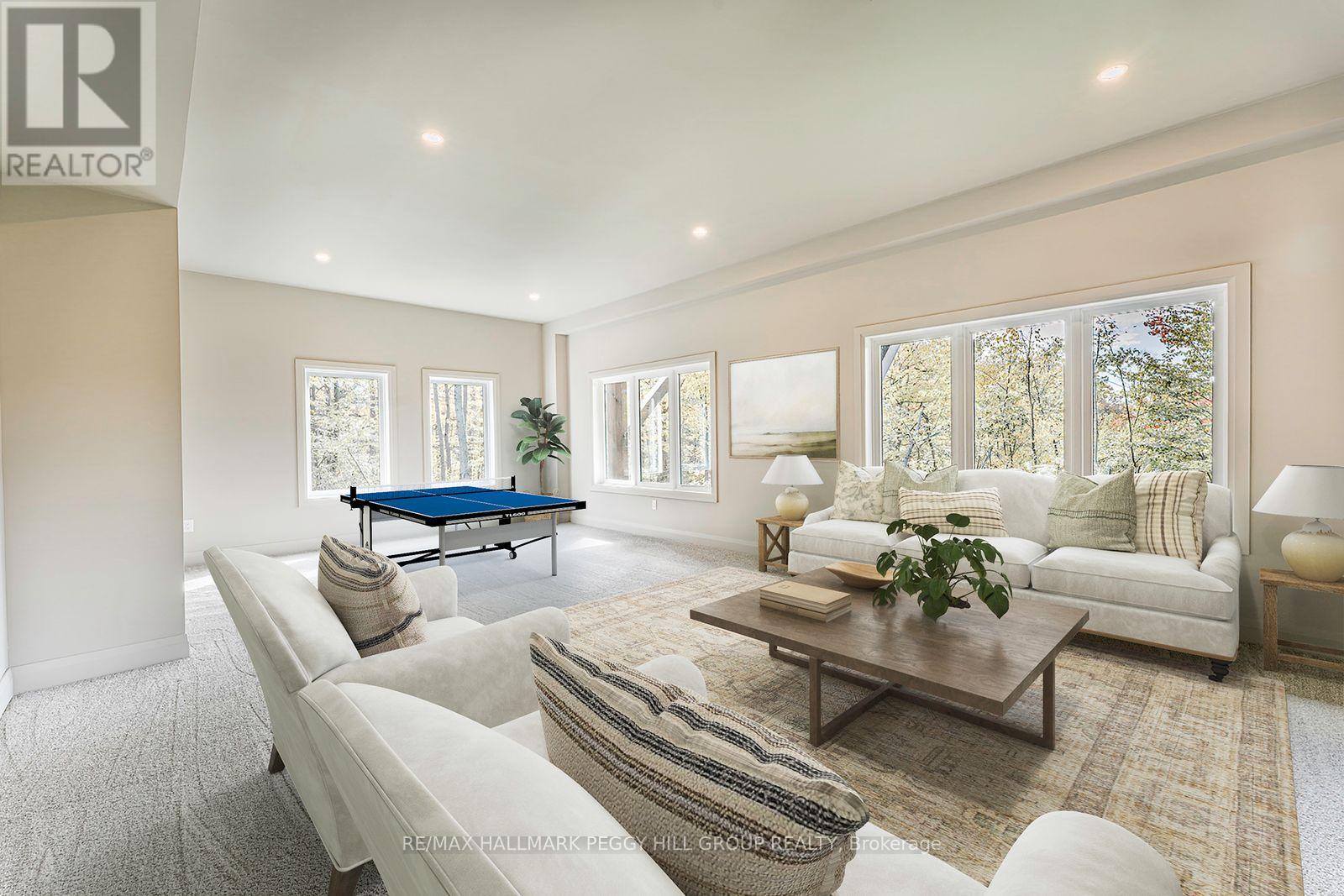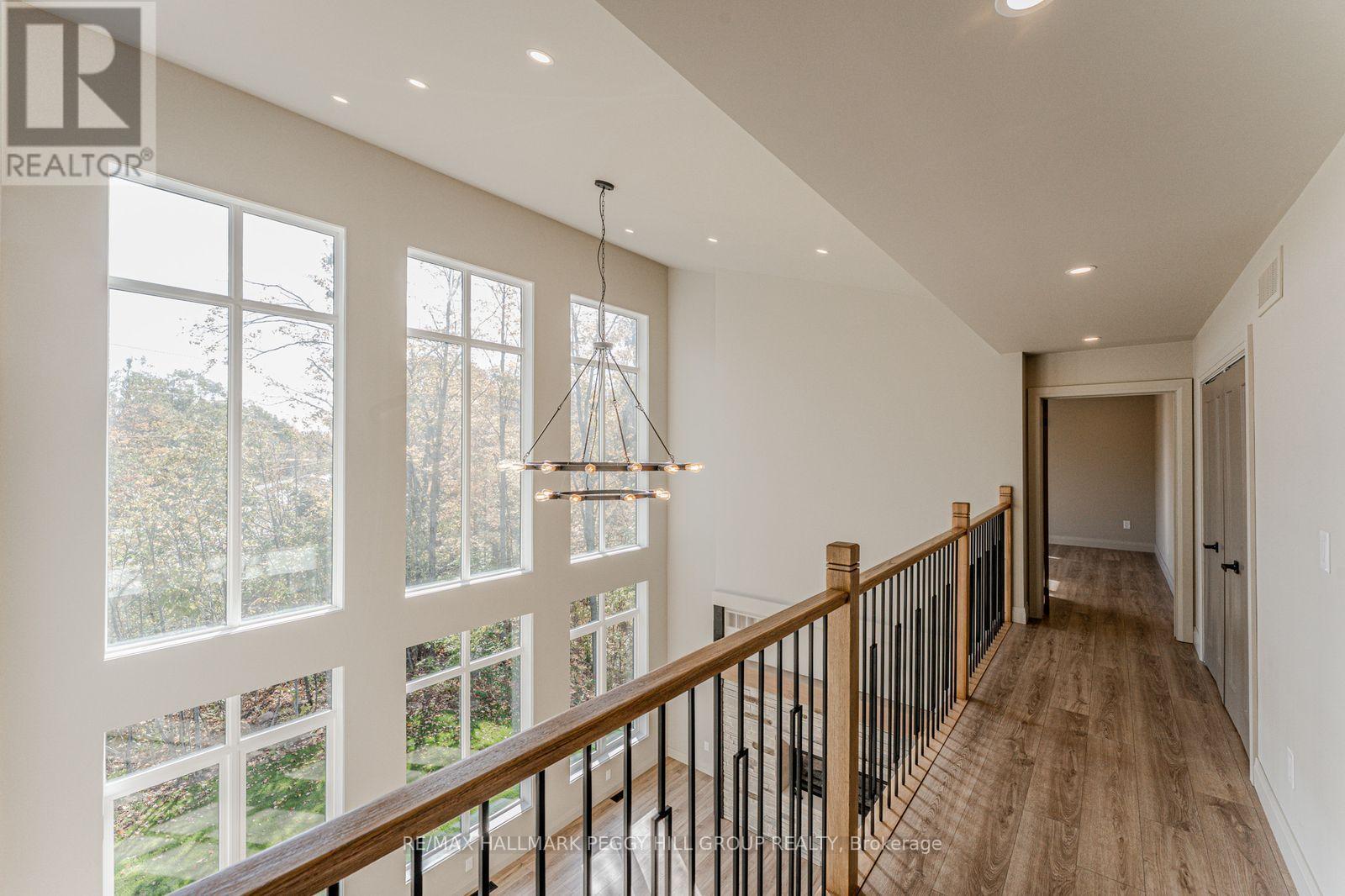 2024-BUILT 4,200+ SQ FT CHALET-STYLE RESIDENCE MEETS FOUR-SEASON ADVENTURE IN HORSESHOE VALLEY! Indulge in the artistry of modern design at this custom-built 2024 home in Horseshoe Valley, capturing panoramic western views and sunsets from its commanding hilltop setting. Boasting over 4,200 sq ft of above-grade living space, this modern chalet showcases striking black Hardie Board siding, stone facade accents, a fibreglass roof, and multiple glass-railed decks designed to celebrate the surrounding scenery. The open-concept main level is ideal for entertaining, highlighted by a 24-ft vaulted ceiling, floor-to-ceiling windows, and a double-sided Napoleon fireplace connecting the great room to the dining/family areas. The gourmet kitchen features Caesarstone quartz countertops, custom two-tone cabinetry, a dramatic X-leg island, a chevron tile backsplash, a pantry, and modern lighting, all flowing to a dining area with built-in shelving and a walkout. A private main-floor office provides a peaceful workspace, while the third level hosts the luxurious primary suite with its own fireplace, balcony, walk-in closet, and spa-inspired ensuite with a freestanding tub, double vanity, and glass shower, along with two additional bedrooms, a full bathroom, and a laundry room. The ground level extends the home's versatility with 9'9" ceilings, a bright rec room, an additional bedroom, and a full bathroom. Engineered hardwood, ceramic tile finishes, and meticulous craftsmanship are complemented by superior construction featuring an ICF foundation, LVL beams, and double-studded 2x6 walls. Within walking or golf cart distance to Horseshoe Resort, The Valley Club, tennis courts, and scenic trails, and just minutes to Vetta Nordic Spa, Copeland Forest, Lake Horseshoe, local dining, and Highway 400, this exceptional home is also near a new school, community centre, clinic, and fire station, defining sophisticated four-season living in one of Ontario's most prestigious destinations. (id:64974)