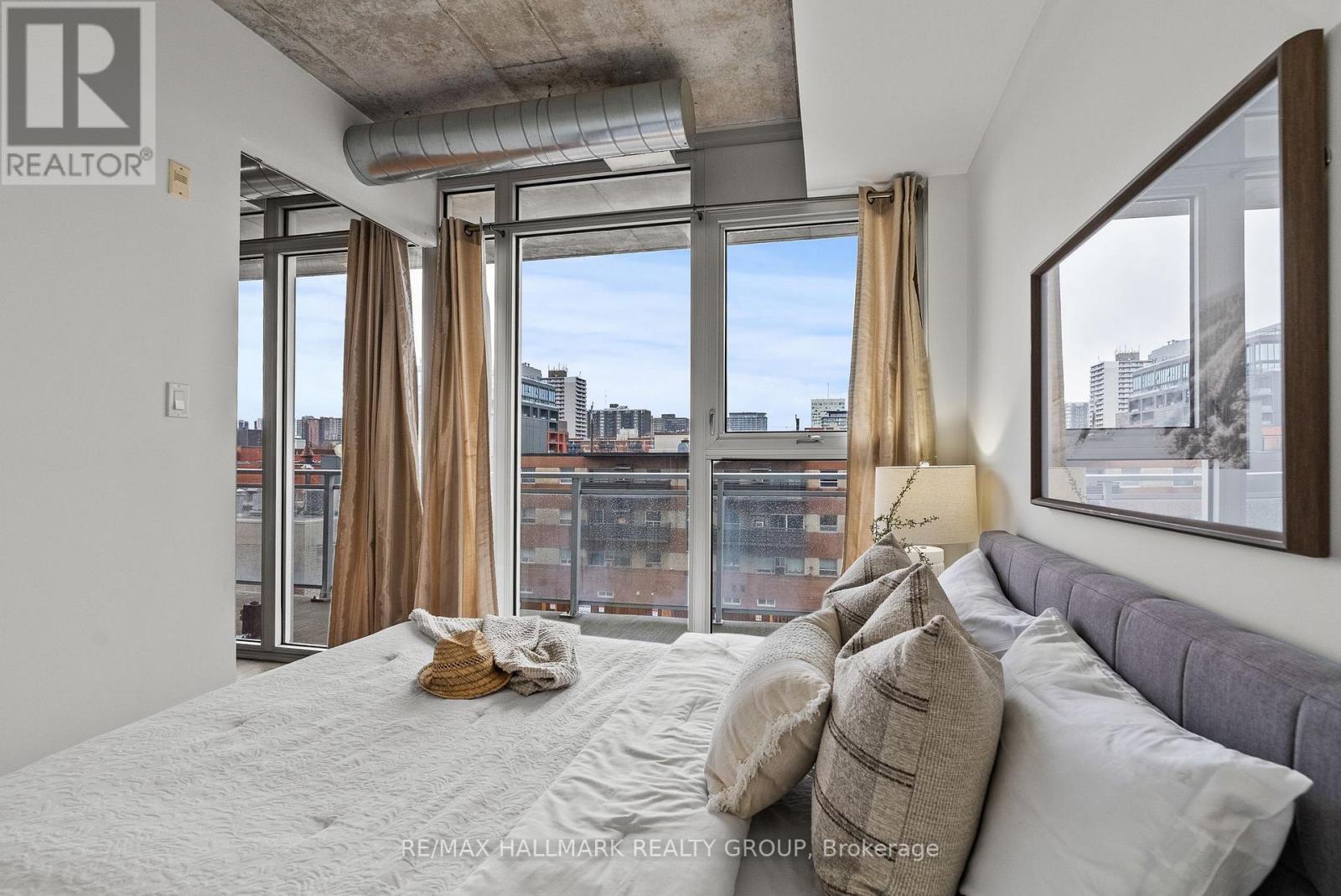 OPEN HOUSE SUNDAY APRIL 19th 11AM - 1PM Welcome to Central 1 by Urban Capital, a sought-after Centretown address known for its modern design and unbeatable walkability. This popularMontreal layout offers 613 sq ft of thoughtfully designed interior space plus a 105 sq ft private balcony, perfect for enjoying your morning coffee or unwinding at the end of the day. As an end unit, it provides added privacy and an abundance of natural light through floor-to-ceiling windows.Inside, you will find 9-foot concrete ceilings, engineered hardwood floors, and a clean, contemporary aesthetic throughout. The open-concept living space is complemented by brand new, never been used appliances and the convenience of in-suite laundry, making everyday living easy and efficient.Residents enjoy a full range of amenities including a fitness centre, party room, and a beautifully landscaped courtyard with gasBBQ, ideal for entertaining or relaxing outdoors. The building also features concierge service, bicycle storage, and secure entry for added peaceof mind. Condo fees include heat, water, building insurance, and all common element maintenance, with only hydro as an additional utility.Located steps to shops, cafés, groceries, transit, and everything downtown Ottawa has to offer, this is an excellent opportunity for first-time buyers, professionals, or investors looking for a stylish, low-maintenance home in a vibrant urban setting. (id:64974)