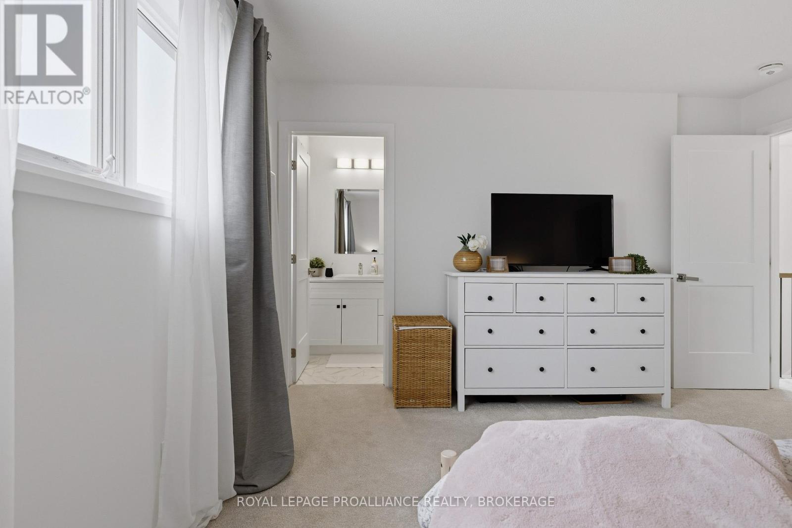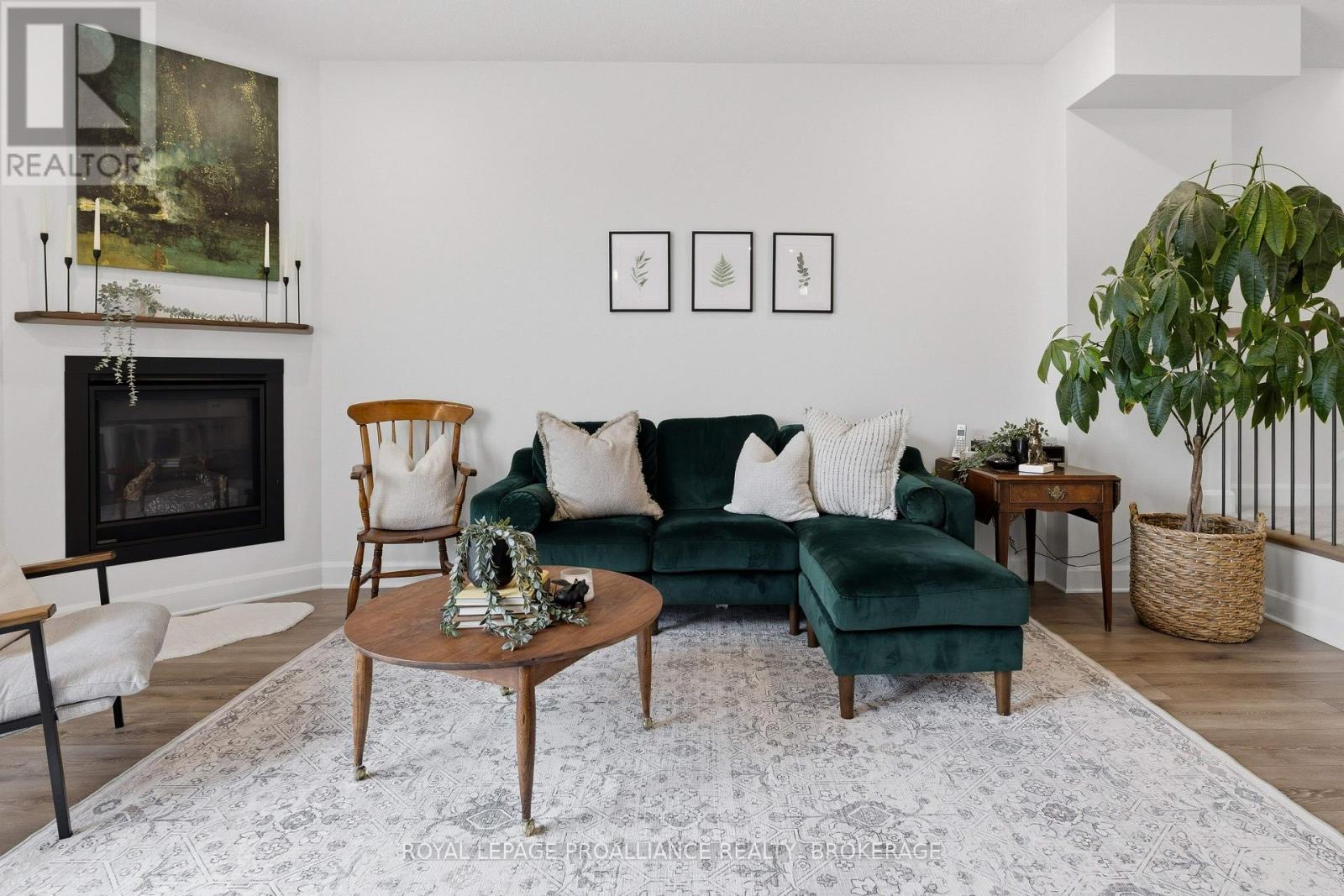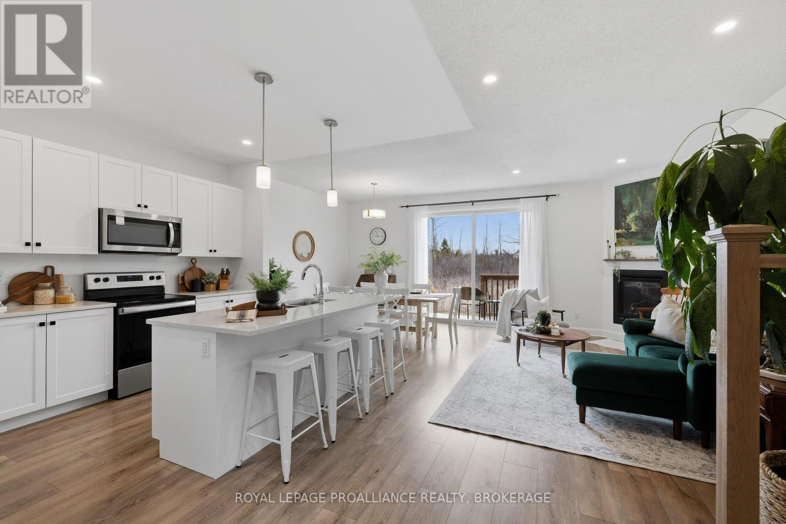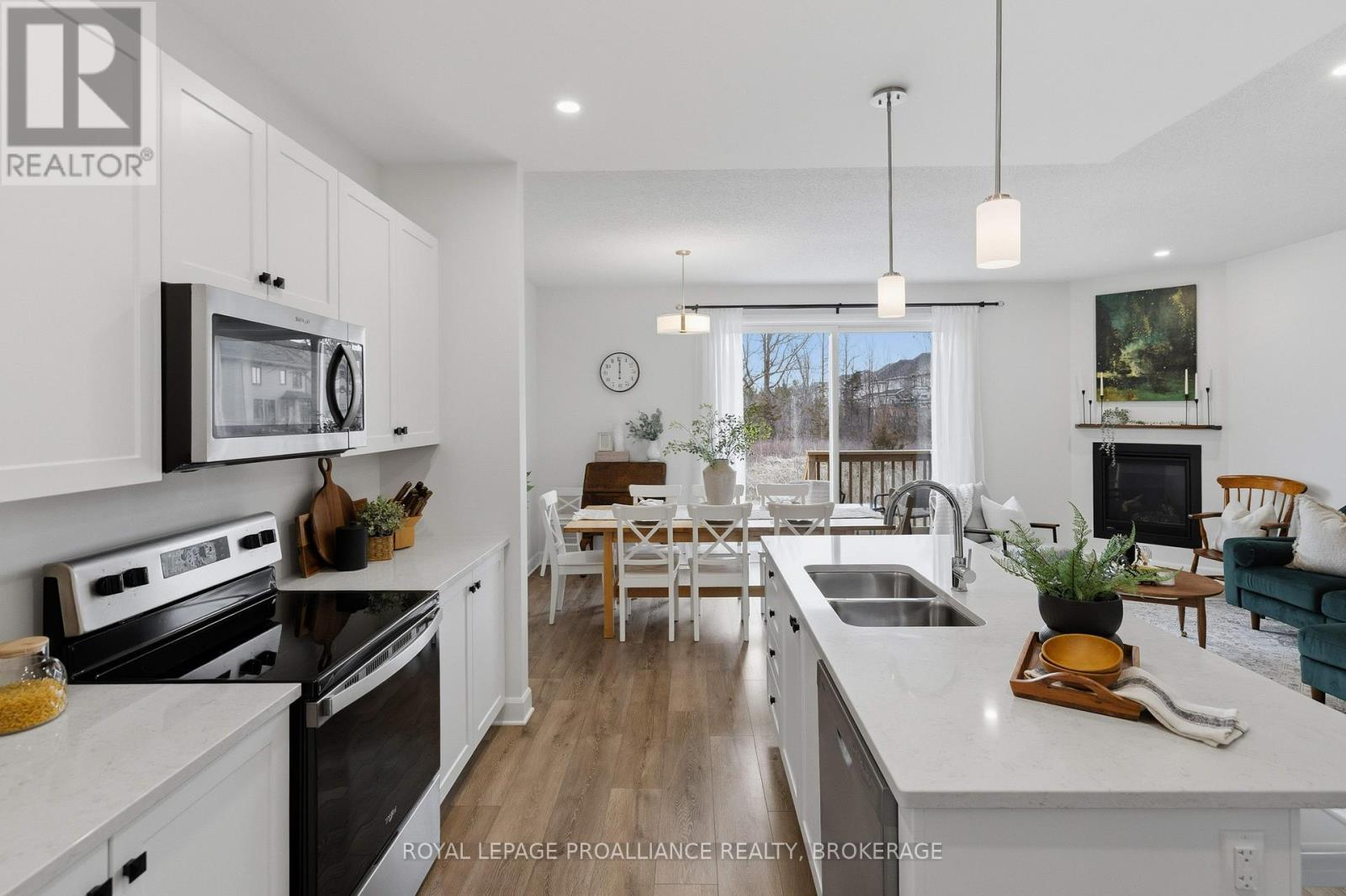 Welcome to this better-than-new home in Kingston's sought-after Woodhaven neighbourhood. Just two years old and fully finished from top to bottom, this spacious two-storey offers exceptional move-in-ready living with 2000 square feet of finished living space over three floors. The bright main floor features gorgeous neutral decor and a modern open-concept layout anchored by a stunning white kitchen with quartz countertops and ample cabinetry with corner pantry. The living area is warm and inviting with a cozy gas fireplace, while durable laminate flooring runs throughout the main level. A convenient main-floor laundry room and two-piece powder room add everyday functionality. An extra-wide staircase with beautiful natural light leads to the second level. Upstairs you'll find a generous primary suite complete with a walk-in closet and private ensuite, along with two more well-sized bedrooms and a full bathroom. The fully finished basement expands the living space with a fourth bedroom, full bathroom, dimmable pot lights, and additional storage in the utility area-perfect for guests, a home office, or growing families. Step outside through the oversized sliding patio doors to a quaint outdoor space backing onto no rear neighbours for added privacy. The attached single garage, ample driveway parking, and a concrete walkway that widens the drive add both convenience and curb appeal. Bonus features include all appliances included, radon mitigation already installed, and the balance of the transferable Tarion new home warranty. Turnkey and beautifully finished, this home is ready to welcome its next family. (id:64974)
