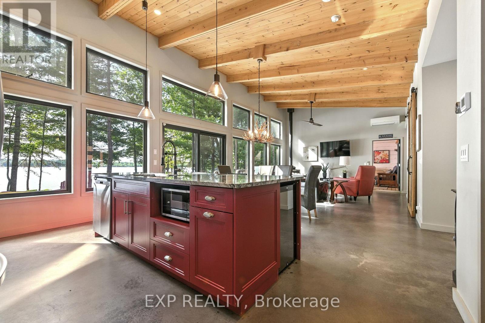 Nestled along the picturesque shores of the Ottawa River, this delightful property offers the perfect blend of rustic charm and modern comfort. Large windows frame breathtaking river views, ensuring youre always just a glance away from nature's beauty. The cozy living room is perfect for relaxing after a day of exploring, while the modern kitchen, complete with sleek countertops and ample storage, is ideal for preparing meals to be enjoyed in the adjacent dining area. Whether you're entertaining family or unwinding with loved ones, this open-concept space provides the flexibility to create memories. Step outside and you're greeted by your very own sandy beach, offering a peaceful retreat and the perfect spot for summer activities. Enjoy leisurely walks along the water's edge, paddleboarding, or simply soaking in the serene surroundings. The backyard provides ample space for outdoor dining, barbecues, or simply enjoying the stunning sunsets over the river. With 2 bedrooms, 2 bathrooms, a spacious sunroom and a separate guest cabin, this home offers comfort and convenience, all while being just moments away from the tranquility of the water. Whether you're looking for a seasonal getaway or a year-round retreat, this Ottawa River gem offers the perfect balance of relaxation and recreation.Dont miss out on the chance to own your piece of paradise. Additionnal features include : high ceilings, radiant floor heating, rear deck. Schedule a viewing today and imagine your life at the water's edge! (id:64974)