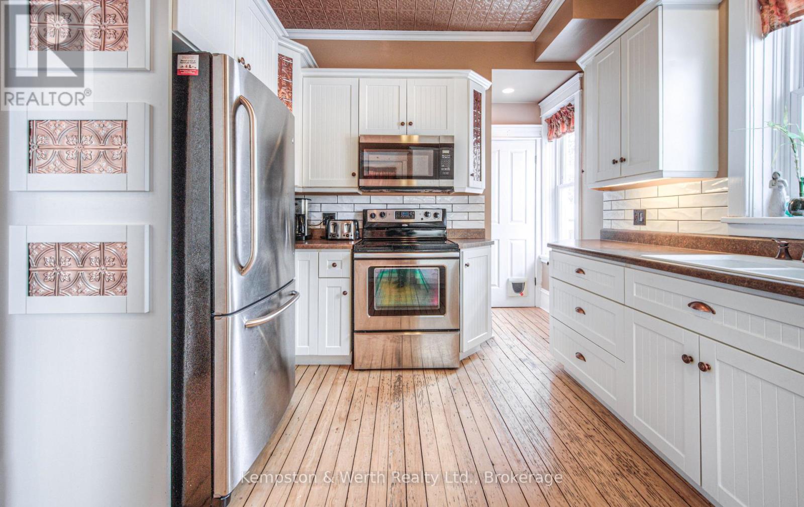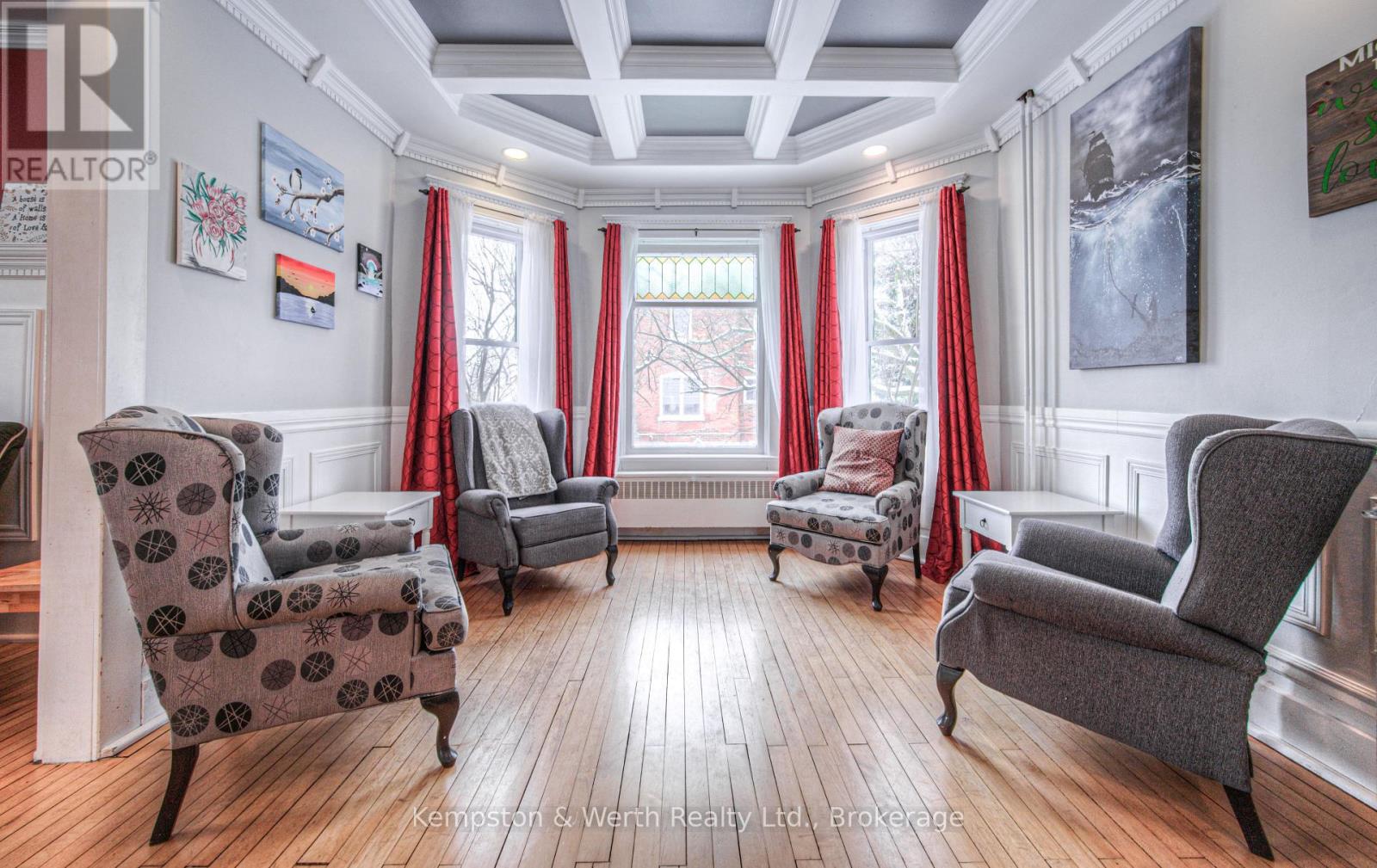 Get ready to fall in love with this stunning home located in the heart of Listowel. Where lazy summer afternoons on the covered back deck melt into evenings around the fire, and common modern conveniences meet rare old world character and charm. Pride of ownership is evident throughout with all the things that you would normally worry about in a century home already taken care of. Wiring...Updated, Plumbing...Done, Mechanicals...Efficient on demand hot water heater, water softener and filtration system, Windows...All replaced except for the original stained glass, Insulation...Upgraded, Bathrooms...2.5 bathrooms -all renovated, including a stunning 3 piece primary ensuite. All of this while maintaining the features you love about a century home. High ceilings, crown moulding and wood trim, french doors, pocket doors, original hardwood floors, stained glass windows... the list goes on and on. Cozy up to the fireplace or enjoy a meal in the dining room large enough to host the whole family. The updated kitchen at the back of the house overlooks the generous back yard. Upstairs, you will happen upon the sweetest 3 season sunroom, perfect for curling up with a book. As well as 2 secondary bedrooms, an office space, an updated 4 piece family bathroom and an amazing primary bedroom with a brand new 3 piece ensuite bathroom. The walk-up, finished attic allows for that family hang-out space and/or a 4th bedroom area. Outside, you can sit back and enjoy your morning coffee on the porch swing or wander along the flagstone pathways that will lead you throughout the well established English cottage style perennial gardens, complete with lilacs, an apple tree, crab apple tree and elderberries. The moment you walk through the door you will see that this one is not like the others. Easy commute to Kitchener, Waterloo, Guelph or Stratford, Listowel is close enough to the city, but retains that small town feel. (id:64974)