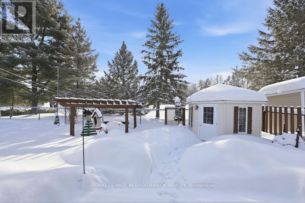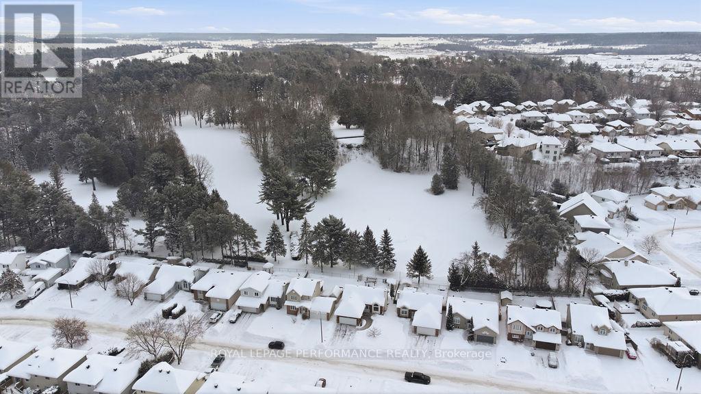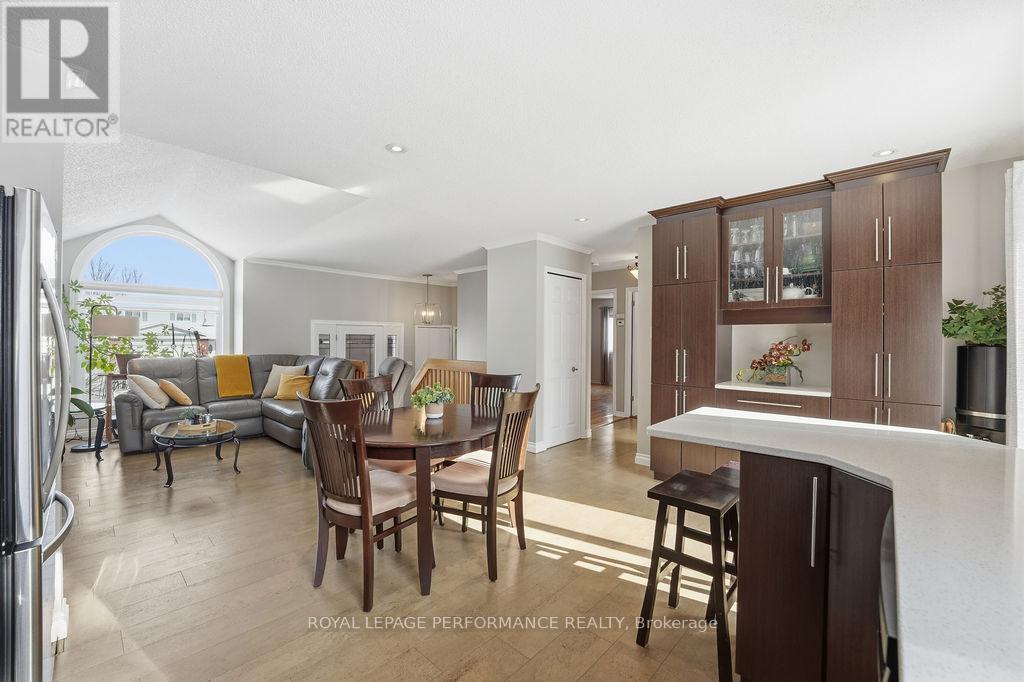 No rear neighbours. Nestled on a beautifully landscaped lot, backing directly onto the Rockland Golf Course, this charming 2+1 bedrooms, 2-bathroom bungalow with double insulated and heated garage offers privacy and a serene setting, ideal for couples, families or retirees alike. Located on a quiet, mature street with easy highway access, it's perfectly suited for commuters. Lovingly maintained and thoughtfully updated by the original owner, this home boasts excellent curb appeal with a full brick façade, interlock walkway, and lush landscaping all around. Inside, the bright, open-concept main floor features cork in the kitchen, dining and living rooms and hardwood flooring in the bedrooms. The renovated, super functional kitchen with granite countertop and large over the sink window flows seamlessly into the living room, highlighted by vaulted ceiling, arched window and Napoleon gas fireplace. A patio door off the kitchen provides direct access to the backyard oasis.The main level also offers two generous bedrooms, a family bathroom with soaker tub and shower, and ample closet space. The fully finished lower level adds valuable living space, including a third bedroom, full bathroom with jetted tub and shower, comfortable recreation room, dedicated laundry area, and storage room. Step outside to enjoy the south-facing backyard complete with a deck, lower patio, pergola, garden swing, and storage shed. Kitchen including appliances (2011), Furnace (approx. 2020), HWT (2025), Shingles (2019), Windows (2020), Partial update to main bathroom (2011), Front landscaping (2023) (id:64974)