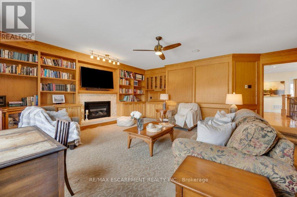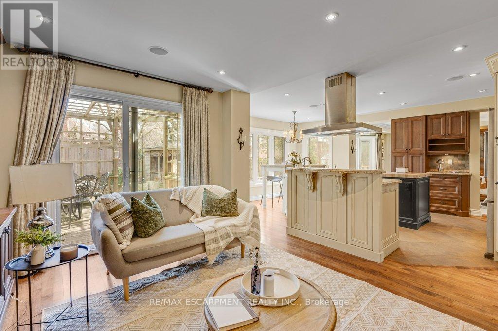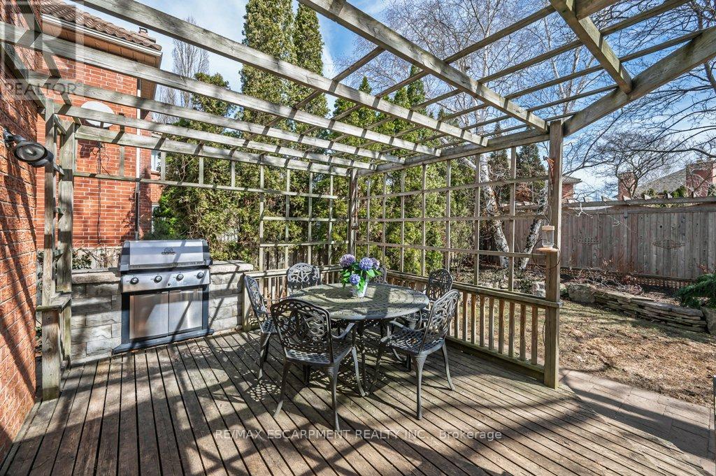 Welcome to this beautifully maintained home in the highly desirable Eastlake community in southeast Oakville. Designed for comfortable family living and effortless entertaining, this inviting home offers three bedrooms, three bathrooms, gleaming hardwood floors, and a spacious foyer that creates an immediate sense of warmth and elegance. The living and dining area features pocket doors that provide flexibility for entertaining or enjoying quiet evenings at home. At the heart of the home is a thoughtfully designed kitchen with abundant cabinetry, quartz countertops, and high-end appliances. A generous breakfast bar is perfect for morning coffee, casual meals, or after school conversations. The kitchen flows seamlessly into the family room where a wood burning fireplace adds charm and comfort while offering direct access to the private backyard. The main floor also includes a powder room and convenient laundry room. Upstairs a graceful staircase leads to a spacious primary suite designed as a peaceful retreat with a dressing area, built in closets, and a bright sitting nook perfect for reading or a quiet start to the day. The 5 piece ensuite includes dual sinks, a makeup vanity, a glass shower, and a deep soaker tub for relaxing at the end of the day. Two additional bedrooms and a full bath complete this level along with a large flexible room with a gas fireplace that can serve as a media room, home office, or family lounge. The lower level expands the living space with a recreation room, two versatile rooms, storage and a utility area. Outside, a tranquil backyard features a sunlit deck, well kept landscaping, lit privacy screens, shed, built in gas BBQ and a child and pet friendly play area. Located in the sought after Eastlake community, this home is surrounded by mature tree lined streets and generous lots and offers close proximity to excellent schools, parks, waterfront trails, boutique shopping, and convenient commuter routes to downtown Oakville and beyond. (id:64974)
