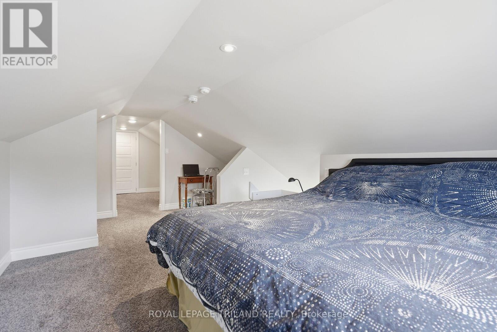 Welcome to your next chapter - Centrally located & loaded with character! Freshly painted and move in ready, why rent when you can own your own home. Step into a bright foyer that sets the tone for this charming and versatile home. The main floor features a spacious, airy living room perfect for relaxing, a separate formal dining room for hosting, and two comfortable bedrooms/office. Retreat to the upper-level primary loft, complete with a dedicated walk-in closet for ultimate organization. Calling all wannabe hobbyists and DIYers! The lower level features multiple built-in workbenches and ample space for your next project or home workshop. The excitement continues outside in your very own "Party Yard." Whether you're soaking in the hot tub, lounging at the bar watching the game, or gathering around the fire pit, this backyard is built for year-round entertaining. Location is everything: You're perfectly positioned with quick access to LHSC, the vibrant energy of Downtown, schools, daycare, 5 min to the 401 and all the shopping you need. Start planning your first backyard BBQ! (id:64974)