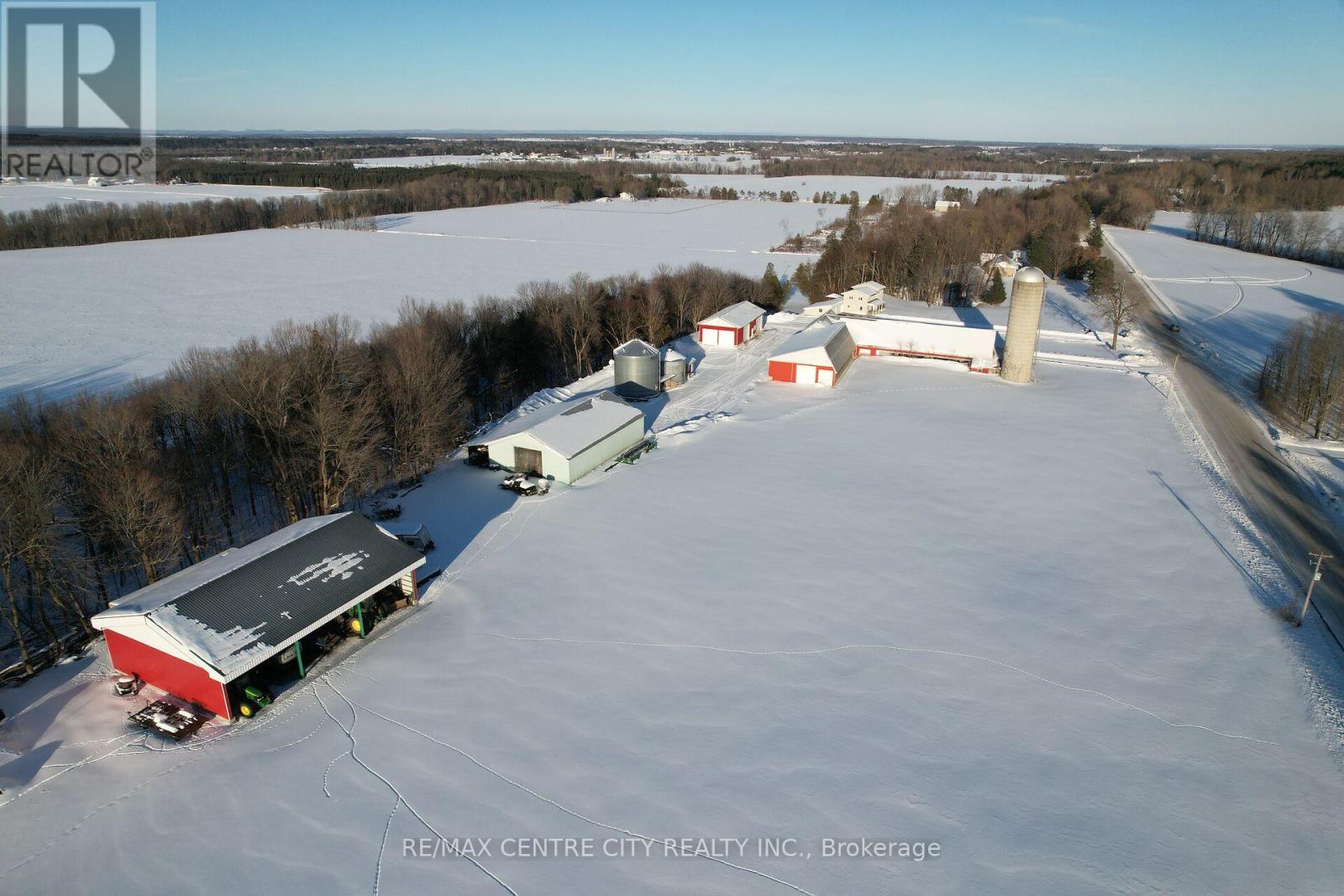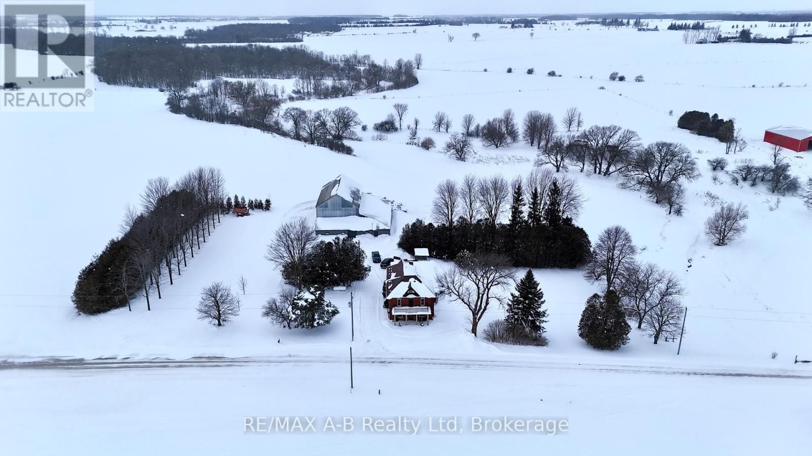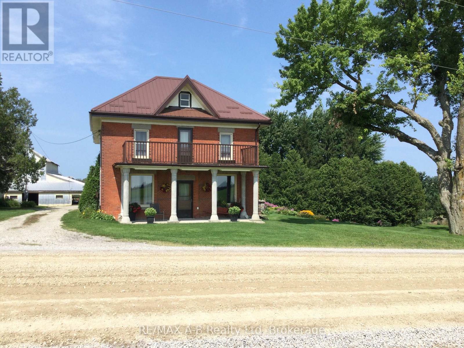 98.5-acre farm in West Perth, located just south of Carlingford. This productive cash-crop style property offers approximately 80 workable acres, featuring 60-ft tile drainage within the fertile clay loam soils of Perth County. There is a large, updated two-storey brick home with over 2800 sq ft of finished space that has been very well maintained and updated over the years. A spacious family room addition overlooks the pasture, creek, and mature trees to the north, creating a peaceful setting. The home offers a functional layout with a large mudroom off the attached garage, complete with convenient laundry and a bathroom. An updated eat-in kitchen, formal dining area, and office complete the main level. The upper floor includes four bedrooms and a four-piece bathroom. Additional updates include a new propane furnace (2024), steel roof, soffit, facia, eavestroughs and several newer windows. Outbuildings include a useful 40' x 40' shed and a large bank barn with hydro and water, offering a variety of possibilities for the next owner. Click on the virtual tour link, view the floor plans, photos and YouTube link and then call your REALTOR to schedule your private viewing of this great property! (id:64974)