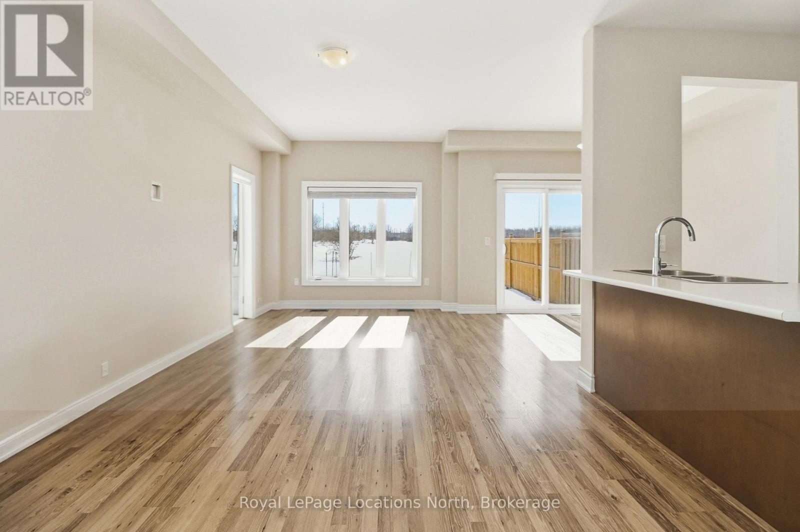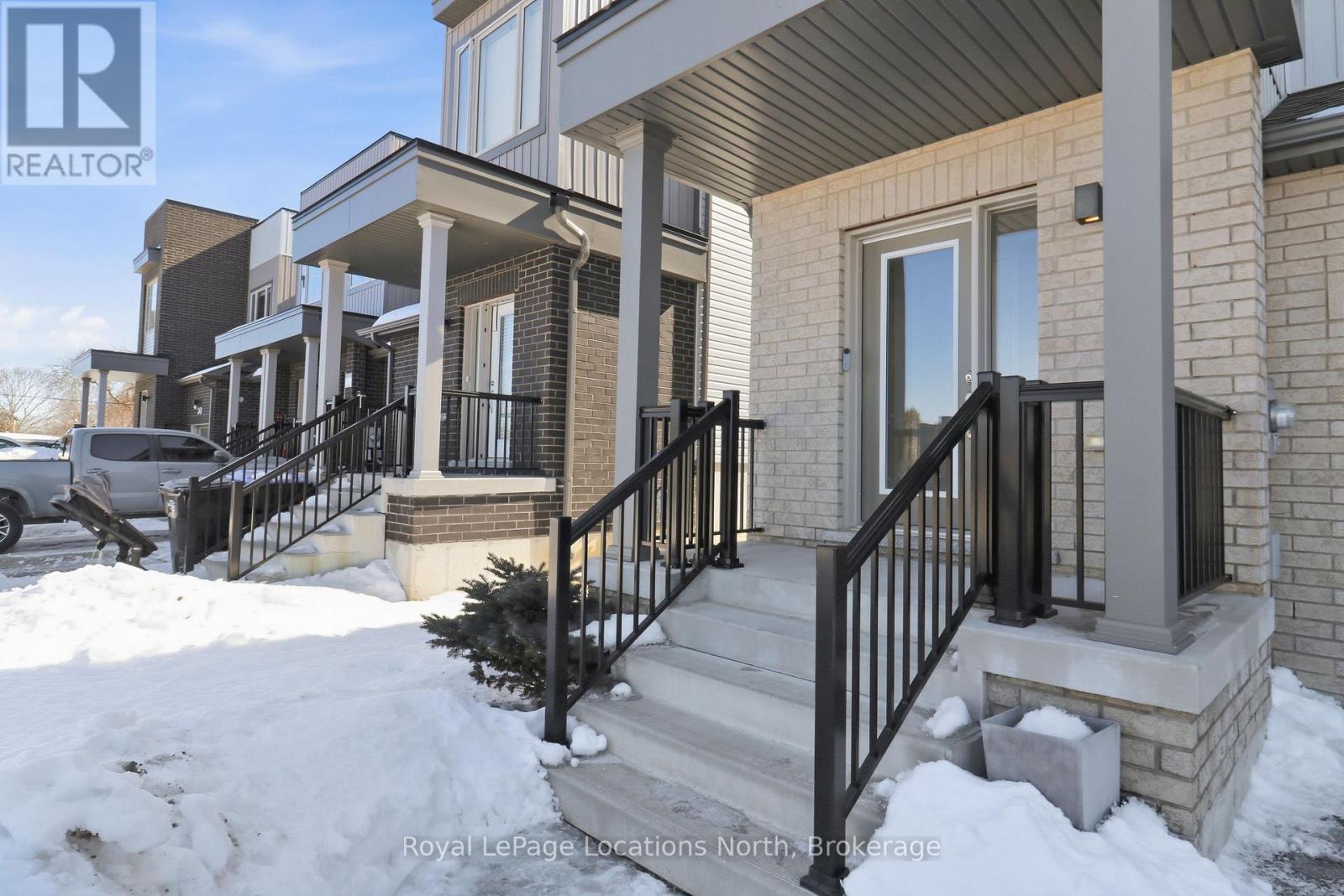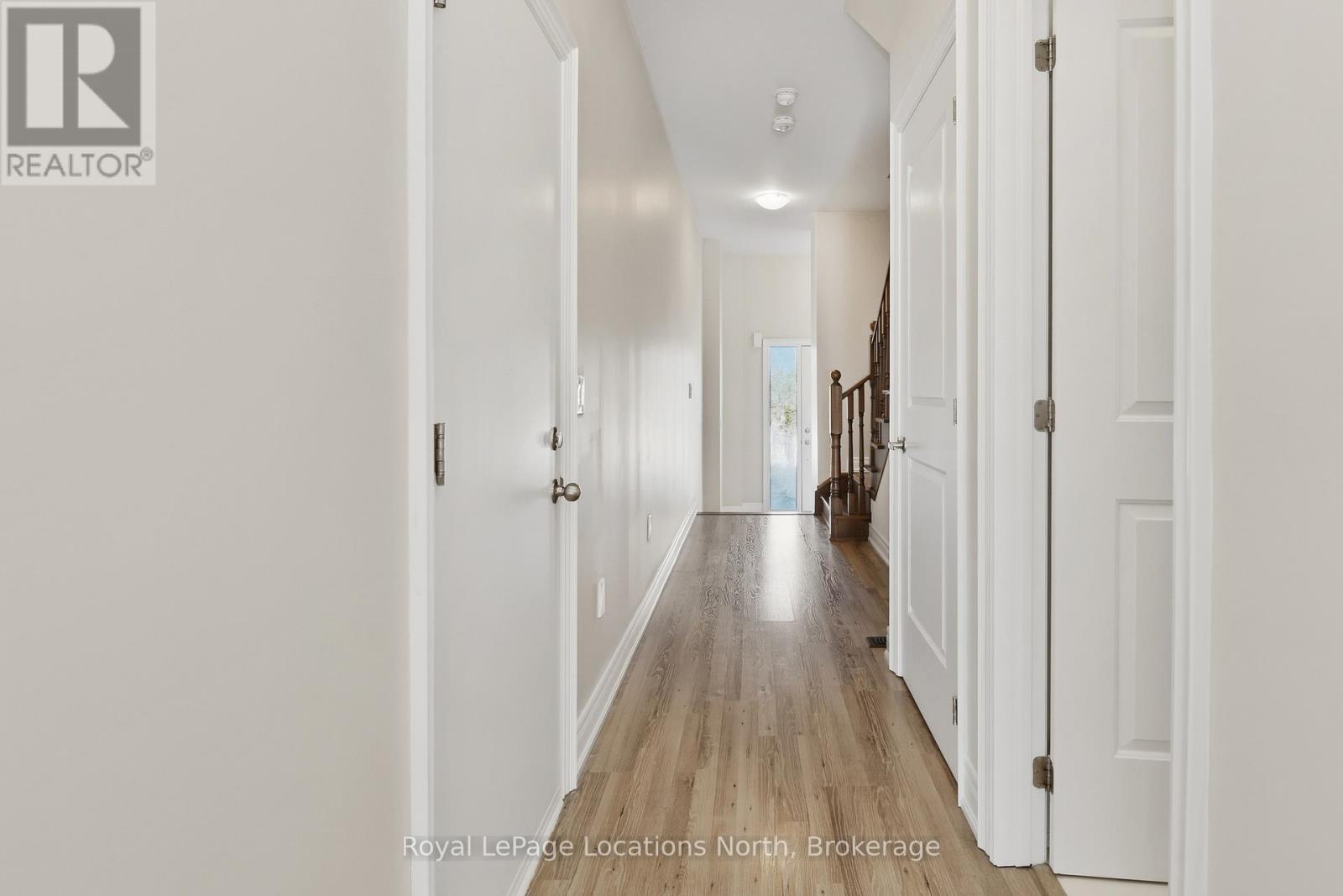 Welcome to this stunning 4 bedroom, 3 bathroom END UNIT, offering a bright, functional living space - perfect for first time home buyers, growing families, or downsizers seeking comfort and style. Ideally located just 15 minutes to Collingwood, 30 minutes to Barrie and Blue Mountain, and approximately one hour to the GTA, this home offers easy access to year round recreation, shopping, dining, and major commuter routes. Situated on a premium lot with desirable south-facing rear exposure, this sun filled home is flooded with natural light throughout the day. As an end unit, it benefits from added privacy and extra windows, enhancing the home's bright and welcoming feel. The open concept main floor boasts 9 foot ceilings and a seamless flow between the living, dining, and kitchen areas - an ideal layout for entertaining. The kitchen is thoughtfully designed with extended cabinetry, an upgraded backsplash, a breakfast bar, pantry, and premium porcelain tile flooring. Recent updates include new appliances (fridge and dishwasher, June 2025). A carpet-free interior, complemented by upgraded porcelain tile in the foyer, kitchen, and 2 piece powder room, creates a clean, contemporary, and low maintenance living space that combines both style and functionality. Upstairs, you'll find four generously sized bedrooms and two full bathrooms, offering plenty of space for families or home office needs. The primary suite provides a private retreat featuring a walk-in closet and 3 piece ensuite, while the additional bedrooms are served by a well appointed 4 piece bathroom. Bright, spacious, and move-in ready, this beautifully maintained end unit offers the perfect combination of space, functionality, and lifestyle. (id:64974)