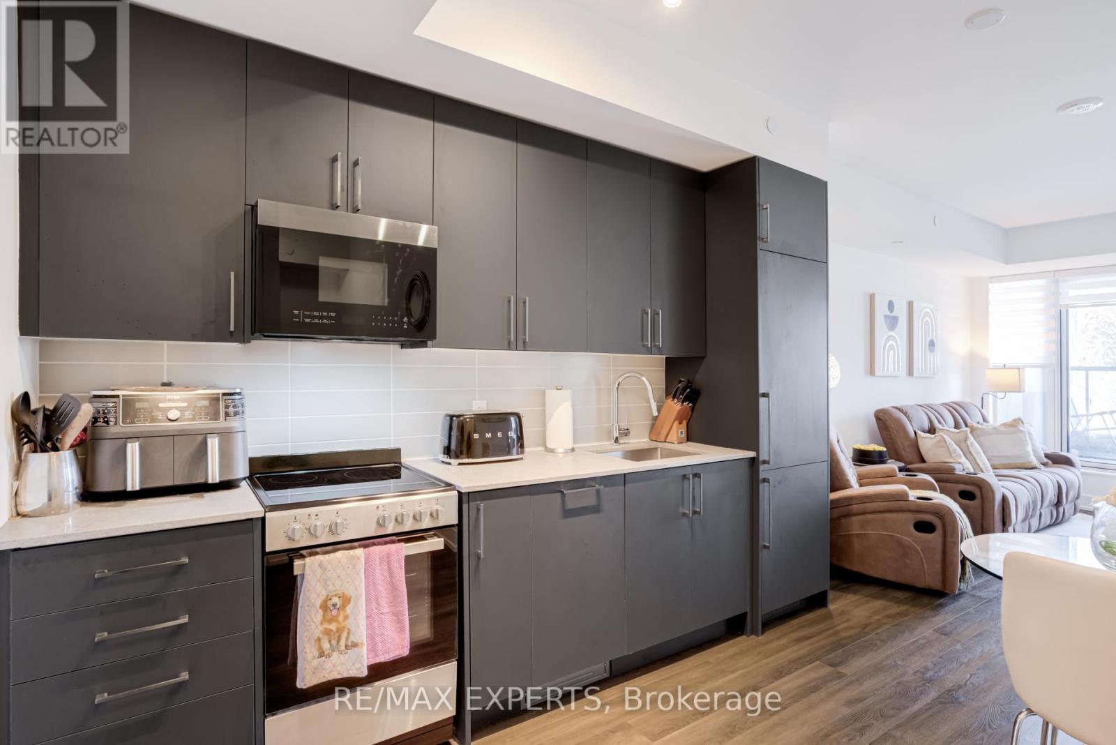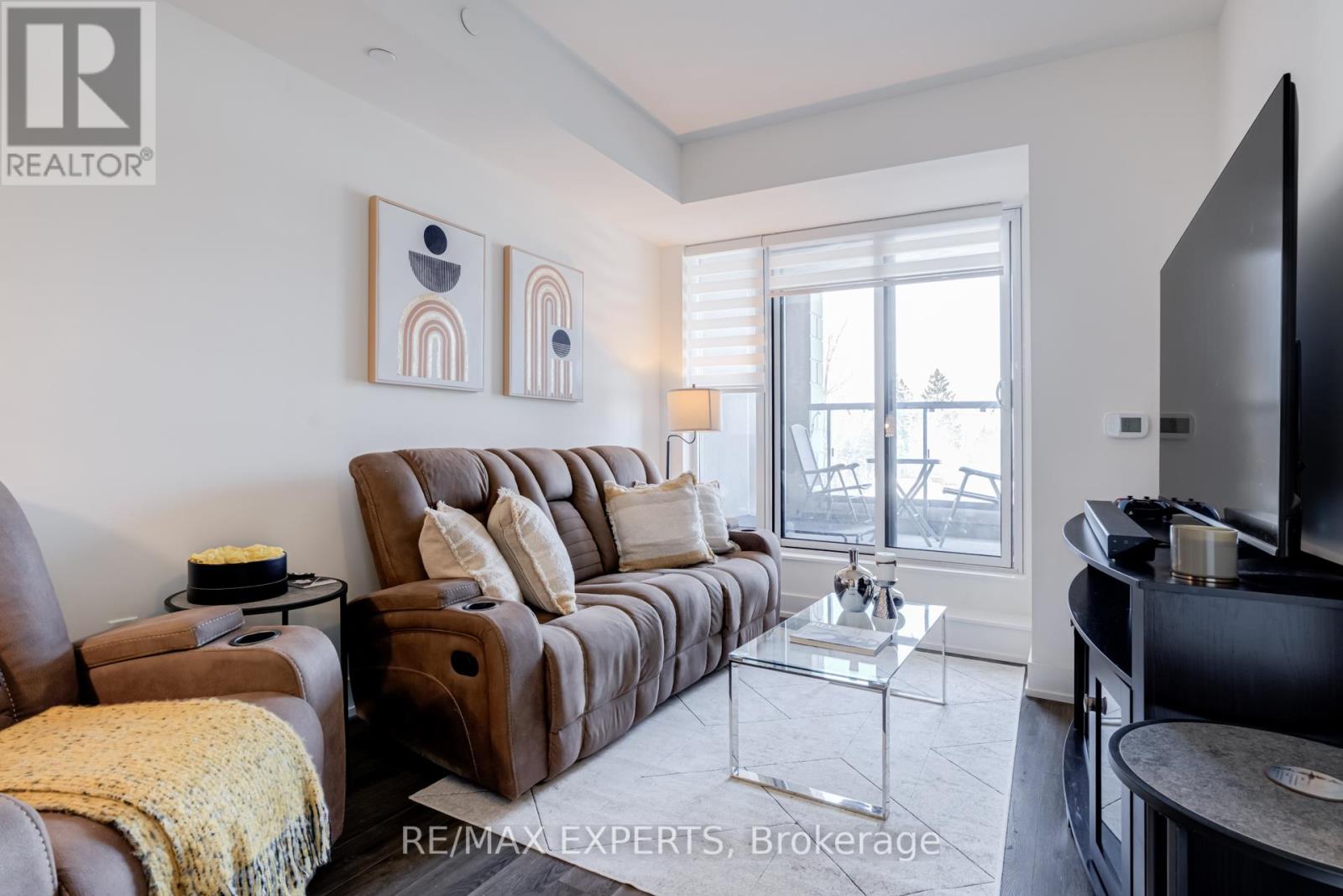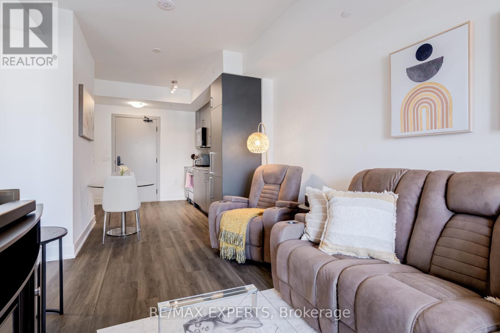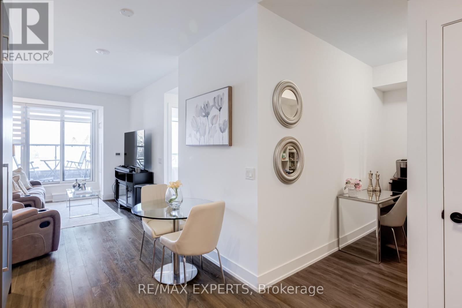 Welcome to Suite 336 at King Terraces, A Beautifully designed Residence Offering A Total of 664 sq. ft. of Modern Comfort and Smart Functionality in one of King City's Most Desirable Boutique Communities. This Thoughtfully laid-out Suite Features an Open-concept Design that Seamlessly Connects the Kitchen, Living & Dining Areas-Ideal for Everyday Living & Entertaining. The Sleek Kitchen Showcases Quartz Countertops, Integrated Appliances & Contemporary Cabinetry, Blending Style with Practicality. Large Windows Fill the Space with Natural Light, Creating a Bright & Inviting Atmosphere. The Spacious Primary Bedroom Offers a Peaceful Retreat, while the Versatile Den Provides the Perfect Space for a Home Office or Guest Area. A Beautifully Finished Bathroom with Clean, Modern Lines Completes the Interior. Residents of King Terraces Enjoy Resort-style amenities Including a Rooftop Terrace with BBQs, Indoor Pool, Fitness Centre, Yoga Studio, Steam Room, Sauna, Party Lounge, Games Room, Children's Playroom, Private Guest Suite, Dog Wash station, Bike Wash Station & 24-hour Concierge Service. Ideally Located Steps to Parks, Scenic Trails, the Zancor Community Centre, King City Library & Seniors Centre & Just Minutes from Shopping, Dining, Top-rated Public & Private Schools & Highway 400. A Complimentary Shuttle Service to the Nearby King City GO Station Makes Commuting Effortless. Suite 336 Offers Style, Convenience & Exceptional Lifestyle Value in the Heart of King City. (id:64974)
