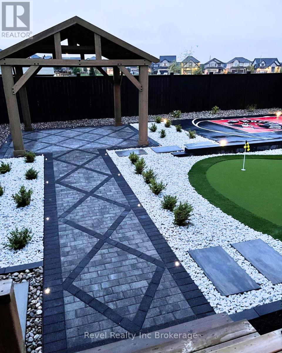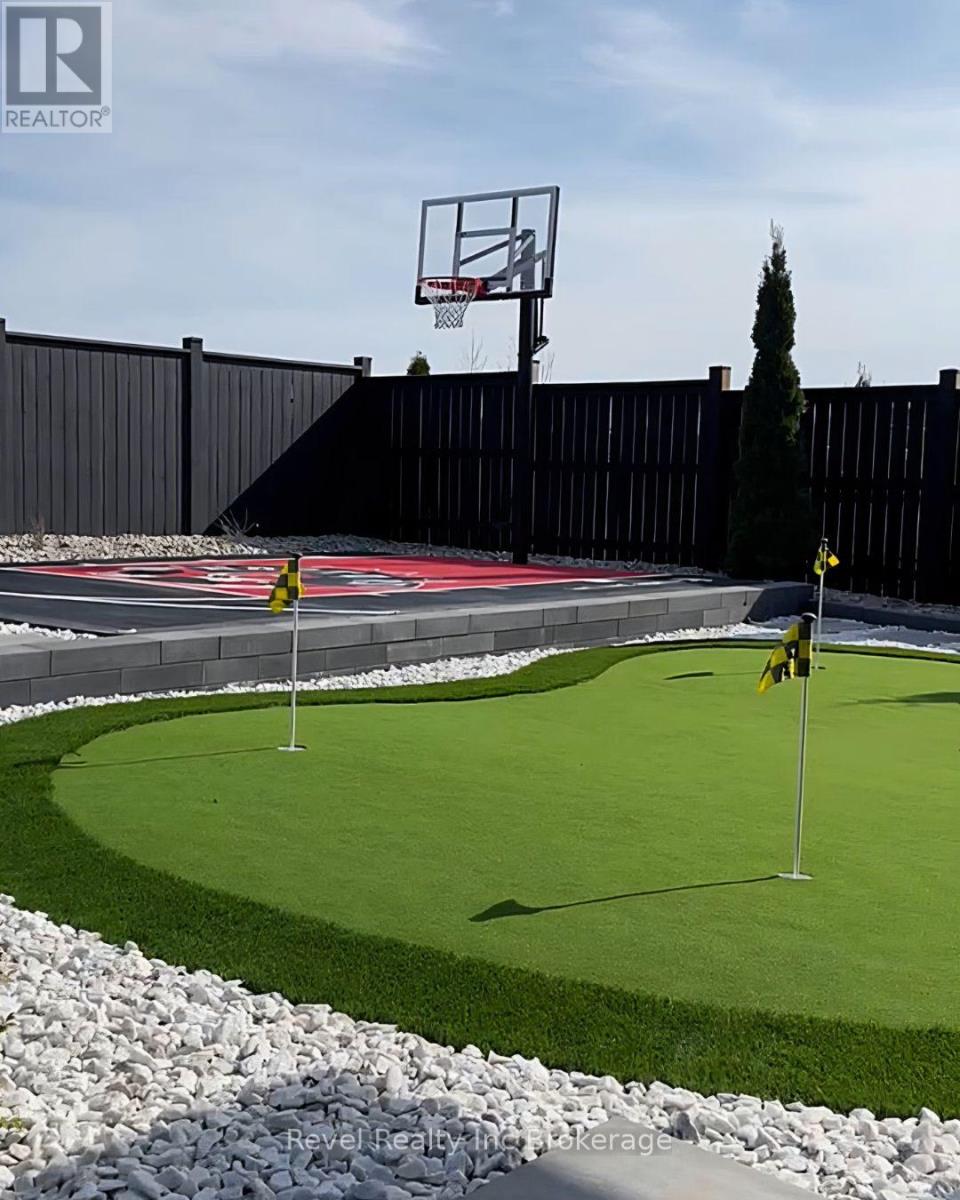 Welcome to this one-owner, custom-built 4+1 bedroom, 3.5 bathroom showpiece, perfectly positioned on a rare premium lot with no rear neighbours, backing onto a quiet back corner of the park. From the moment you arrive, the curb appeal impresses, enhanced by extensive professionally designed landscaping, lighting and hardscaping, including a custom Raptors-inspired basketball court, private putting green, stunning gazebo area, and a large covered deck, all thoughtfully designed for low-maintenance living. Inside, this home truly shows like a model. The grand two-storey great room features soaring ceilings and floor-to-ceiling custom trim work, creating a dramatic yet warm focal point. The heart of the home is the stunning chef's kitchen, highlighted by a 13-foot island with seating for eight, additional prep space, a walk in pantry and three patio doors that flood the space with natural light and seamlessly connect to the outdoors. Large bedrooms, marble and stone bathrooms, and modern décor are found throughout. Recent upgrades include new flooring, fresh paint throughout, tall interior doors, and an updated laundry room. The fully finished basement extends the living space with an additional bedroom and a new luxury spa-inspired bathroom, offering flexibility for guests, teens, or extended family. With a fully finished interior, exceptional craftsmanship, and a backyard that is truly one of a kind, this home is a rare offering. A designer's dream and an absolute showstopper in every sense. (id:64974)