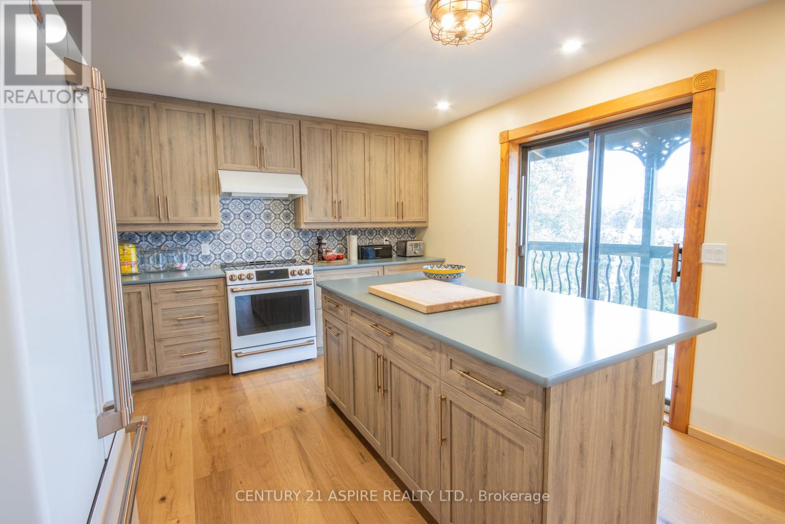 Discover serene luxury with this executive waterfront home set on approximately 4.5 private acres on a sloping lot and over 200' of owned shoreline, at the end of a quiet paved road. This stunning property boasts a newly installed kitchen featuring premium Cafe appliances and quartz countertops, perfect for culinary enthusiasts. The spacious living room, complete with wood-burning fireplace, is ideal for holiday entertaining or relaxing amongst yourselves. The main floor offers ultimate convenience with a laundry room and 3 well-appointed bedrooms, including a primary suite featuring a luxurious jetted tub and walk in closet. The partially finished lower level, with walkout access has an abundance of space including rec room with 2nd wood-burning fireplace, office or den and a large unfinished space ready to turn into whatever you dream! Outside, enjoy expansive shoreline views of Trout Lake. Tastefully furnished, this home is move-in ready. A rare gem of privacy and peace. 24 hours irrevocable on all offers (id:64974)