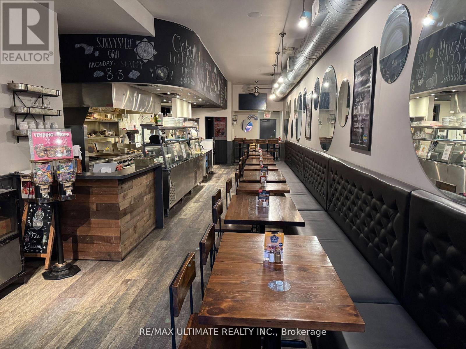 SUNNY SIDE OF THE STREET!! Popular Breakfast/Lunch/Brunch Franchise location in prime downtown Oakville on Lakeshore Rd E. Open since 2004, this well situated and bright spot next door to a large medical/office building on the east side of the main downtown Oakville shopping/retail/entertainment strip. Interior seating of approx. 40 seats + summer patio (via municipality). Fully equipped commercial kitchen + full basement. Perfectly suited to a couple, family or working partners. (id:64974)