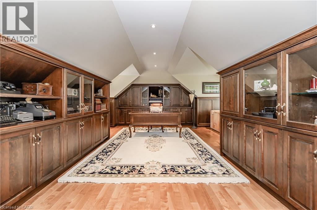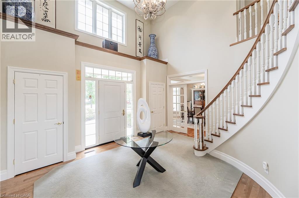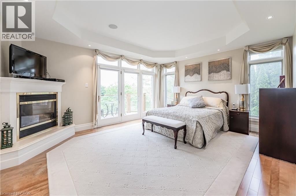 Discover refined living in the prestigious River Oak Estates—where timeless design meets an extraordinary natural backdrop. Set on a lush half-acre lot backing directly onto the Grand River, this 6,000+ sq. ft. residence captures breathtaking views of the water, pond, and Grand River Trail. Thoughtful landscaping enhances its privacy and curb appeal, creating a truly peaceful setting. Inside, sophistication unfolds across three levels, with 5+2 bedrooms and 6 bathrooms offering comfort and flexibility for family and guests. The grand foyer opens to an elegant staircase and sun-filled formal living and dining rooms—ideal for entertaining large gatherings. The kitchen, complete with an oversized island and casual dining space, extends to a spacious deck overlooking the river. A stone wood-burning fireplace anchors the family room, where floor-to-ceiling windows frame the scenic outdoors. The main floor suite is a private retreat featuring a gas fireplace, walk-in closet, and balcony access. Its luxurious ensuite includes dual vanities, a soaker tub surrounded by windows, and a glass walk-in shower. Upstairs, you’ll find four additional bedrooms, a home office with custom built-ins, and a dedicated media room. The lower level offers two more bedrooms, a 3-piece bath, wet bar, games area, and walkout access to a stone patio and landscaped gardens—perfect for indoor-outdoor living. Blending comfort, elegance, and a rare connection to nature, this River Oak Estates home delivers a lifestyle as remarkable as its setting. (id:64974)