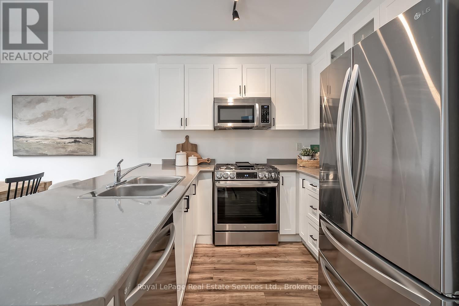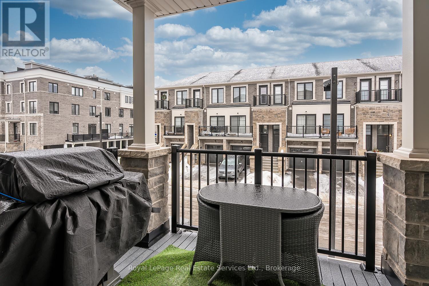 Stylish + Contemporary 3 Storey Townhome in the heart of charming Waterdown! Impeccably Maintained 2 Bedroom, 2.5 Bathroom Boasts over1300 sq ft. This home is a perfect combination of style, functionality + convenience. Large foyer with double door closet, utility room + insideaccess from garage. The main living space features a spacious living area, separate dining area w direct access to the balcony + powder room.Spacious kitchen with ample cabinetry, large breakfast bar + stainless steel appliances. The open concept design creates a harmonious flow -perfect for entertaining friends + family. 3rd level features primary bed w a W/I closet + 4 pc ensuite. Spacious 2nd Bed w a double door closet +4 pc main bath. Convenient Bedroom level laundry. Incredible location, walking distance to Downtown Waterdown, minutes to HWY 407, School,Parks, Trails and All amenities. Perfect for professionals, young families + investors. Turn Key Living at its Best! (id:64974)