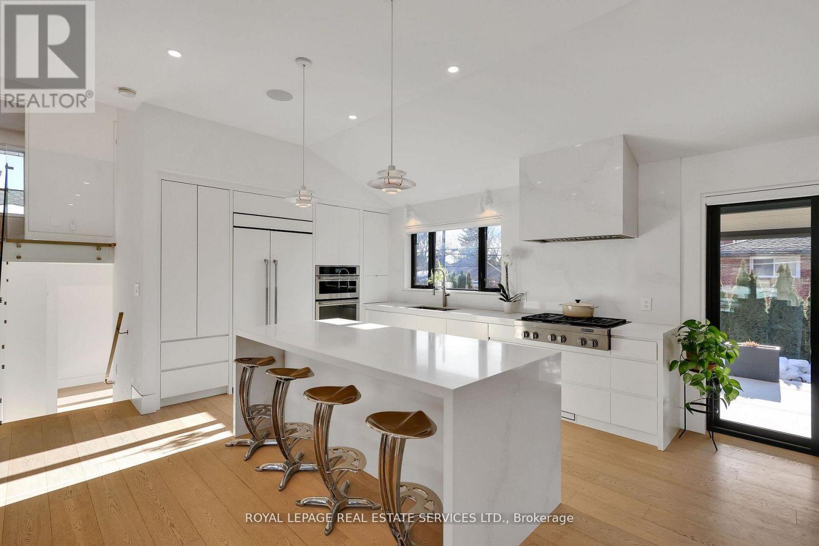 Completely Transformed In 2019 - This Modern Masterpiece Stands Out In The Prestigious Community of Markland Wood -One of Etobicoke's Most Established And Sought After Neighbourhoods. Known For Its Tree Lined Streets, Strong Homeowners' Association, And The Landmark Markland Wood Golf Club, The Area Offers A Rare Blend of Tranquility, Community Spirit And Urban Convenience. This Home Was Rebuilt With Exceptional Attention To Detail. The Main Floor Features 11-ft Vaulted Ceilings, enlarged Windows And Doors, And Integrated Trim For A Clean, Architectural Aesthetic. The Custom Kitchen By Top Notch Cabinets Includes An Eight Foot Waterfall Island, Stone-Slab Backsplash And Hood, And Fully Integrated Jenn-Air Appliances. Designer Lighting - Over $10K Invested - Adds Warmth And Sophistication Throughout. Upstairs, The Primary Suite Was Redesigned To Include A Larger Ensuite, While The Lower Level Offers A Fourth Bedroom And Dedicated Laundry. Premium Finishes Include Engineered White Oak Floors, Aria Vents, Heated Bathroom Tiles, A Built-In Sound System, And Comprehensive Insulation Upgrades For Year-Round Comfort. The $300k Backyard Transformation Creates A Private Resort Experience With A Concrete Slab Deck, Aluminum Pergola, In-Ground Lighting, Natural Gas Fire Pit Lounge, Garden Space, And A Year-Round Immerspa Pool That Functions As Both Pool And Hot Tub. Markland Wood Offers Outstanding Top-Ranked Schools, Along With Quick Connections To Major Highways And Transit Routes. With Its Safety, Strong Community, And Serene Atmosphere, Markland Wood Is Widely Regarded As One Of Toronto's Most Desirable Places To Call Home. This Is A Rare Opportunity To Own A Fully Re-Engineered, Luxury Home In A Neighbourhood That Already Defines Prestige! (id:64974)