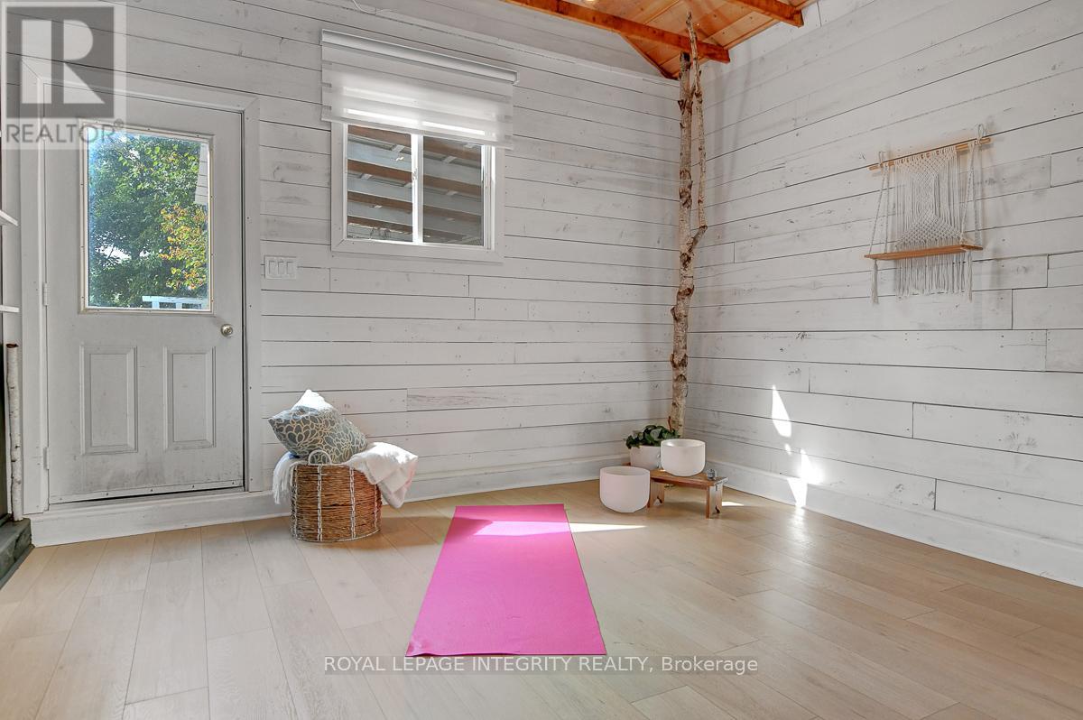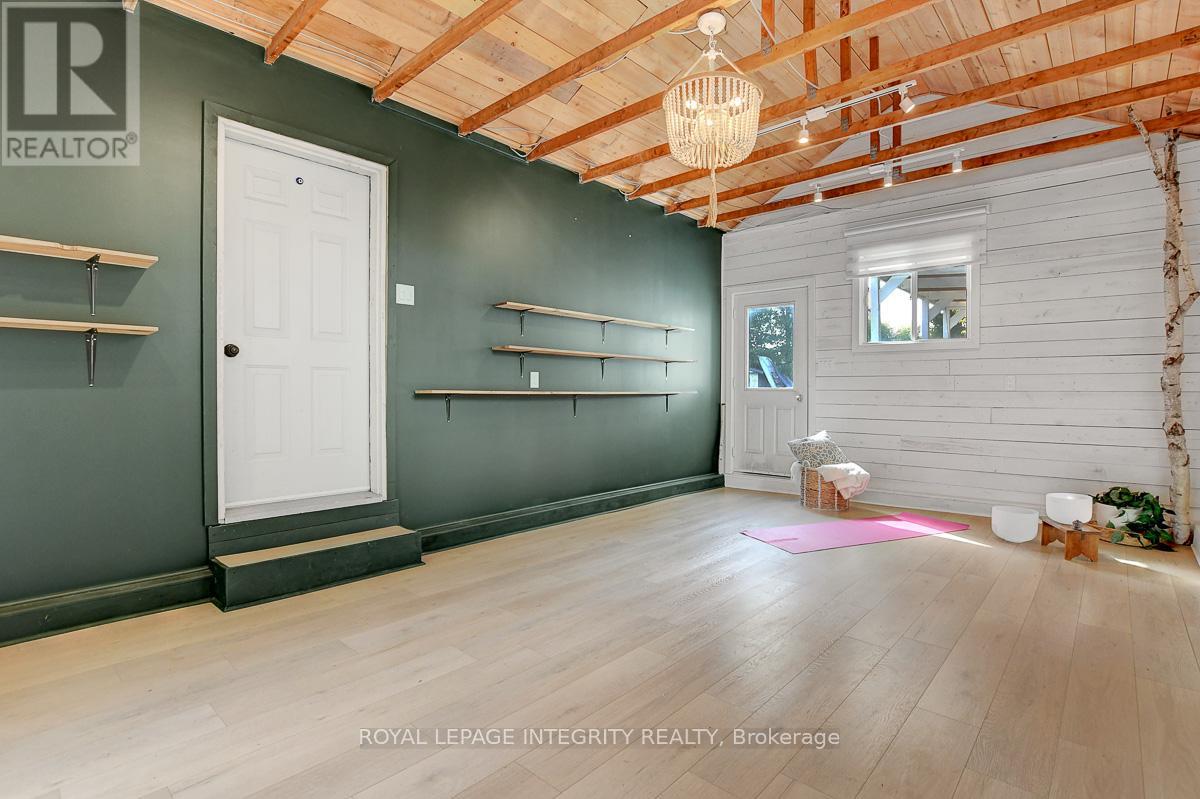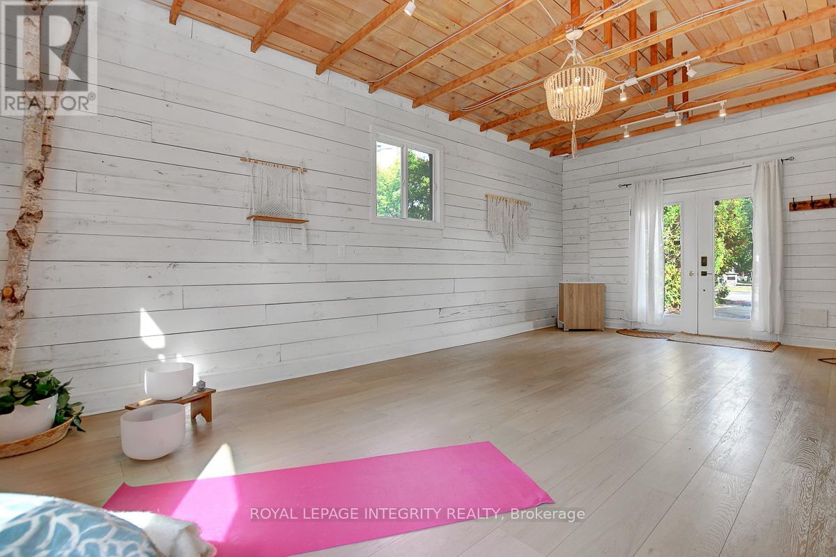 Welcome to 34 Bennett St, located in the heart of Spencerville! This charming 3+1 bedroom, 1 bathroom raised bungalow sits on a large, private lot with no rear neighbours, just steps from all local amenities.The bright main floor features an open-concept living and dining room with hardwood floors, perfect for family living and entertaining. The kitchen offers an abundance of cupboard and counter space, while each of the spacious bedrooms includes a ceiling fan for comfort. The main bathroom is well-appointed with a shower/tub combo and double sinks.The partially finished lower level provides plenty of potential, boasting a large rec room, oversized laundry and storage area, and an additional bedroom. The attached garage has been insulated and transformed into a beautiful yoga studio with separate access, offering flexible use to suit your lifestyle.Outside, the large backyard is private and surrounded by mature trees, with endless possibilities to create your own outdoor oasis. Updates include a furnace and A/C (2019), giving peace of mind for years to come. A wonderful opportunity to enjoy small-town charm with easy access to everyday conveniences - don't miss it! (id:64974)