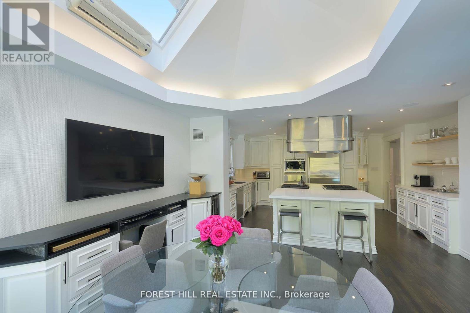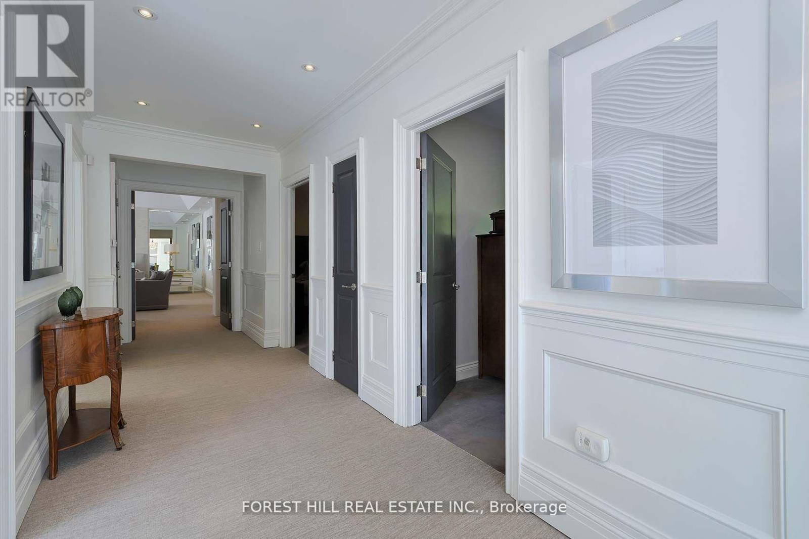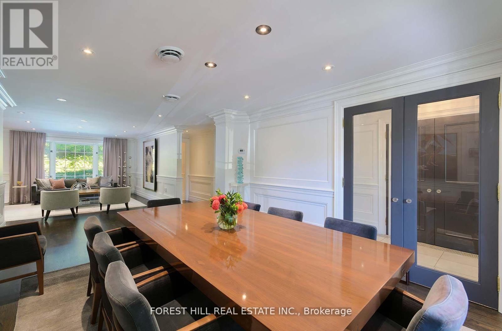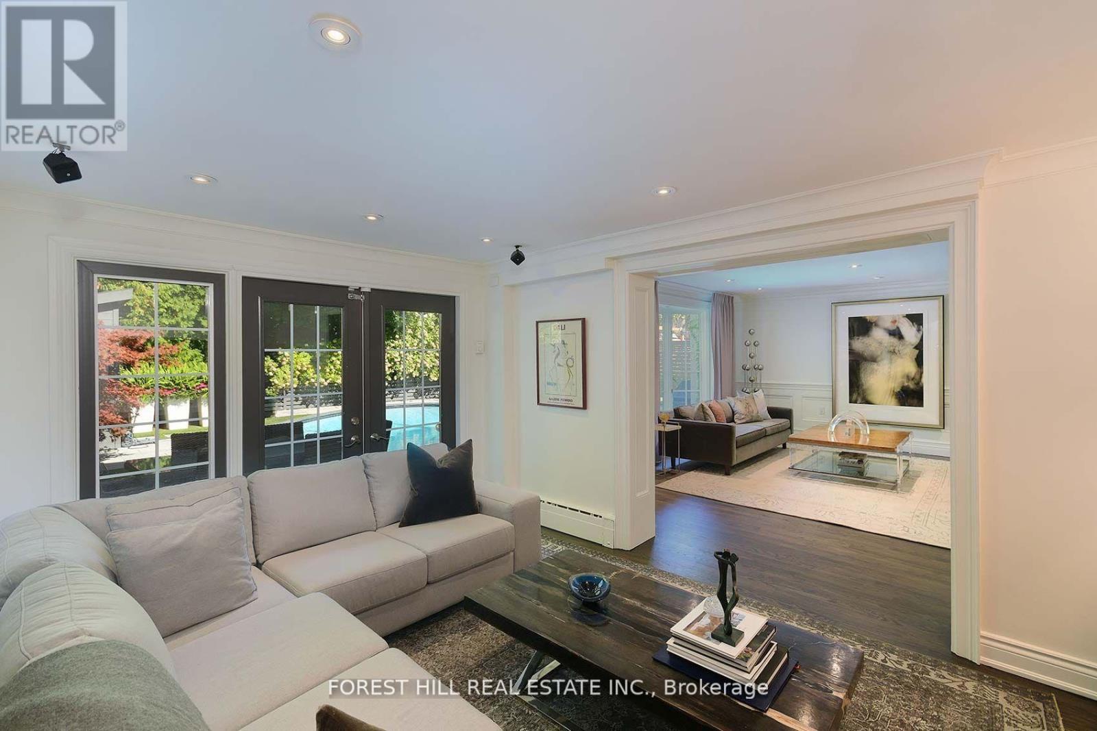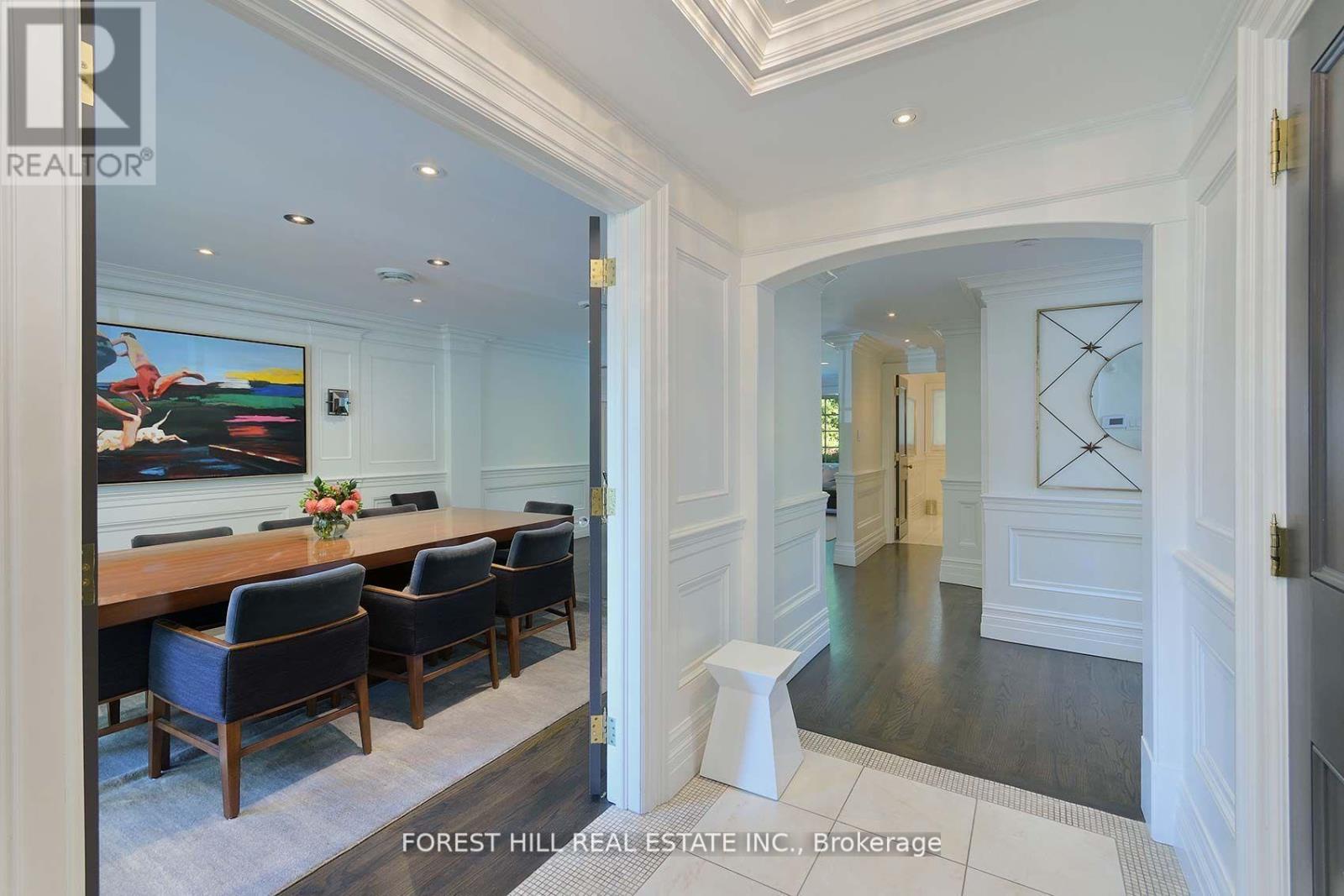 This is the one! 34 Forest Ridge Drive checks all your boxes beginning with its stunning curb appeal. Situated on a 59' wide lot on this quiet and most coveted street in upper Forest Hill Village, this sophisticated home features 4+1 bedrooms, a main floor office, a main floor family room and a main floor powder room. The welcoming foyer with large closet invites you into an elegant living space where you can relax and entertain. The living room is bright with a gas fireplace and views of the stunning back yard with pool and beautiful garden. The stylish dining area is spacious enough for large dinner parties yet intimate enough for smaller ones. The incredible eat-in kitchen features stainless steel appliances, Caesarstone countertops, two built-in Wolf gas ranges, two Miele dishwashers, a Sub-Zero fridge, two built-in warming drawers, Avantgarde wine cooler and more. The main floor is hardwood throughout with beautiful views overlooking the backyard pool and garden. Upstairs the gorgeous large primary bedroom has a vaulted ceiling, a sizeable seating area and a six-piece en-suite with heated floors. There is a walk-in closet and two double closets as well as abundant additional storage in the ensuite. There are three additional upstairs bedrooms. Bedroom 2 features a tandem room and 4 double closets with built-in storage. Bedrooms 3 and 4 each has two double closets with built-in storage. The basement rec room is large with good ceiling height. There are an additional bedroom, bathroom and a cedar closet on the lower level. The laundry room is spacious and storage is abundant. This is a great location with close TTC and highway access. Walking distance to shops, good schools, parks, the Beltline Trail, Cedarvale Ravine and more. (id:64974)