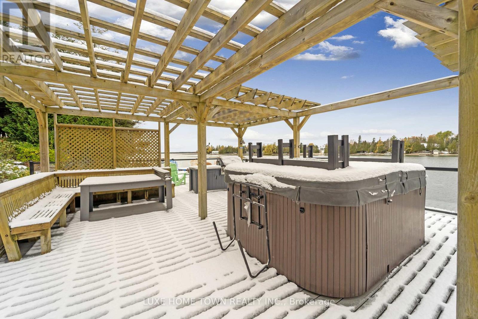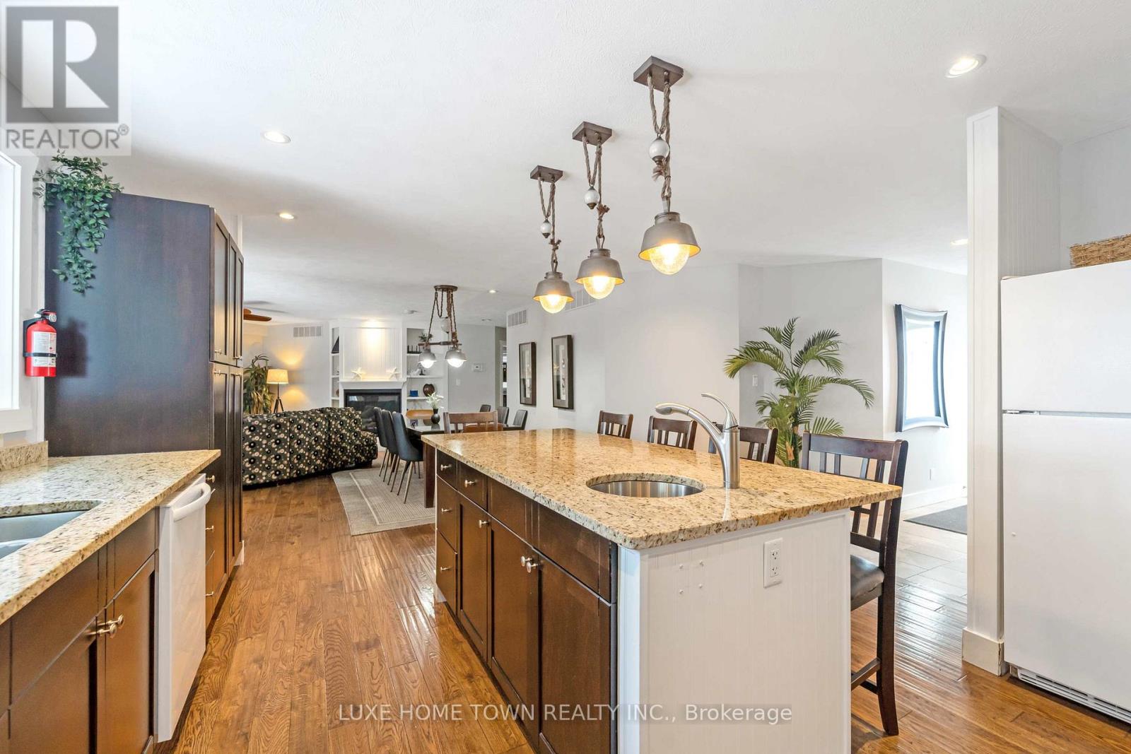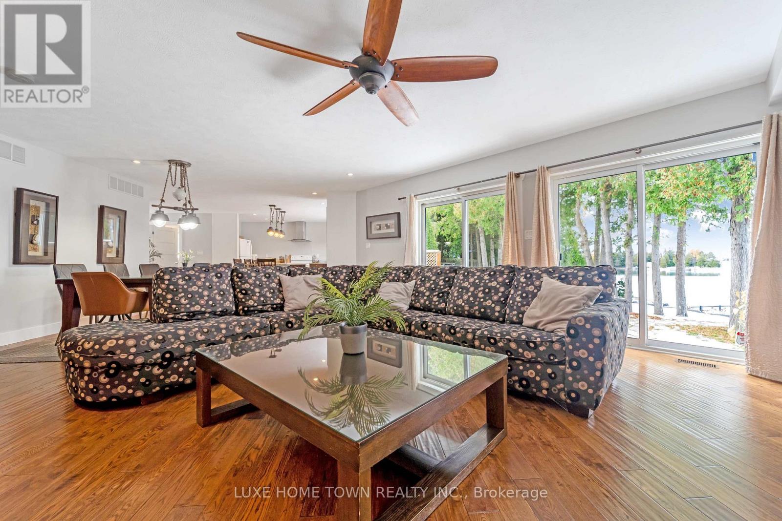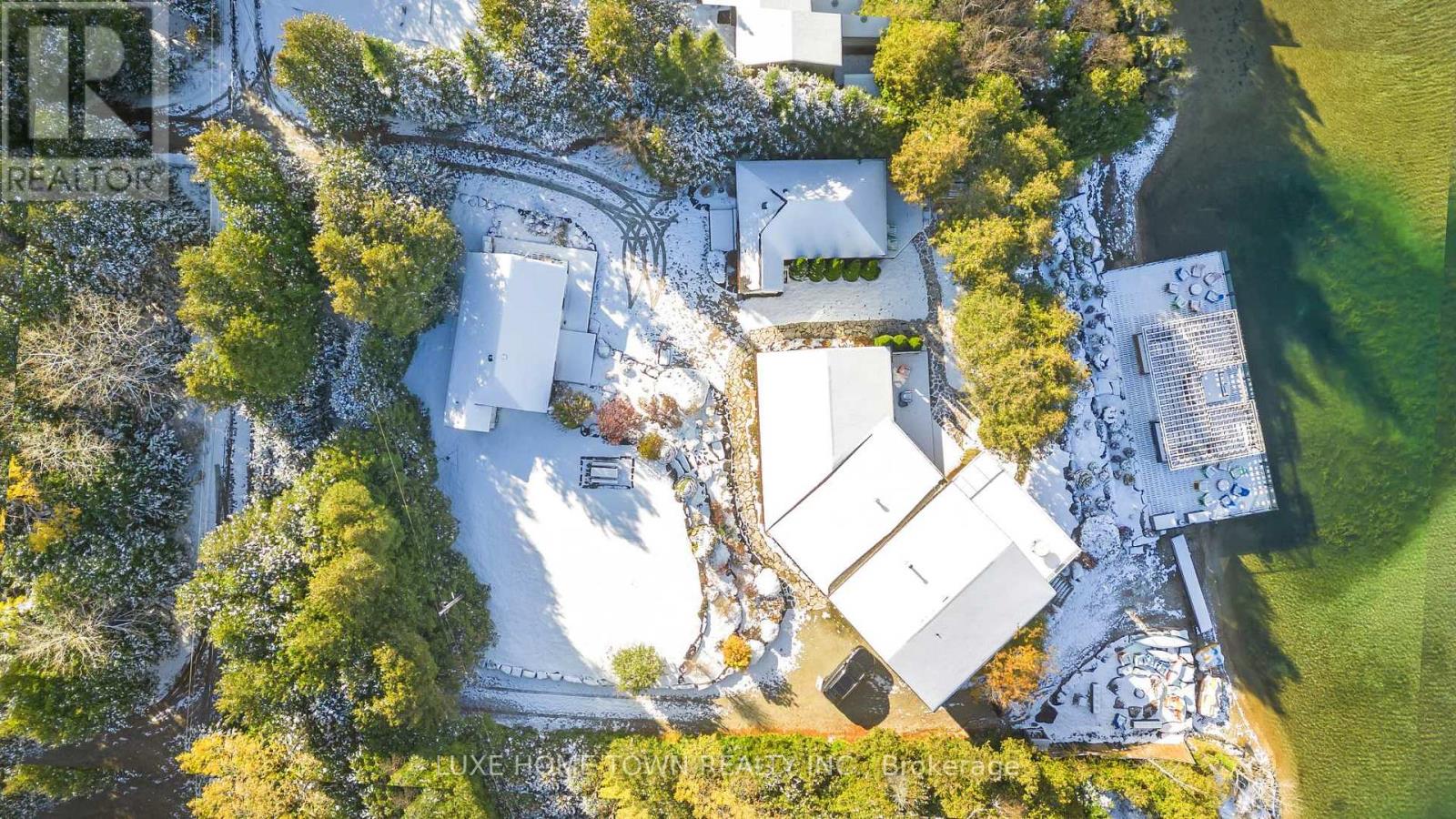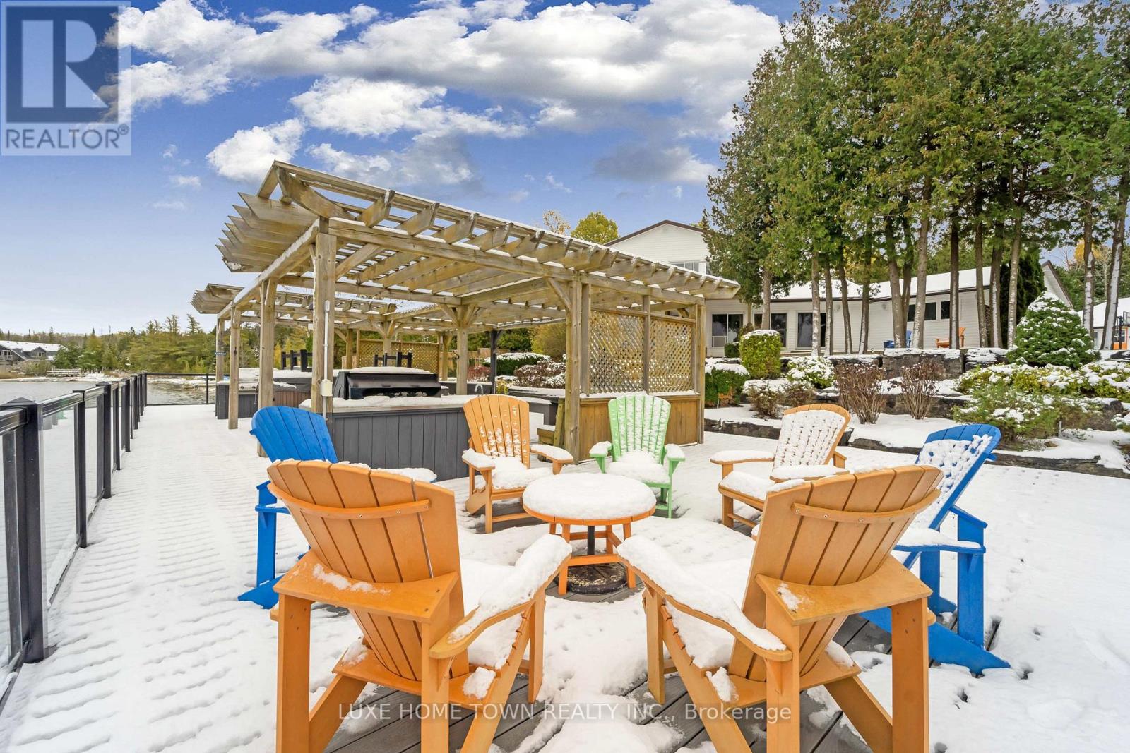 A rare and extraordinary waterfront estate offering an unparalleled standard of luxury, privacy, and resort-style living.The resort offers **four distinct and beautifully curated living spaces-Huron,Lookabout, Cedars, and Gardens-**each designed to provide privacy, comfort, and elevated style. The entire property is delivered fully furnished and completely turn-key, allowing for immediate enjoyment or seamless operational continuity. This impeccably curated retreat is fully furnished with bespoke, designer-selected pieces and outfitted with top-tier full-size appliances, hotel-quality linens, high-speed Wi-Fi, iPod docking stations, and satellite plasma televisions-delivering five-star comfort in every detail. The kitchens are masterfully designed, featuring elegant granite countertops, premium cappuccino makers, and refined finishes that blend sophistication with effortless functionality-perfect for both intimate mornings and grand entertaining. Outdoors, the property unfolds into a truly world-class waterfront experience. A stunning 2,400 sq. ft.dock anchors the estate, complete with a luxurious oversized hot tub, two professional-grade gas barbecues, and an expansive dining pavilion designed to host unforgettable gatherings on a grand scale. The waterside setting is ideal for private boat mooring, leisurely fishing, or serene swimming directly from the dock. Every element of the grounds has been intentionally designed to inspire relaxation and connection with nature-featuring classic Adirondack seating, elegant hammocks, private kayaks, and a statement fire pit that sets the stage for magical evenings under the stars. This is a truly spectacular waterfront estate-ideally suited to continue a highly desirable cottage rental business or to be enjoyed as an extraordinary multi-generational family vacation compound. Whether envisioned as a luxury income-producing asset or a private recreational sanctuary, the property offers remarkable flexibility and long term value (id:64974)
