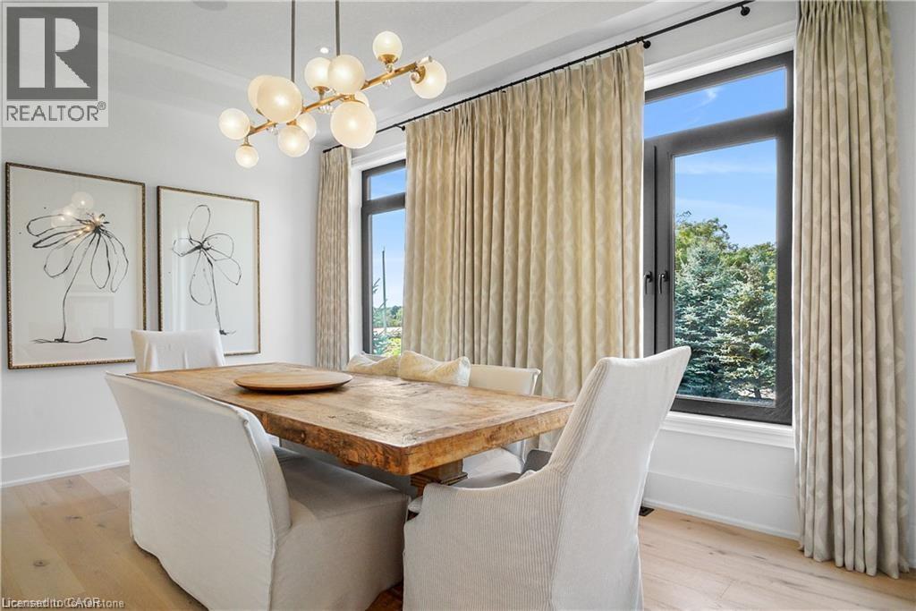 Located on a quiet court in Ancaster's prestigious Oakhill neighbourhood, 34 Harrington Place is a one-of-a-kind bungaloft designed for elegant living and unforgettable entertaining. Set on a pie-shaped, nearly half-acre lot with an impressive 217 ft across the rear, this custom-built Atherton home is surrounded by estate properties and award-winning Trillium gardens that elevate the curb appeal and outdoor experience. Boasting almost 5,000 sqft of impeccably finished living space, this home offers 3+1 bedrooms, 4 full baths, and a layout that perfectly blends everyday comfort with timeless sophistication. The main floor features a gourmet eat-in kitchen with custom cabinetry, cathedral ceiling, and access to a covered porch, flowing into a striking 12-ft great room with gas fireplace and floor-to-ceiling windows overlooking the oasis backyard. A formal dining room provides the ideal setting for hosting family gatherings and elegant dinner parties. The luxurious main-floor primary suite includes a cozy gas fireplace, an oversized walk-in dressing room, and a 5-pc spa-inspired ensuite. Also on the main level: a large private office, a full laundry room, and a stylish guest bath with direct outdoor access-perfect for rinsing off after a dip in the custom-designed hot and cold soaker pool spa or post-garden clean-up. Upstairs, two well-appointed bedrooms, a full bath, and a versatile loft area offer space for teens, guests, or a second home office. The bright walk-out basement features a 3-sided gas fireplace, spacious recreation room, kitchenette/bar, 4th bedroom, full spa bath, gym area, and abundant storage-ideal for in-laws or extended family.The backyard is a showstopper: private, lush, and tailored for gatherings large or small. Multiple seating and dining areas, a covered porch, and the signature pool spa create an outdoor sanctuary you'll enjoy in every season. This is more than a home-it's a statement of lifestyle in one of Ancaster's most exclusive enclaves. (id:64974)