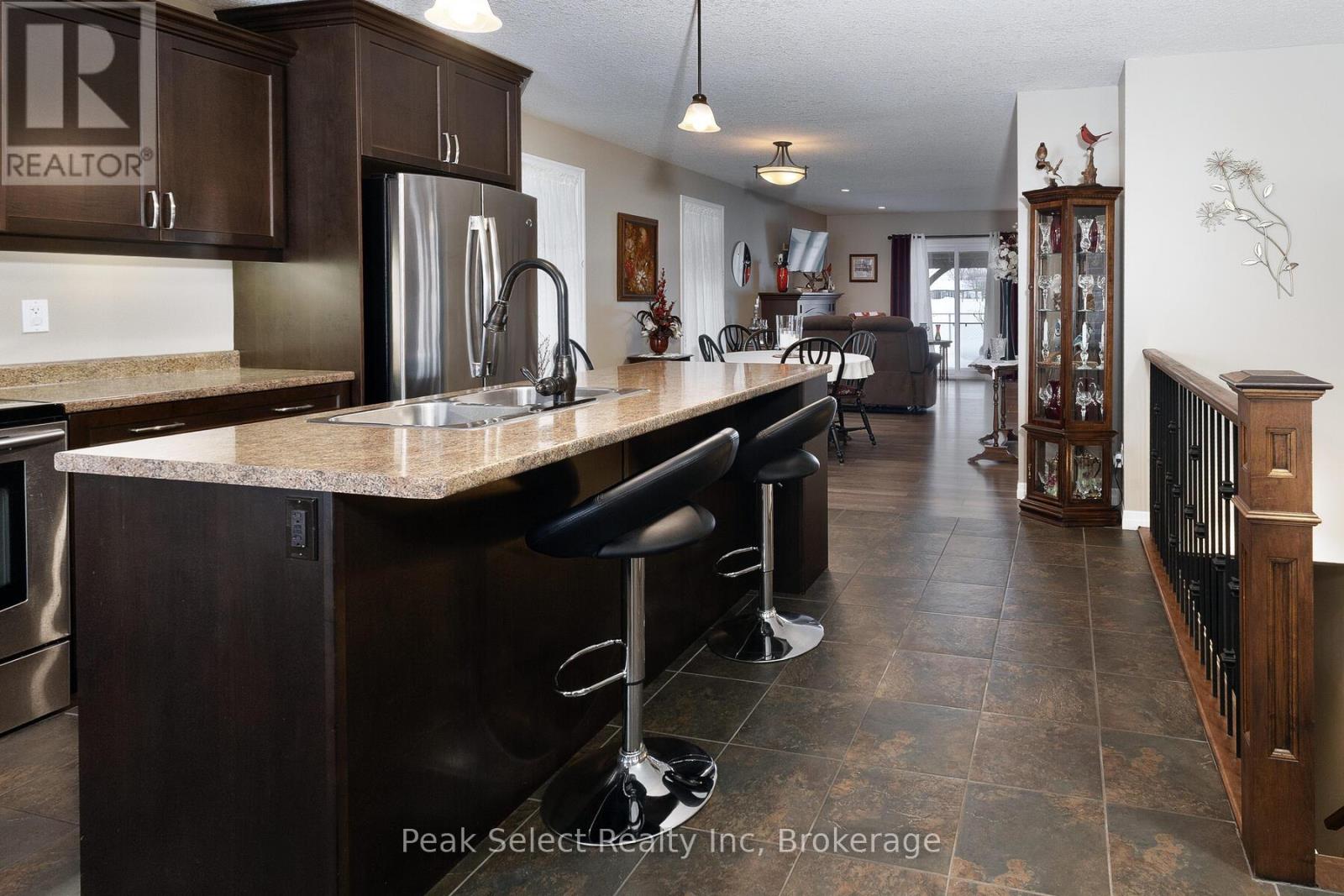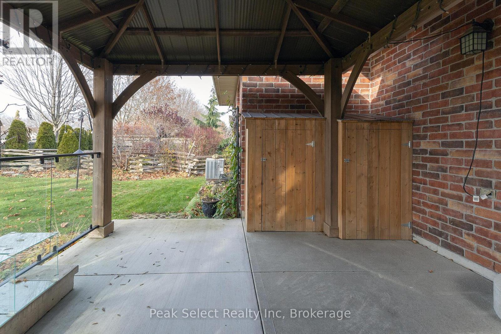 Nestled in a highly sought-after location, this well-maintained brick bungalow offers exceptional comfort and convenience on a quiet cul-de-sac, just a short walk to Little Falls Public School. The main floor features an inviting open-concept layout with a bright kitchen, centre island with breakfast bar seating, and a seamless flow through the dining and living areas-complete with a cozy gas fireplace. From here, step out to the private backyard where a spacious covered poured-concrete patio awaits, showcasing a solid wood gazebo with a metal roof, built-in bench seating with storage, a mounted outdoor TV, and sleek glass railings overlooking the soccer fields behind-providing both peace and privacy. Originally designed with three bedrooms, the home currently uses one as a generous main-level laundry, though it can easily be converted back to a bedroom with a lower-level laundry option. The main level is complete with two bathrooms and two additional well-sized bedrooms. The partially finished basement extends the living space with a large recreation room, office area, 3-piece bath, and abundant storage-offering opportunities for future expansion or customization. Additional features include an attached garage with interior access, and a prime location close to amenities, walking trails, the Pyramid Recreation Centre, Friendship Centre and much more. A wonderful blend of comfort, functionality, and an ideal setting for any lifestyle. (id:64974)