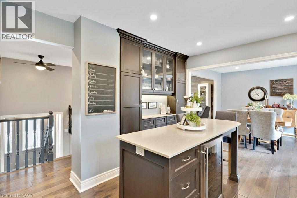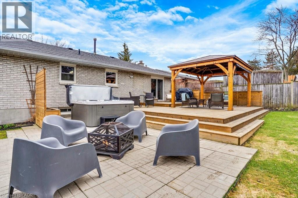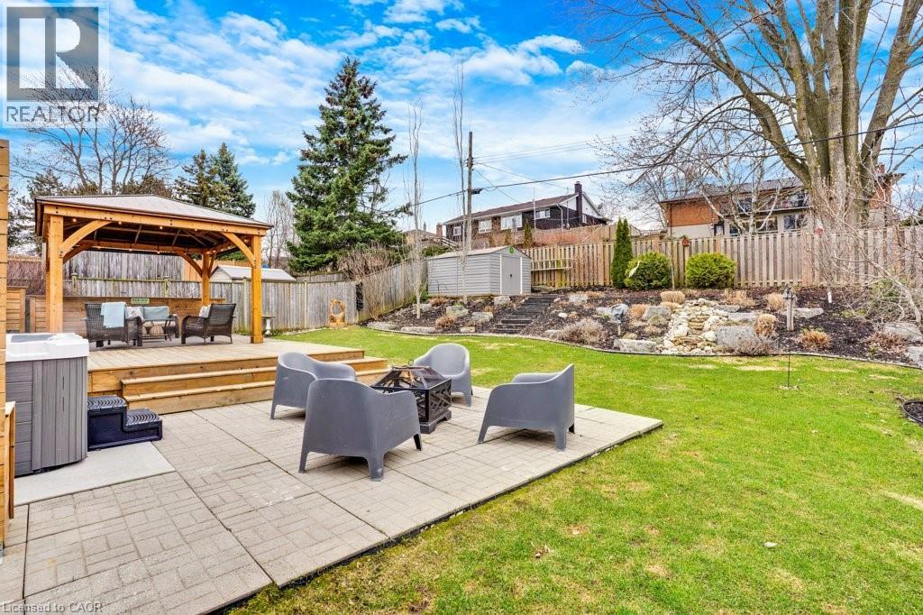 This exquisite West Galt raised bungalow is available right in time for back yard summer enjoyment! This large fenced yard has been lovingly cared for and designed. An amazing perennial garden is displayed on the slope with a babbling waterfall installed in '24. The sprawling deck, wooden gazebo, landscaping and hot tub was all completed in '21. In the front yard, all landscaping, arbour stone, the paved double-wide driveway, and the front entrance addition were completed in '21. Inside is a spacious front entrance leading to the living room, dining room and kitchen area. The living room includes an electric f/p and two sunny windows. The dining room offers a new patio door '17 leading to the deck. The kitchen was renovated in '17 and includes a centre island, quartz counter tops, two display cabinets with glass doors, under cabinet lighting and stainless steel appliances. Three bedrooms and a 4pc bath complete this level. The primary bedroom features an ensuite privilege and a step-in closet with organizers. All pot lighting and engineered flooring throughout the main level were completed in '17. The lower level includes an L-shaped family room renovated in '18 with luxury vinyl flooring and two large sunny windows, ready for all your family movie nights, and includes plumbing behind one wall for a future kitchen area if interested. A sunny bedroom with a large egress window and closet is perfect for teens or overnight guests. Adjacent is a 3pc bath with walk-in glass shower. The laundry room is bright and functional and renovated in '18. Other recent updates include the roof shingles '18. C/vac and accessories and the murphy bed are included. Hot tub is included. Don't miss out! This home has been impeccably kept and is only steps to St. Augustine School. Five minutes of countryside driving to the 401. (id:64974)