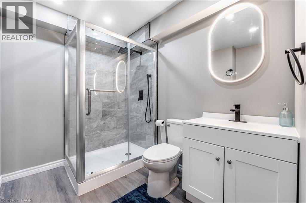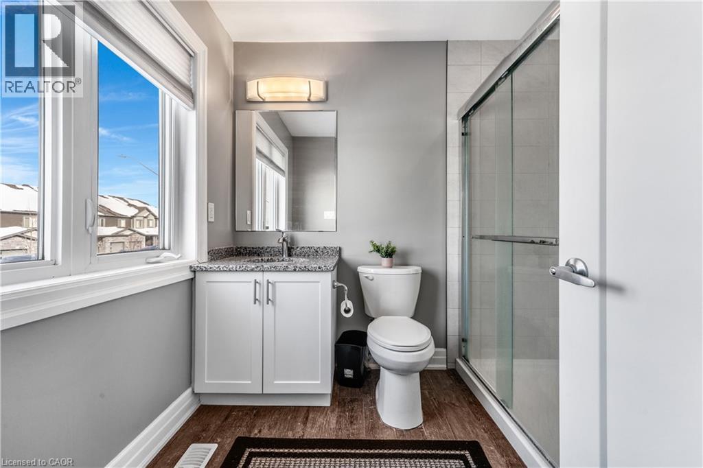 STYLISHLY UPGRADED TOWNHOME. 34 Nieson Street, Cambridge an elegantly upgraded freehold townhome set within a coveted, family-friendly neighbourhood. Backing onto green space and thoughtfully upgraded throughout, this move-in-ready home offers both refined style and practical living in a location that truly delivers. Step inside to a bright, open-concept main floor where natural light pours through large windows and laminate flooring creates a warm, welcoming atmosphere. The layout flows effortlessly with the gourmet kitchen, showcasing granite countertops, stainless steel appliances, sleek modern cabinetry, and a breakfast bar that invites casual meals, morning coffee, and effortless hosting. Overlooking the living and dining area, this space is designed to keep everyone connected. Upstairs, the primary suite is a serene retreat, complete with a spacious walk-in closet and a beautifully appointed 3pc ensuite featuring a glass walk-in shower. 2 additional sun-filled bedrooms, a stylish 4pc main bathroom, and the convenience of second-floor laundry complete this level. The fully finished basement adds incredible versatility, offering a generous recreation room, a newly completed modern 3pc bathroom, and ample storage — perfect for a home office, guest suite, gym, or additional living space. With thoughtful upgrades throughout, this home has been meticulously cared for. Ideally located close to schools, parks, shopping, and with quick access to Highway 401. (id:64974)