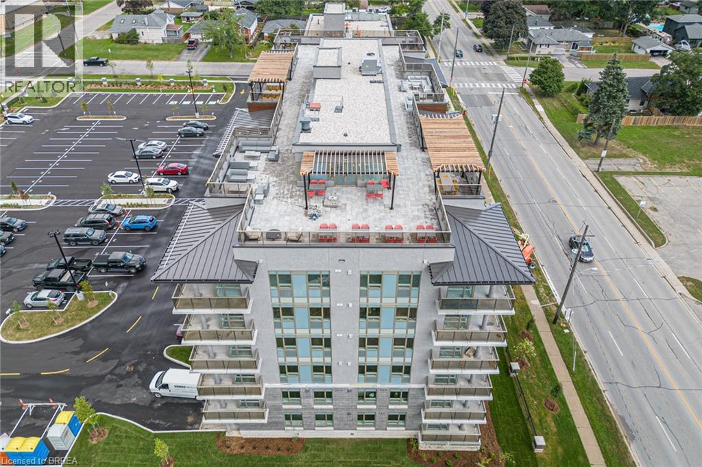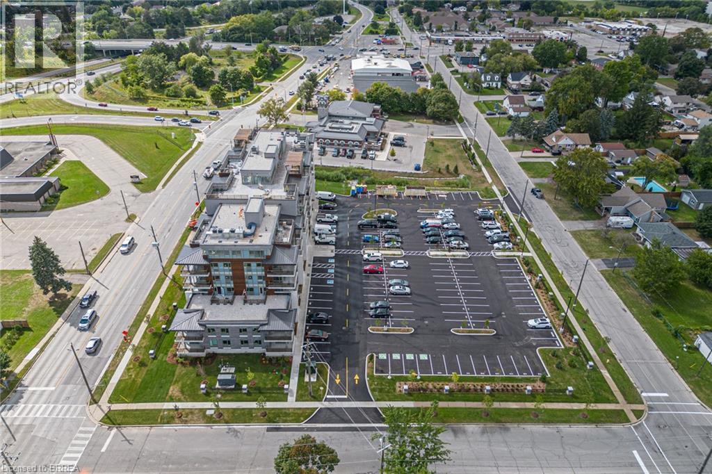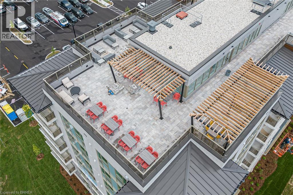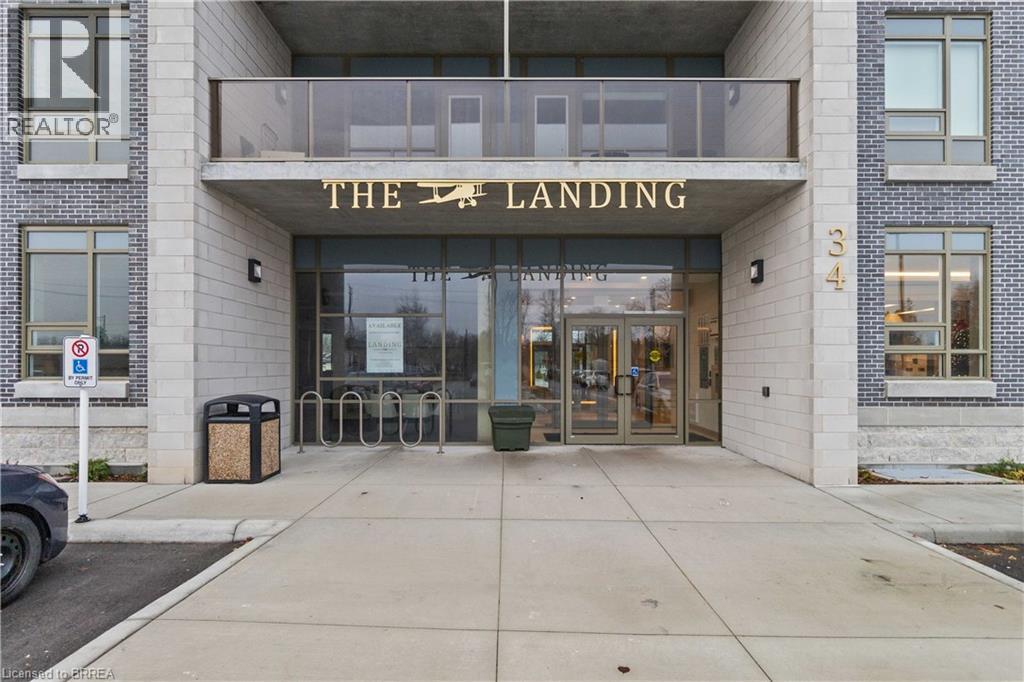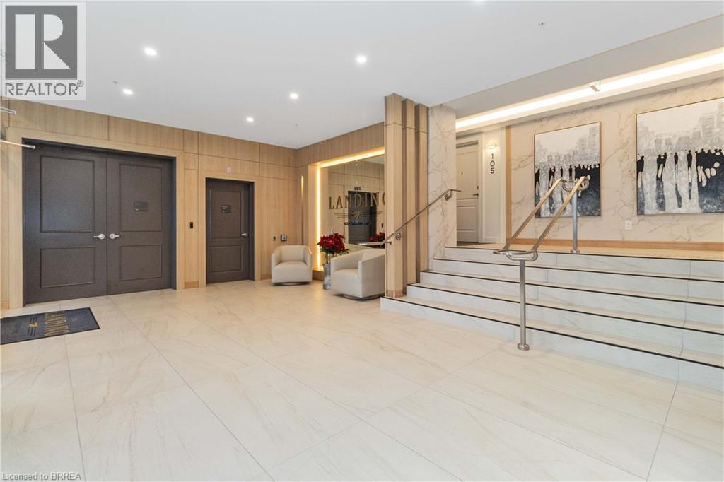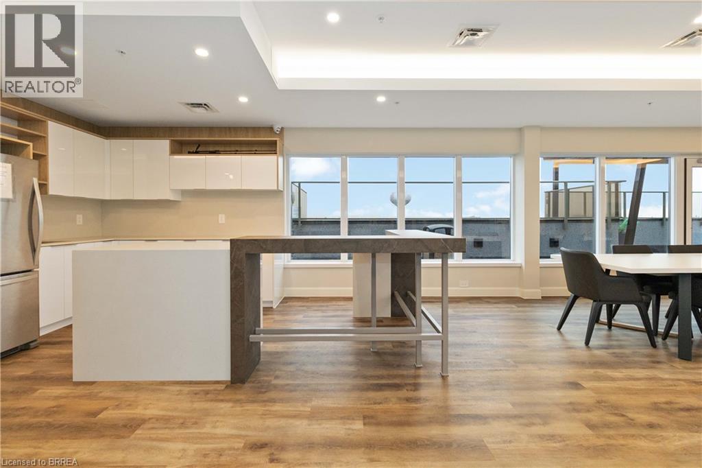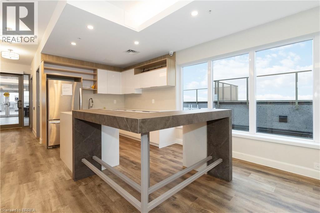 One of the most sought after condominium developments in Brantford with truly amazing amenities! Fourth floor for this premium one bedroom one bath apartment. Welcome to The Landing offering a wonderful roof top patio equipt with outdoor lounging, shared BBQs and an indoor gathering area with kitchen, sitting areas and pool table room with a TV! This building aslo boasts a fully equipt fitness gym, speakeasy for group parties and quiet library. Located right off HWY 403 this location is perfectly situated close to great schools, parks, shopping and restaurants. Quality finishes through out including vinyl plank luxury flooring an open concept great room with modern kitchen having a peninsula island with seating and b-in s.s dishwasher w/s.s appliances included. Walk out to your private covered balcony with extraordinary views. Large principle bedroom with walk in closet. Convenient in-suite laundry closet. Upgraded builders package. The tenant will be vacating on April 30th 2026. (id:64974)