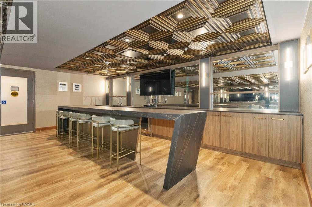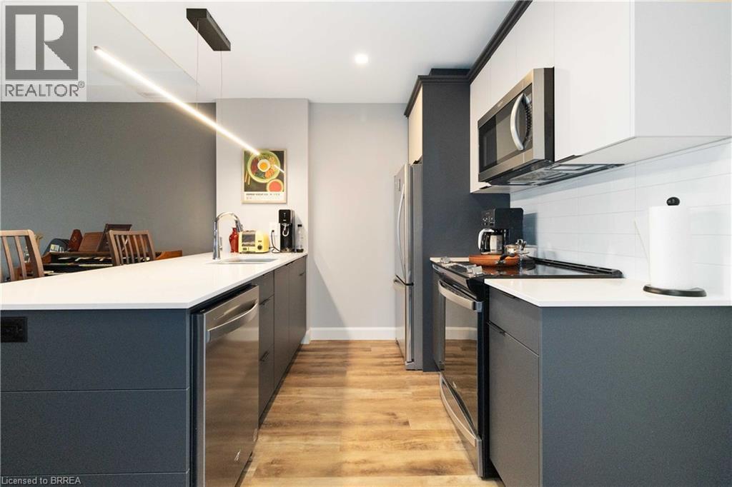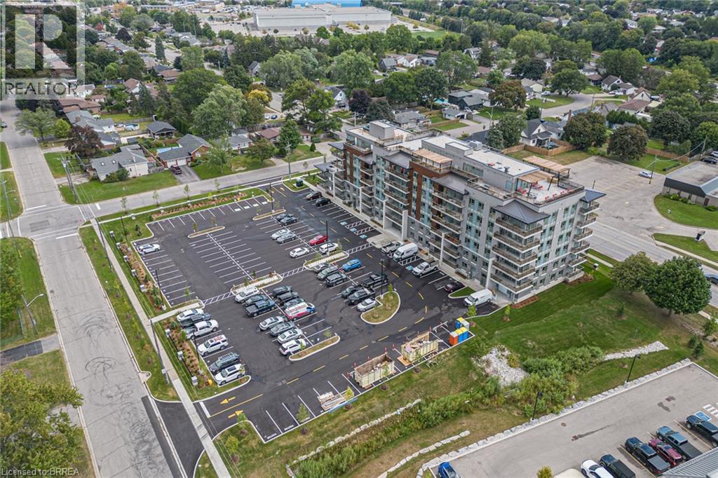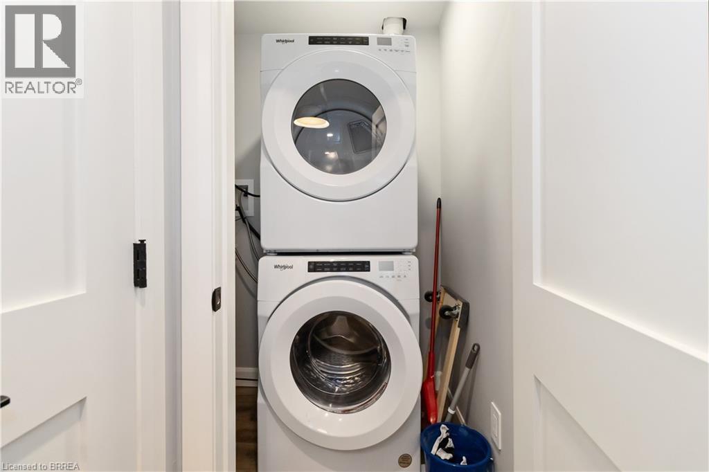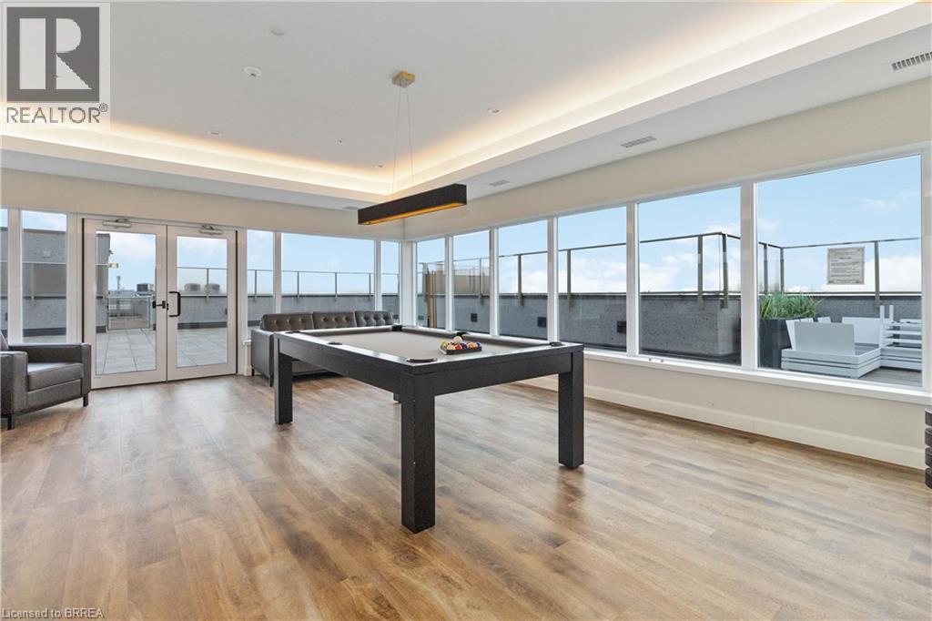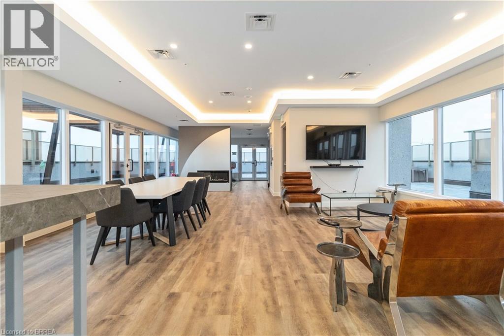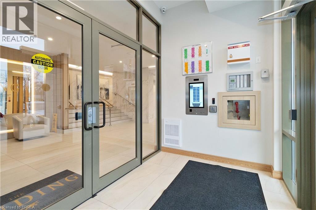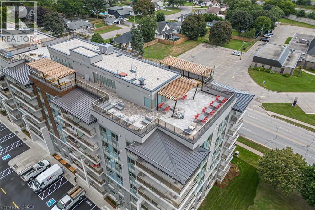 One of the most sought after condominium developments in Brantford with truly amazing amenities! Fourth floor for this premium one bedroom one bath apartment. Welcome to The Landing offering a wonderful roof top patio equipt with outdoor lounging, shared BBQs and an indoor gathering area with kitchen, sitting areas and pool table room with a TV! This building aslo boasts a fully equipt fitness gym, speakeasy for group parties and quiet library. Located right off HWY 403 this location is perfectly situated close to great schools, parks, shopping and restaurants. Quality finishes through out including vinyl plank luxury flooring an open concept great room with modern kitchen having a peninsula island with seating and b-in s.s dishwasher w/s.s appliances included. Walk out to your private covered balcony with extraordinary views. Large principle bedroom with walk in closet. Convenient in-suite laundry closet. Upgraded builders package. The tenant will be vacating on April 30th 2026. (id:64974)