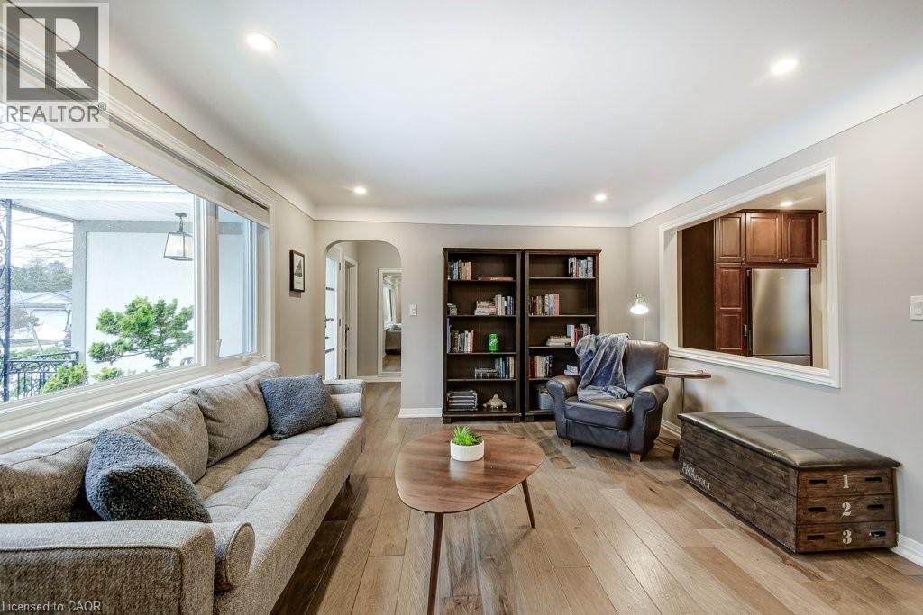Charming Ancaster bungalow on a premium wide lot. Nestled on a quiet street with mature trees and gorgeous curb appeal, just a short walk to Wilson Street and local town amenities. The open-concept layout features a bright kitchen and dining area overlooking the private backyard, perfect for everyday living and entertaining. The spacious great room with a cozy gas fireplace connects the main living spaces and showcases a large picture window overlooking the peaceful street. Stunning hickory hardwood flooring adds warmth and character throughout the main living areas. A generous heated sunroom offers valuable additional living space and includes access to the garage, backyard, and front yard, ideal for relaxing, indoor gardening, or working from home. Located close to parks and scenic escarpment trails, and just minutes to the Hamilton Golf and Country Club, this home is perfect for those who appreciate both nature and suburban convenience. Easy access to Hwy 403, Hwy 6, and the Lincoln M. Alexander Parkway makes commuting simple. (id:64974)