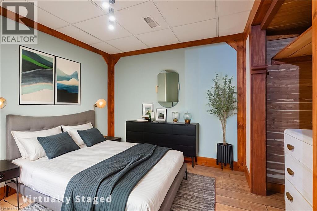 Welcome to this adult lifestyle complex. This well cared for property and spacious bungalow with over 1075 sq.ft. of main floor living space includes a bright, modern eat-in kitchen with walk-out to large deck and gardens, big living room dining room combo boasts elegant plank flooring, cozy gas fireplace and front foyer. Main floor bathroom plus big principal bedroom with walk-in closet and decidant 4 piece ensuite with soaker tub/shower. The basement includes a bedroom, bathroom, rec room, cold room, utilities and large workshop which could be easily converted. There is an attached garage with in-home access and storage shelves. Private driveway, a short walk to all amenities, shopping, pharmacy, Timmies, close to parks and recreation. Small town feel with all the necessities. Shows A+. Appliances, California shutters and more. (id:64974)