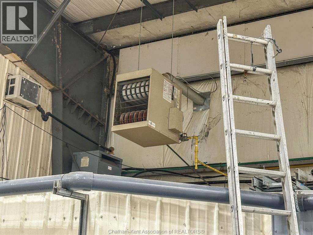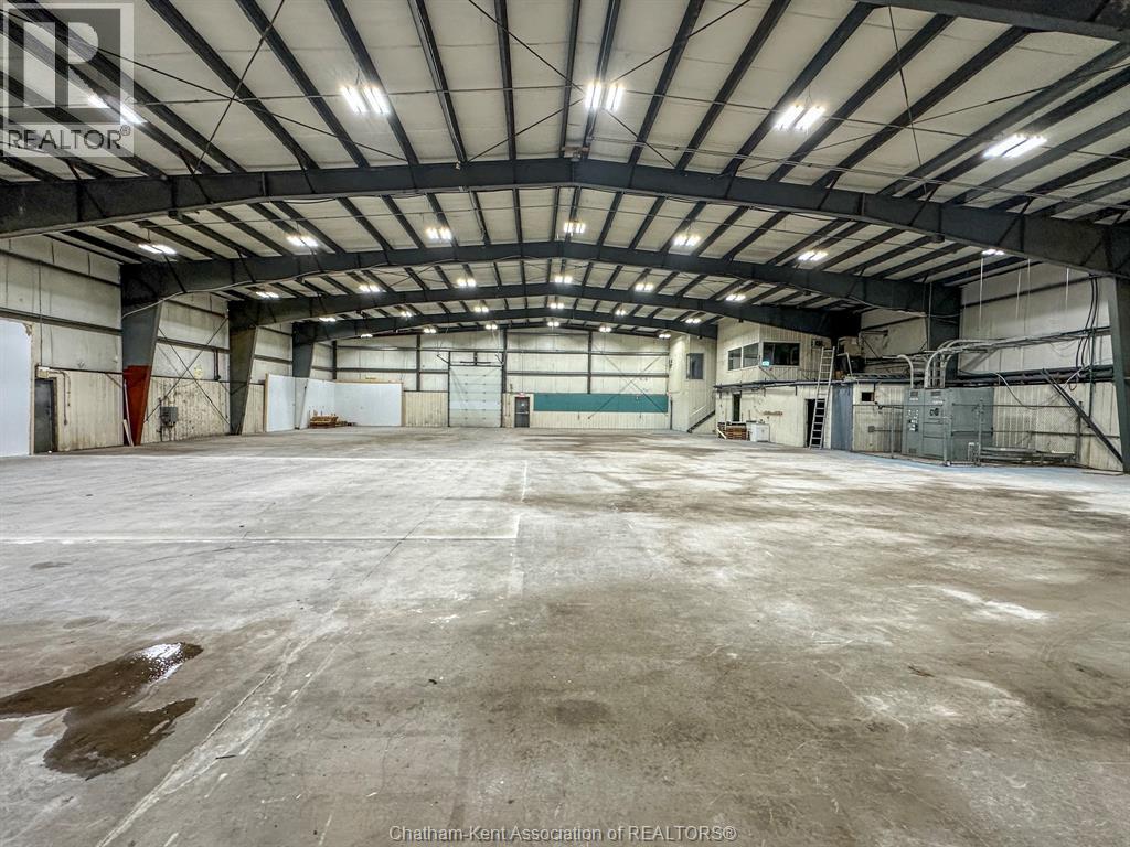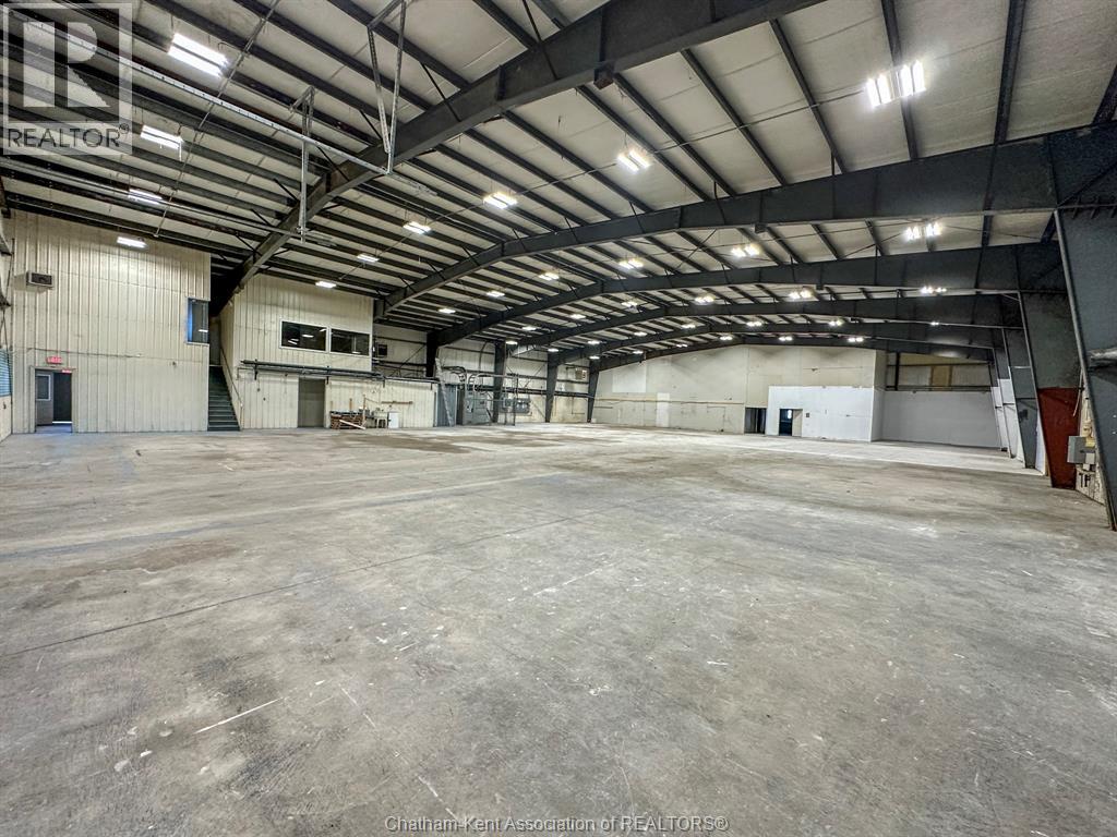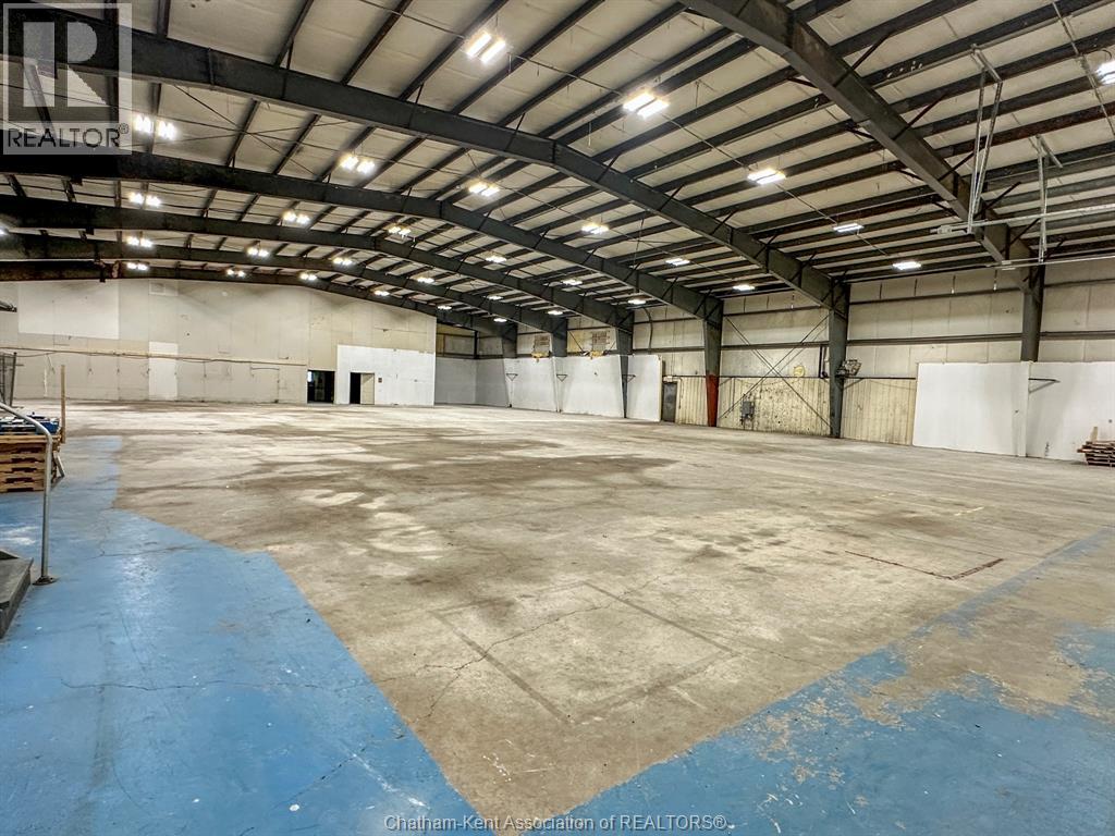 14,000 square foot building in Blenheim's industrial park with General Industrial zoning. 1.73 acre lot. Quick access to Highway 401. The main clear span area has a max width of 98 feet and a max depth of 119 feet, totalling approximately 10,700 square feet with a max height of 22'9"". 23' wide loading dock, two 12'x14' foot overhead doors. Large indoor storage area with a 2nd floor mezzanine. Reception area, 2nd floor office and conference rooms, break room with a kitchen, 3 bathrooms. 88'x70' concrete parking area. 2 overhead gas furnaces. 600 volt hydro. Updated LED lighting in the main area. The building is located at the west end of the lot, providing a large outdoor storage space to the east of the building. Offered at $9/sqft annually, triple net. Call now for more information or to arrange a viewing. (id:64974)