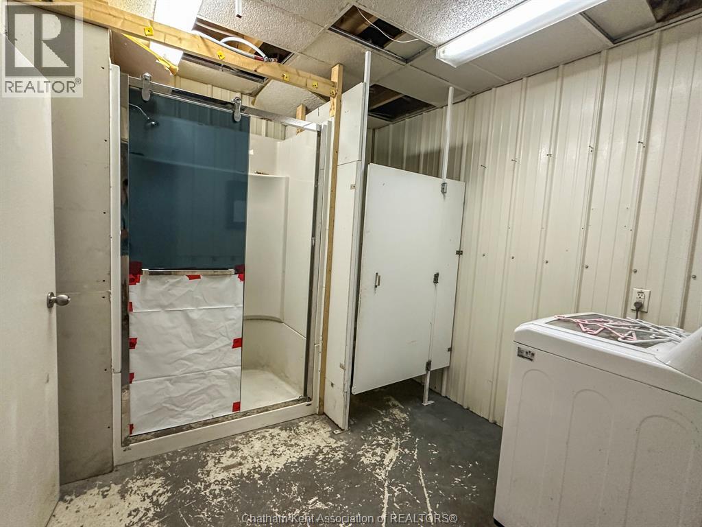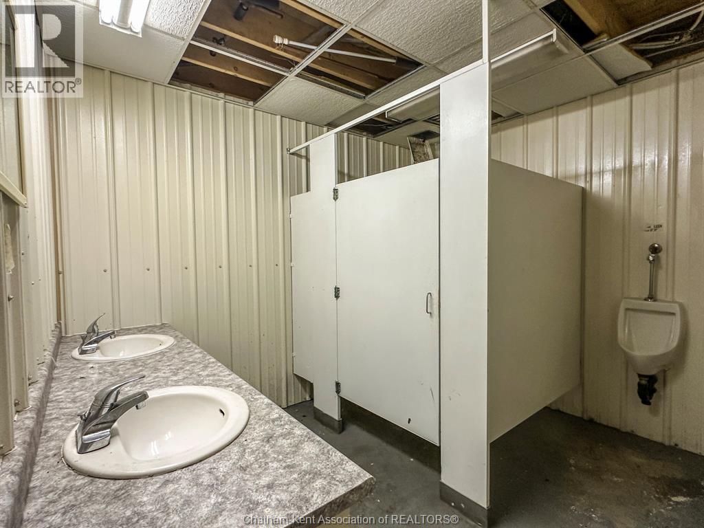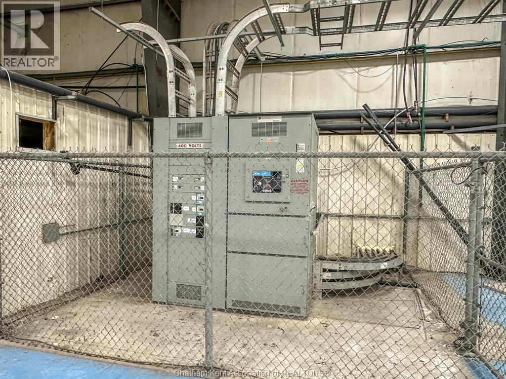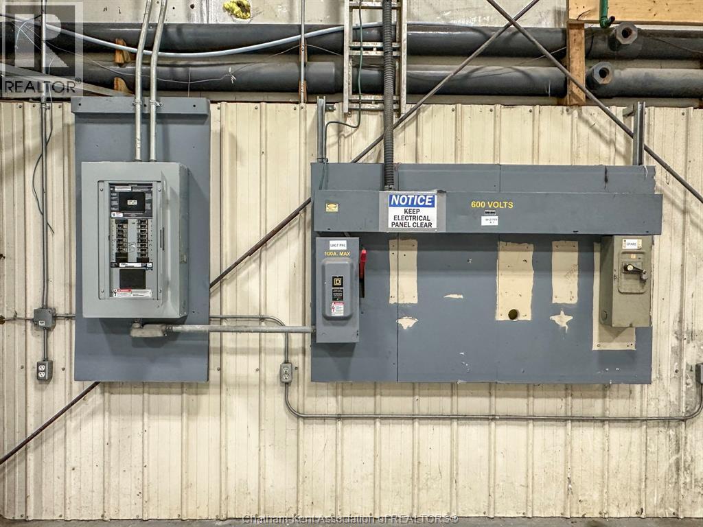 14,000 square foot building in Blenheim's industrial park with General Industrial zoning. 1.73 acre lot. Quick access to Highway 401. The main clear span area has a max width of 98 feet and a max depth of 119 feet, totalling approximately 10,700 square feet with a max height of 22'9"". 23' wide loading dock, two 12'x14' foot overhead doors. Large indoor storage area with a 2nd floor mezzanine. Reception area, 2nd floor office and conference rooms, break room with a kitchen, 3 bathrooms. 88'x70' concrete parking area. 2 overhead gas furnaces. 600 volt hydro. Updated LED lighting in the main area. The building is located at the west end of the lot, providing a large outdoor storage space to the east of the building. Offered at $9/sqft annually, triple net. Call now for more information or to arrange a viewing. (id:64974)