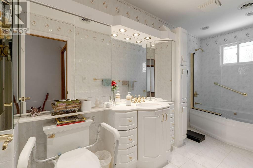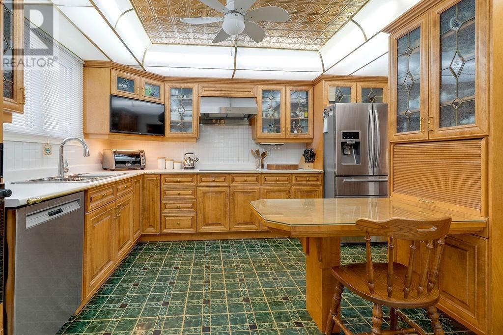 Spacious five-bedroom home tucked away on a quiet crescent in a highly mature and sought-after neighborhood in New Sudbury. This well-built home features an updated kitchen with high-end appliances, a large living room with formal dining area, and a main floor family room highlighted by a fully bricked fireplace and patio doors leading to a private, treed backyard. The upper level offers a true four-bedroom layout, including a generous primary bedroom, walk-in linen closet, and a gorgeous, timelessly updated main bathroom complete with high-end Kohler fixtures and a relaxing air tub. The basement is well finished and includes a 5th bedroom, home gym, sauna with shower, kitchenette, and plenty of storage space. Additional features include a wireless security system, Venmar air exchange system, a finished garage with built-in cabinetry, shingles and a forced air furnace approximately 10 years old. A solid home with great potential to make it your own, all in an unbeatable location! A real family home! (id:64974)
