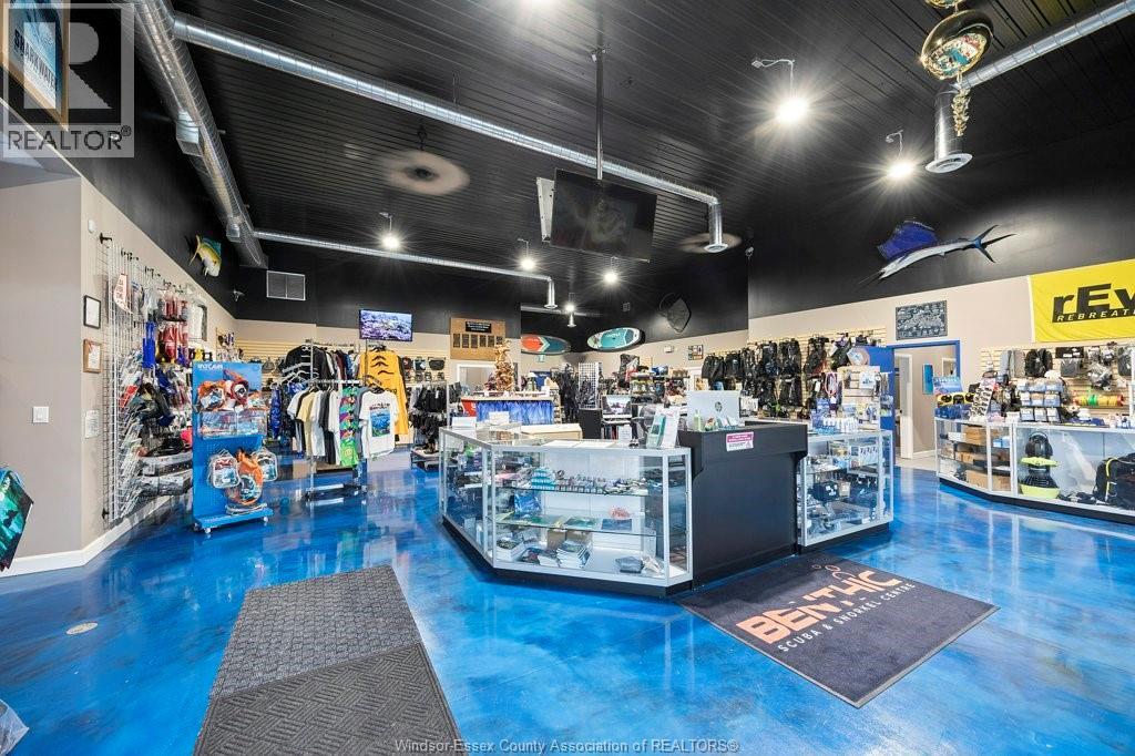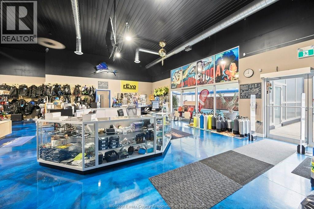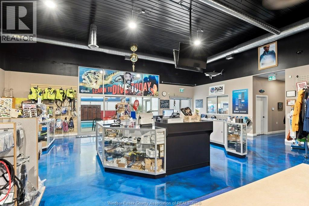 Built in 2019 this high end finish building is 9609.94 sq ft and it sits on 1.008/acre in a highly visible sought after area off ECROW ( county rd 22)on the border of Lakeshore/Tecumseh. Currently operating as CPR DEPOT and BENTHIC SCUBA AND SNORKEL CENTRE. Property being sold as a package with both businesses and inventories and holding company for land and building. Contact the listing agents for details on purchasing just the business entities which is also an option. Details Pool area 51'2 x 35'5 with Class B scuba pool, 40 x 20 x 12 heated floors and gas radiant heat, auto cover, command centre room , retail showroom 39'10 x 58'9, 34' x 23' 9 showers washrooms change areas, 4 offices, staff kitchen, workshop, mechanical room, storage, office washrooms, 64 x 53' 5 warehouse with 16 ft cement loading dock, 50 amp plug and waterline for an RV site at back, 3 exterior heating and cooling combo units, 1 indoor gfa/ca. NON DISCLOSURE MUST BE SIGNED FOR FINANCIALS (id:64974)