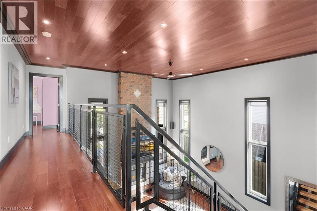 One-of-a-kind, only two owner custom home on a rare double lot in a quiet upper Stoney Creek court! This is the kind of property that rarely comes to market. Loaded with custom finishes, outdoor luxuries, and lifestyle upgrades inside and out. Winters have been spent skating on the backyard rink, and summers around the full brick pizza oven with chimney in the outdoor kitchen with Napoleon Prestige Pro 500 BBQ, fully wired with outdoor patio speakers, all set in a private green space. Sleek matching shed with electrical service and double doors featuring indoor/outdoor dog kennel. Integrated security system with LED lighting throughout the property. Step inside to a soaring 2-storey family room with a modern fireplace anchored by a fully plumbed 220-gallon aquarium, the stunning focal point and show piece of the main floor. The oversized kitchen easily fits a 12+ person table and flows into a spacious prep kitchen with granite counters and stainless steel appliances. A bold steel and wood staircase adds a cool industrial vibe. Upstairs, every bedroom has its own ensuite privilege. The main bedroom and ensuite bathroom feature a built-in surround sound system for a luxurious retreat. This home also includes a 104-bottle cantina with an in-wall security safe, Steam Core sauna, and a partially finished basement already equipped for a hair salon. Double car garage with EV charger, double driveway, and just minutes from schools, parks, shopping, movie theatres, and highway access. This isn’t just a home, it’s an experience. Come see it for yourself. (id:64974)