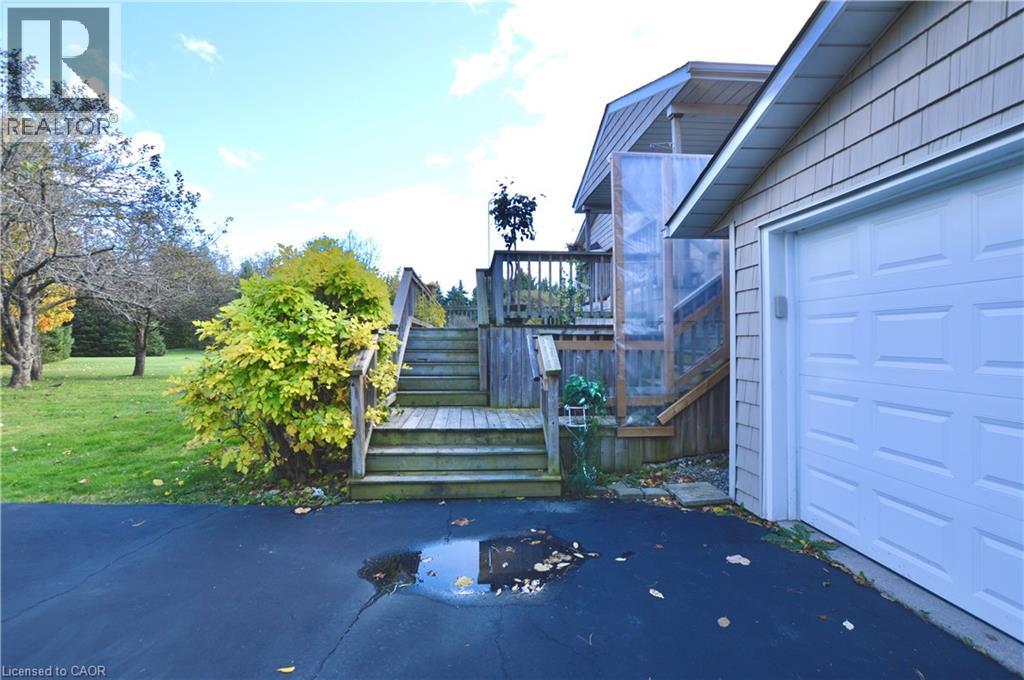 Prime Location & Endless Possibilities - Discover the perfect blend of privacy, space, and convenience with this charming 3-bedroom raised bungalow, nestled on nearly 5 acres of peaceful, picture-perfect countryside — just 1.5 km north of Dundas Street! Enjoy the tranquillity of rural living without sacrificing proximity to city amenities. Set back approximately 350 feet from the road and surrounded by mature trees, the home features exceptional privacy and a quiet retreat from everyday noise. Inside, the open-concept layout is bright and inviting, featuring great flow and abundant natural light — the perfect canvas to personalize and make your own. The bi-level front deck welcomes guests in style, while the primary bedroom’s private walk-out deck is ideal for morning coffee or evening relaxation. The partially finished lower level is drywalled and sub-floored, featuring a gas fireplace and above-grade, chest-level windows that bathe the space in natural light. It’s a blank slate ready for your imagination — whether you envision a family recreation area, guest suite, home office, or studio. A detached double garage with automatic doors and an additional storage shed provides ample space for vehicles, tools, and hobbies. The kitchen includes built-in appliances (range, oven, and dishwasher), while essential systems — drilled well, UV water filtration, and owned water softener — ensure comfortable, self-sufficient country living. Whether you’re ready to move in, expand on the existing footprint, or build your dream home from the ground up, this property has endless potential. Don’t miss this rare opportunity — a peaceful country retreat just minutes from everything! (id:64974)