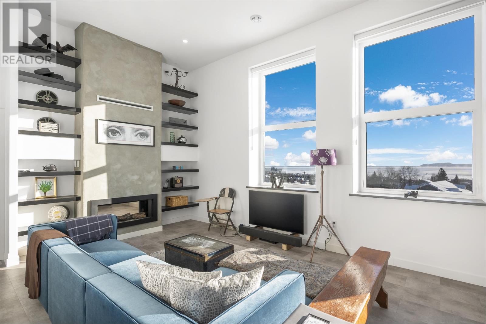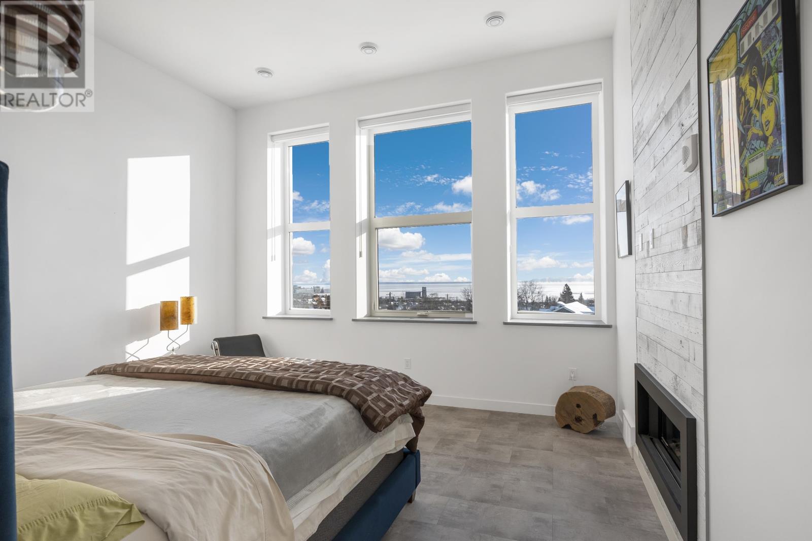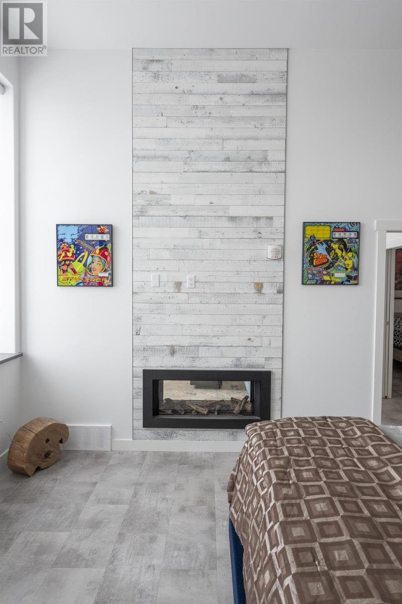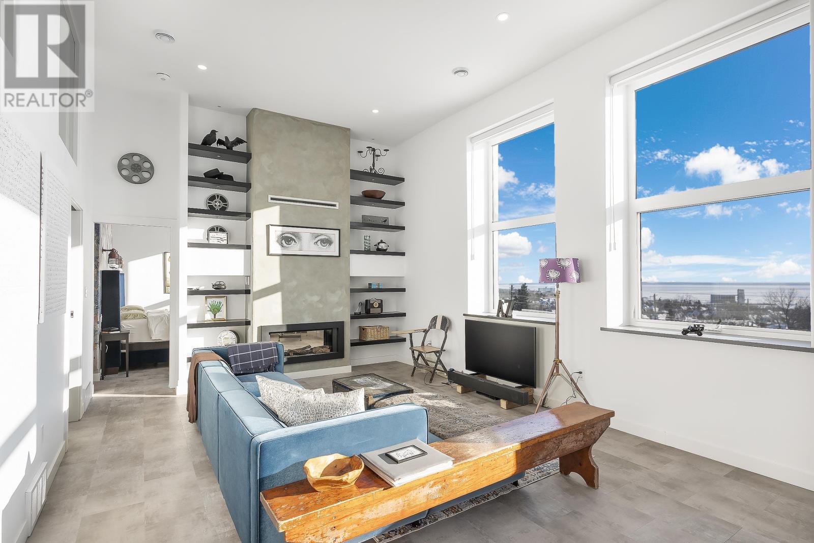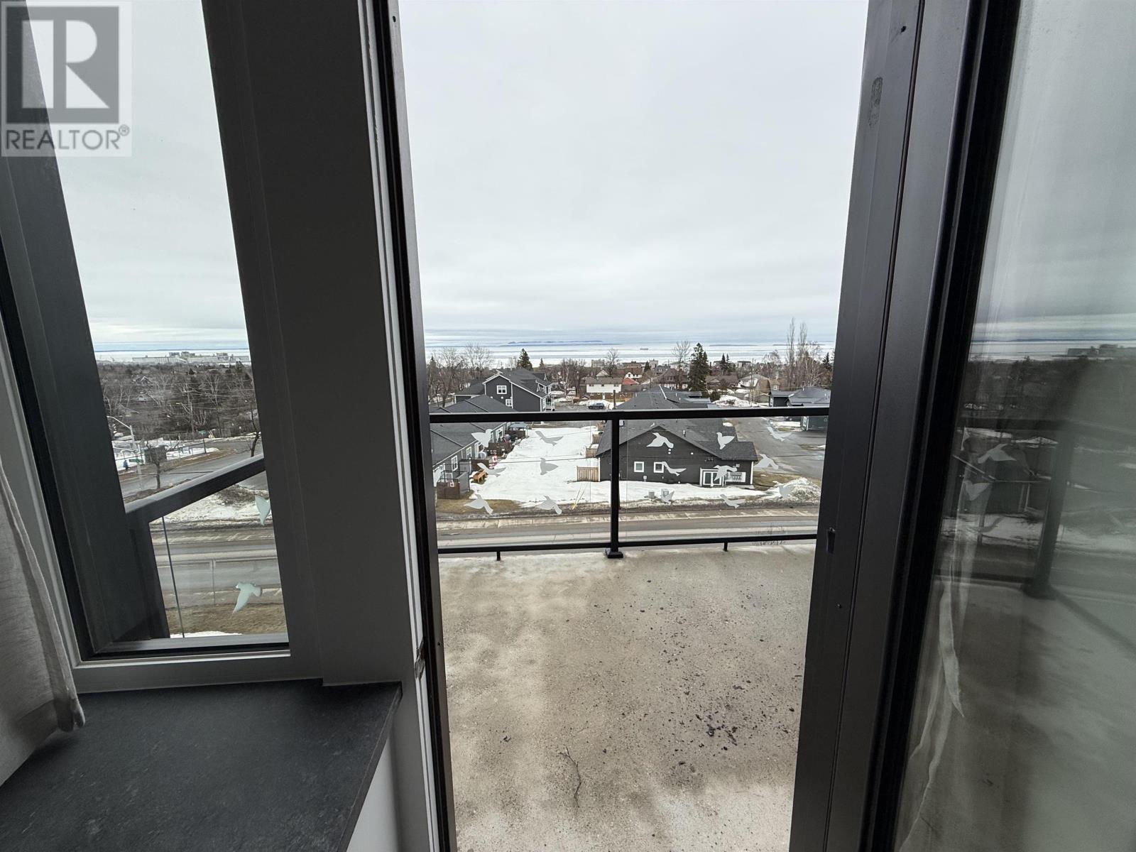An exceptional top-floor condo offering what is widely considered the best view in the building, perfectly centered to capture breathtaking vistas of the Sleeping Giant and Lake Superior. This outstanding residence features 1,530 square feet of beautifully designed living space with impressive 12-foot high ceilings and an open, light-filled layout. The condo includes two spacious bedrooms and two full bathrooms, highlighted by an exceptional primary suite that flows seamlessly through dual walk-in closets into a spa-inspired ensuite with double sinks, a soaking tub, a walk-in shower, and in-suite laundry. The living and dining areas are anchored by a striking two-sided gas fireplace, creating warmth and elegance throughout the space. Step onto the balcony to enjoy uninterrupted lake views and spectacular sunsets over Lake Superior. Completing this rare offering is a private garage measuring approximately 28’ x 10’, potentially to accommodate 2 small cars, and is great for bike storage, shelving and recycling, adding both convenience and exceptional value. Truly the premier condo in the building, combining superior views, thoughtful design, and refined living in one of Thunder Bay’s most sought-after settings. (id:64974)