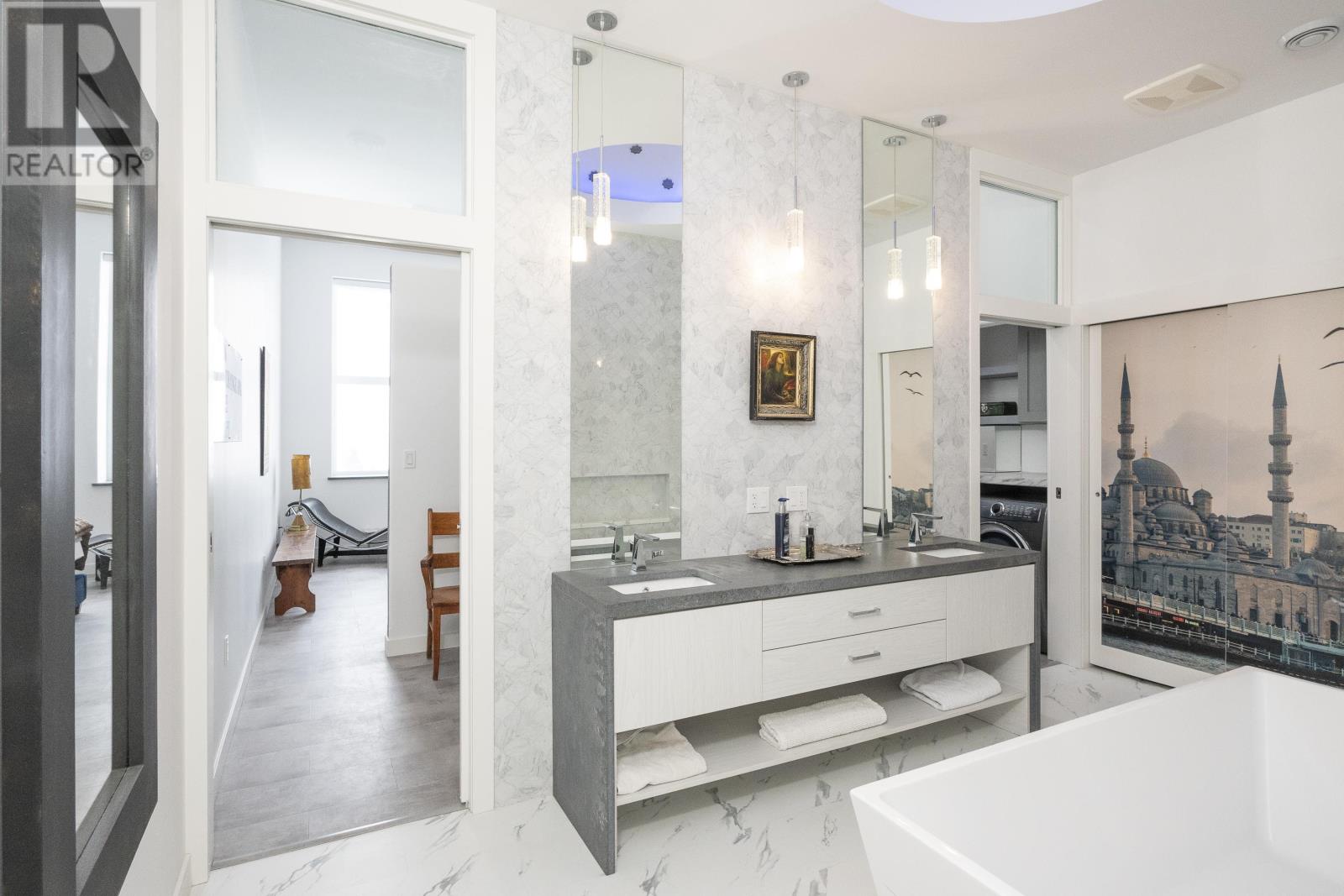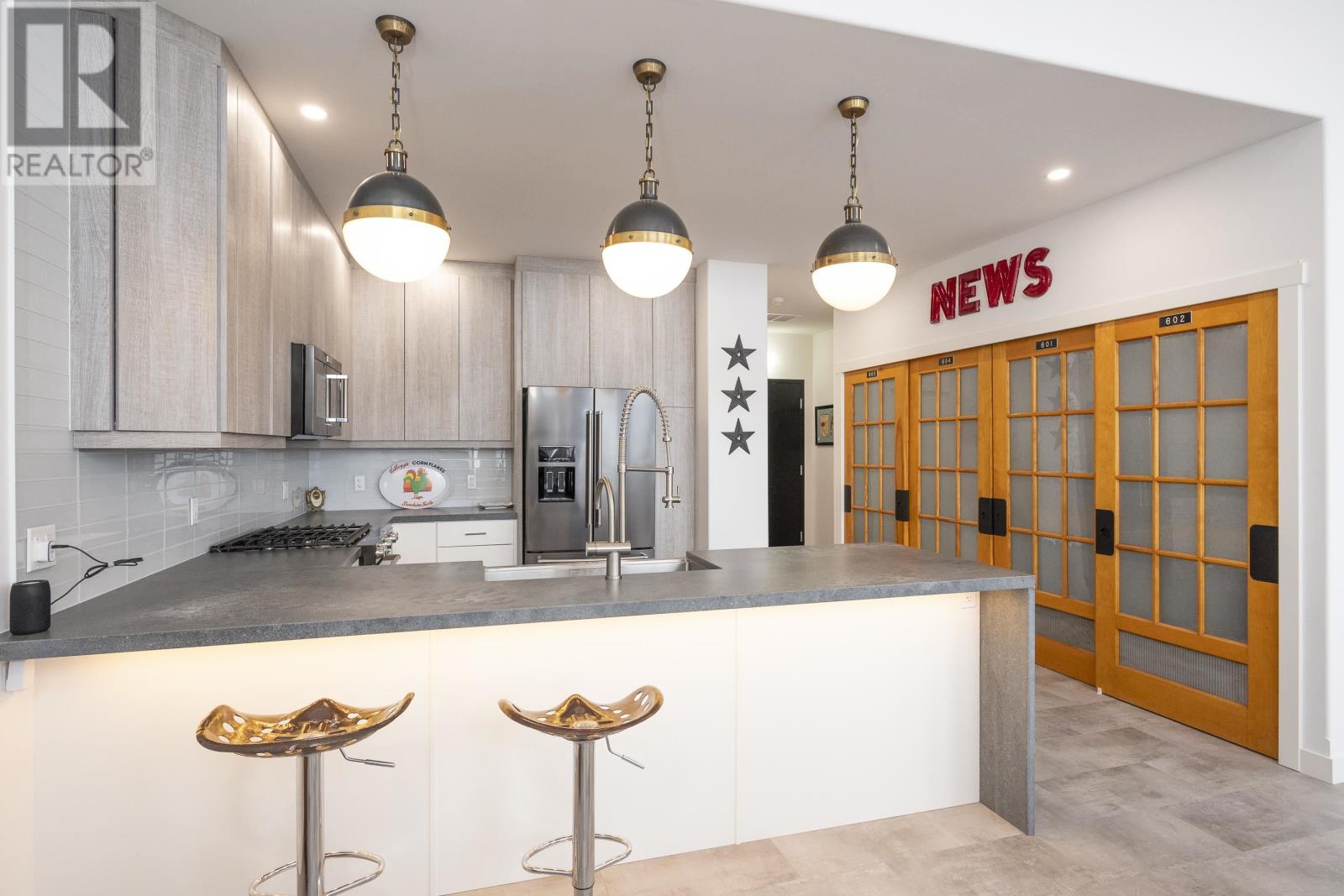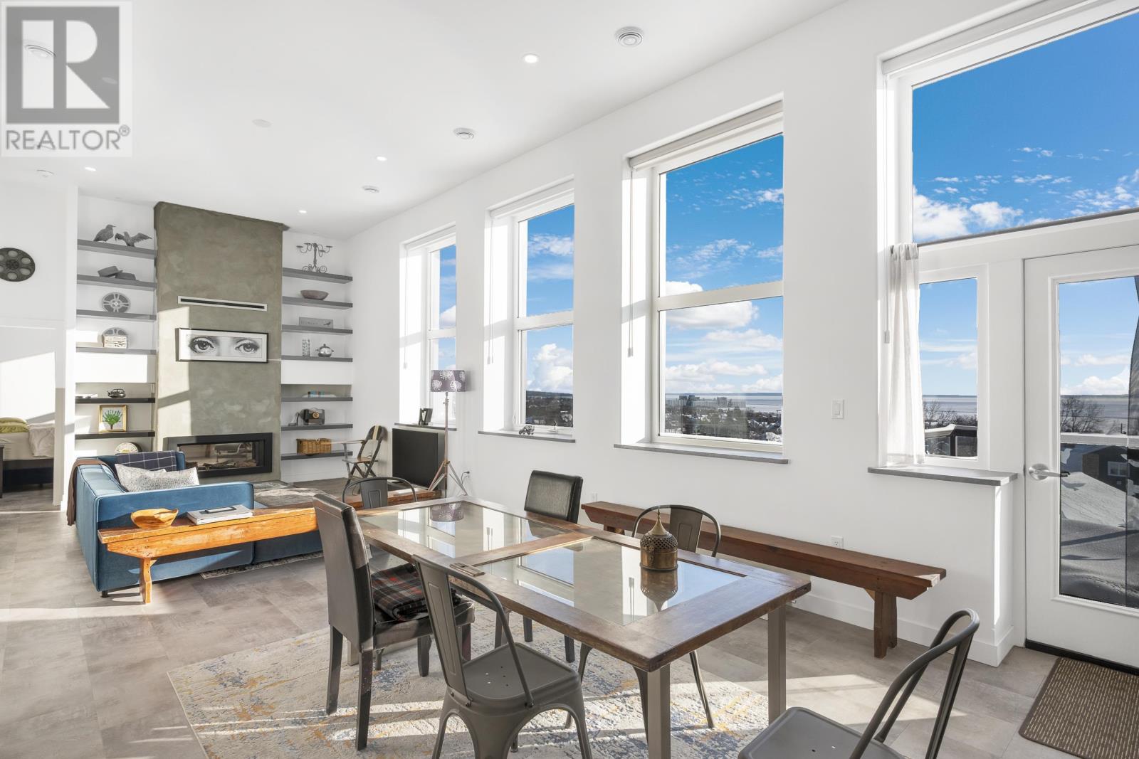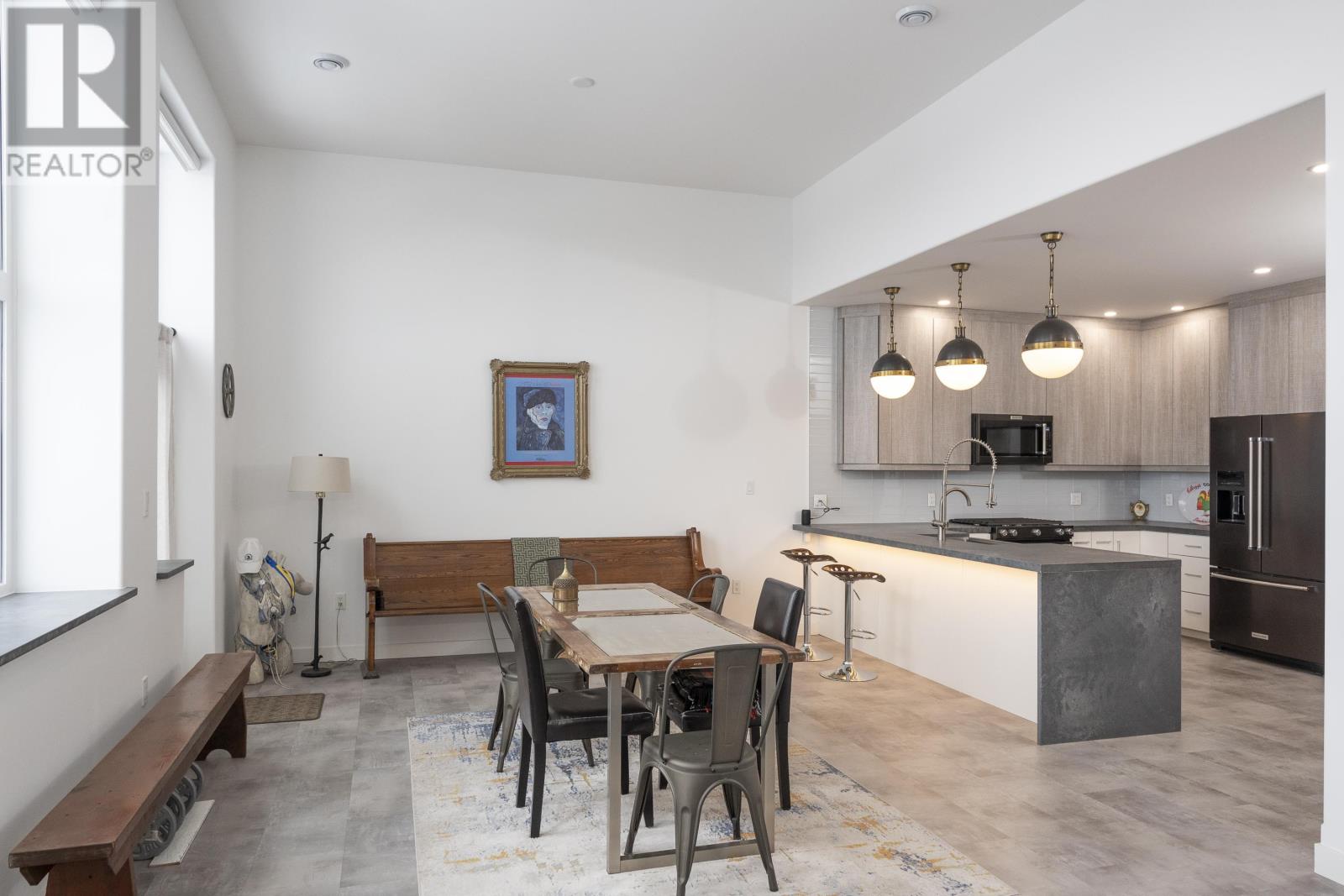 An exceptional top-floor condo offering what is widely considered the best view in the building, perfectly centered to capture breathtaking vistas of the Sleeping Giant and Lake Superior. This outstanding residence features 1,530 square feet of beautifully designed living space with impressive 12-foot high ceilings and an open, light-filled layout. The condo includes two spacious bedrooms and two full bathrooms, highlighted by an exceptional primary suite that flows seamlessly through dual walk-in closets into a spa-inspired ensuite with double sinks, a soaking tub, a walk-in shower, and in-suite laundry. The living and dining areas are anchored by a striking two-sided gas fireplace, creating warmth and elegance throughout the space. Step onto the balcony to enjoy uninterrupted lake views and spectacular sunsets over Lake Superior. Completing this rare offering is a private garage measuring approximately 28’ x 10’, potentially to accommodate 2 small cars, and is great for bike storage, shelving and recycling, adding both convenience and exceptional value. Truly the premier condo in the building, combining superior views, thoughtful design, and refined living in one of Thunder Bay’s most sought-after settings. (id:64974)