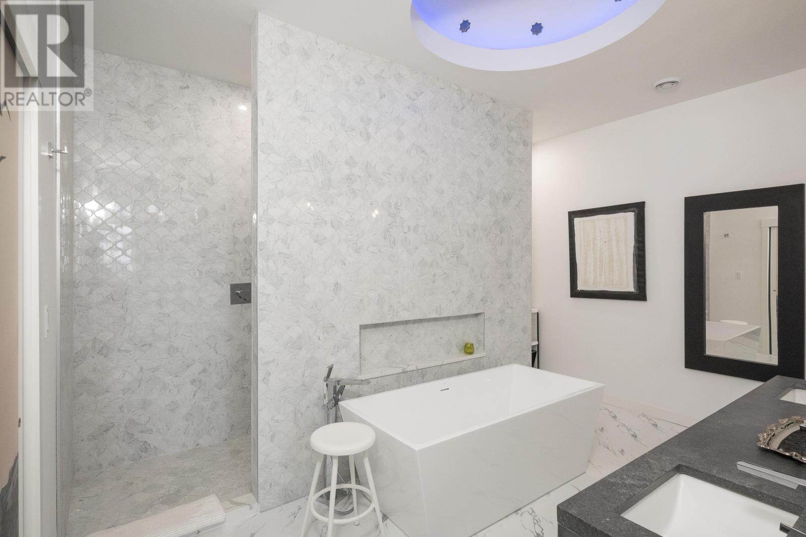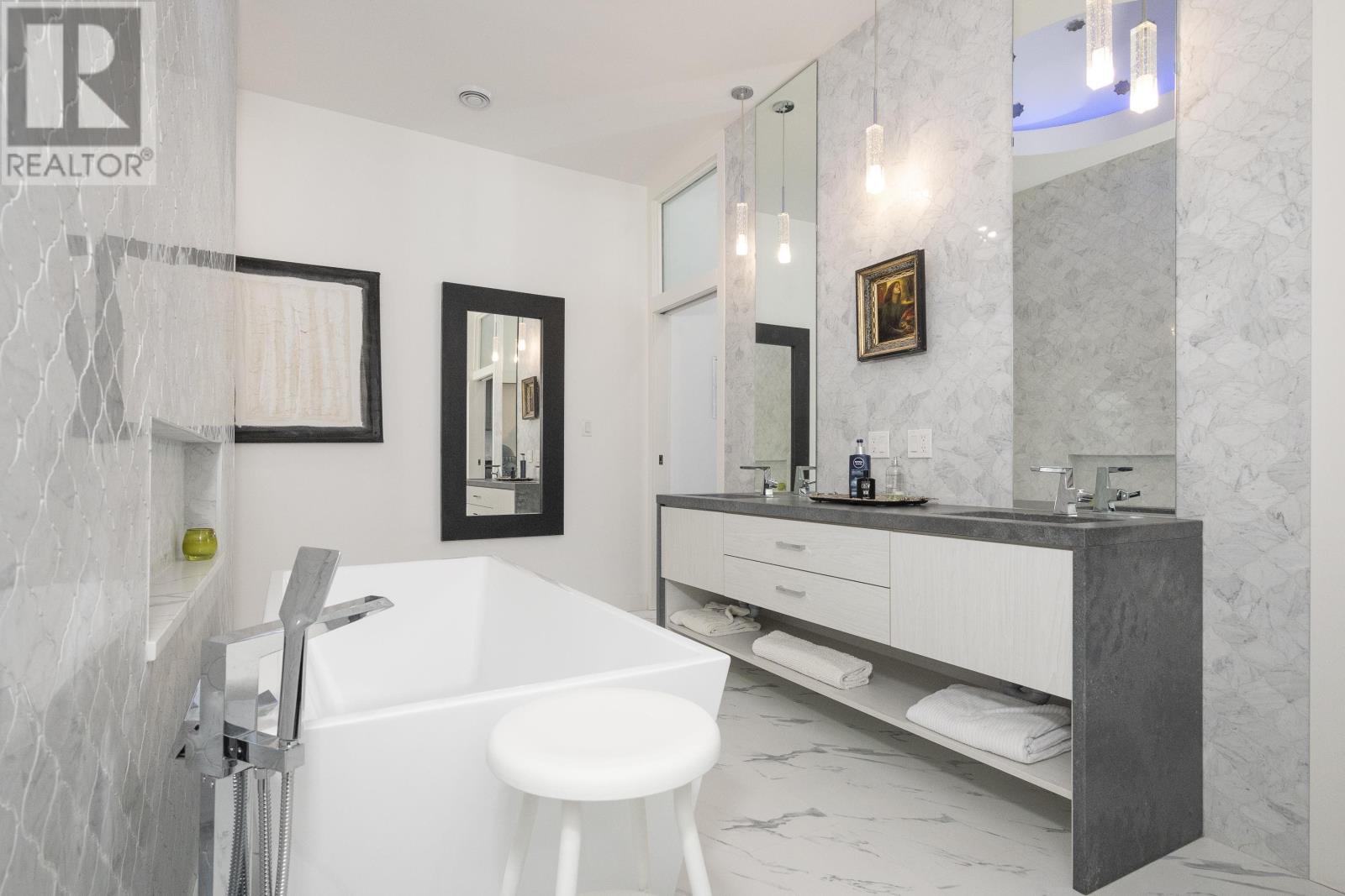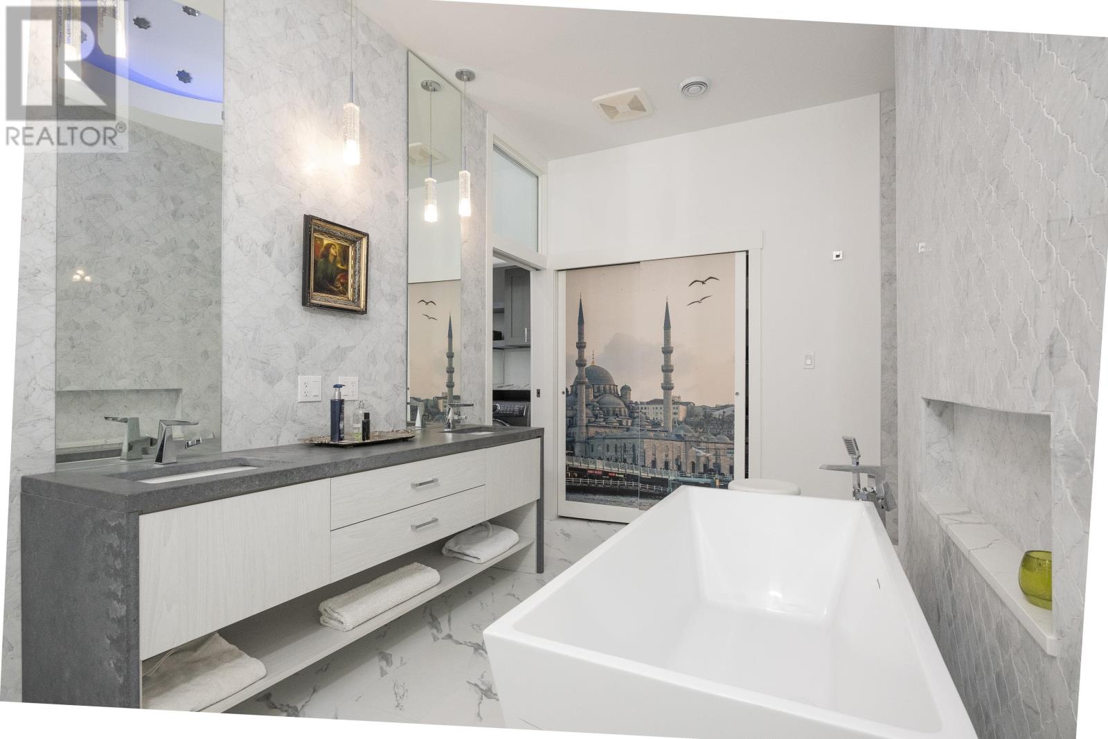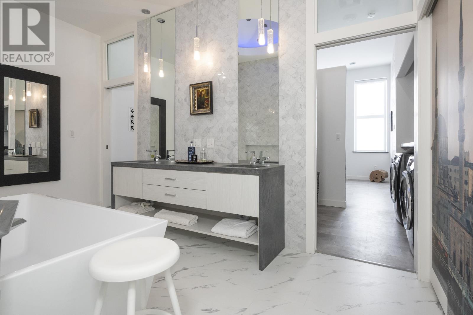 An exceptional top-floor condo offering what is widely considered the best view in the building, perfectly centered to capture breathtaking vistas of the Sleeping Giant and Lake Superior. This outstanding residence features 1,530 square feet of beautifully designed living space with impressive 12-foot high ceilings and an open, light-filled layout. The condo includes two spacious bedrooms and two full bathrooms, highlighted by an exceptional primary suite that flows seamlessly through dual walk-in closets into a spa-inspired ensuite with double sinks, a soaking tub, a walk-in shower, and in-suite laundry. The living and dining areas are anchored by a striking two-sided gas fireplace, creating warmth and elegance throughout the space. Step onto the balcony to enjoy uninterrupted lake views and spectacular sunsets over Lake Superior. Completing this rare offering is a private garage measuring approximately 28’ x 10’, potentially to accommodate 2 small cars, and is great for bike storage, shelving and recycling, adding both convenience and exceptional value. Truly the premier condo in the building, combining superior views, thoughtful design, and refined living in one of Thunder Bay’s most sought-after settings. (id:64974)