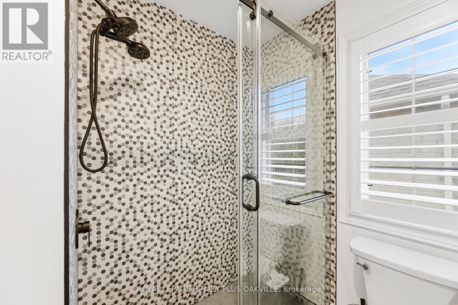 Rarely available this beautiful bungaloft has over $225K in recent upgrades! Refinished Maple hardwood flooring throughout, wood staircase with wrought iron spindles (2023), Kitchen reno'd with quartz counters, backsplash and redesigned cabinet doors (2023), all 3 main bathrooms recently renovated bathrooms with quality workmanship in 2025, basement bath updated 2023. Foyer tiles 2025.Gorgeous open concept layout sundrenched with natural light. Vaulted ceilings! California Shutters throughout (2023). Situated on a large irregular quiet corner lot with lovely landscaping, newly paved rear patio and front driveway and walkway 2025! Private backyard!Fully finished basement with 2nd kitchen or bar, rec room with electric fireplace, games area, 2 bedrooms, den & 3 piece bath! Excellent for extended family or income potential! Located in demanding Bronte Creek neighbourhood near walking trails, Bronte Park, walk to schools and minutes to highways 407 & QEW/403! Will not disappoint! (id:64974)