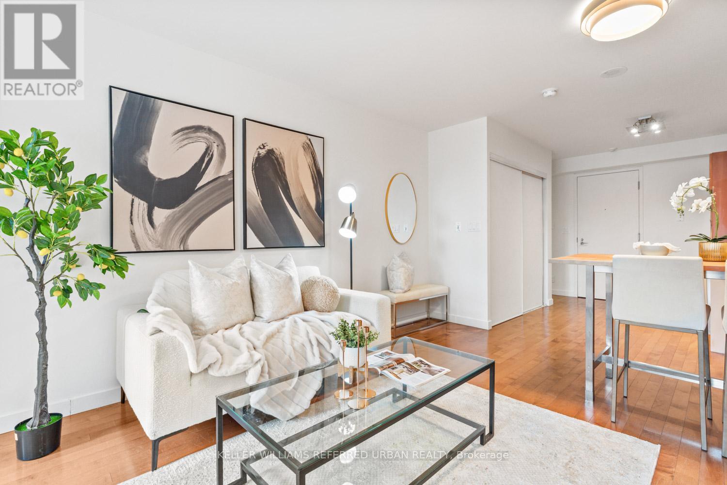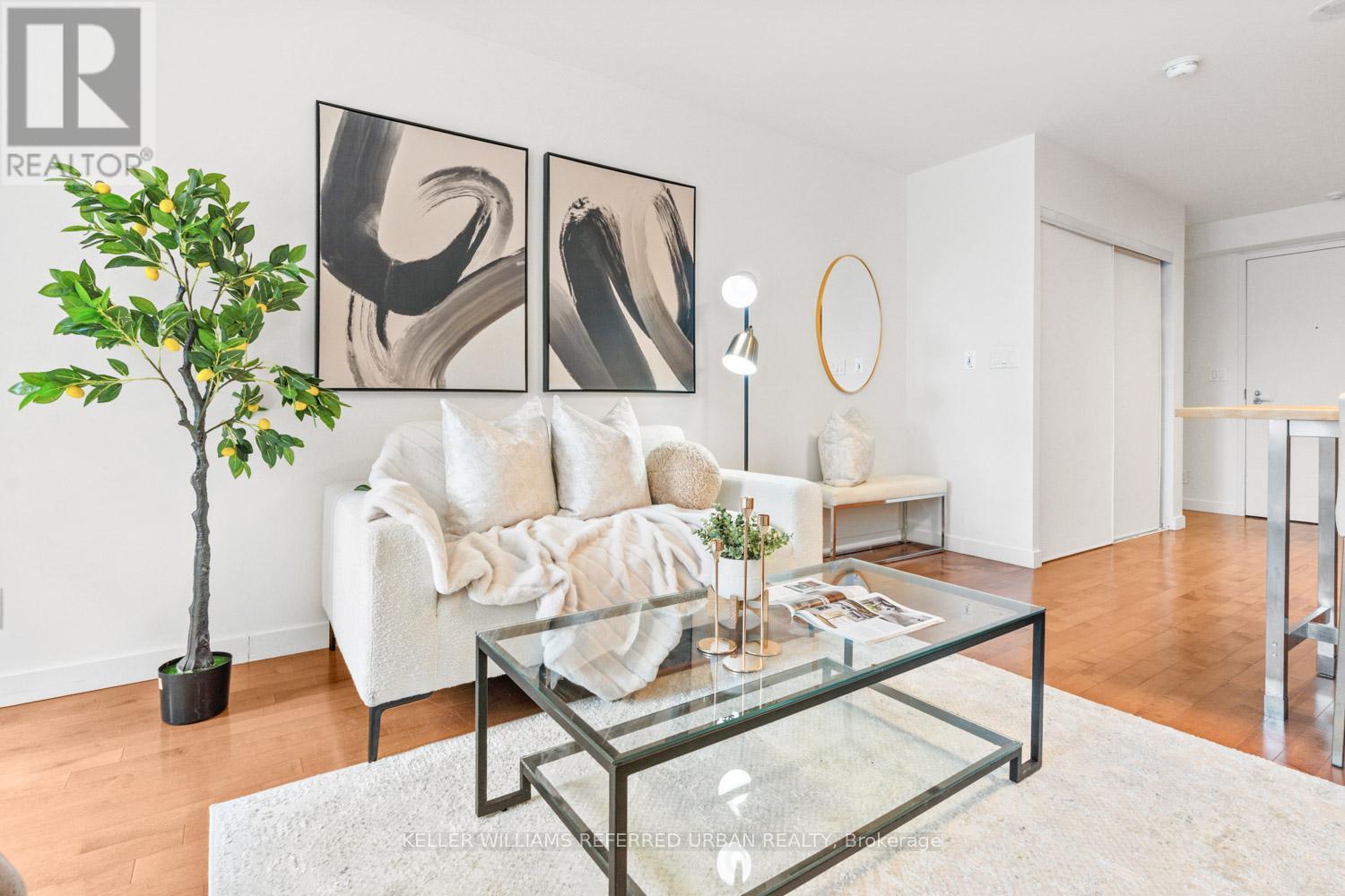 Still renting in King West because you think you need to save for something bigger? That might be the more expensive mistake. This smart 430 sq. ft. studio at DNA2 is proof that your first property does not need to be your forever property, it just needs to get you in. The layout actually works, with space for a bed, living area and dining table, and a Murphy bed would completely change the game here. You've got a proper front hall closet with built-ins, a great-sized bathroom, a locker, and low maintenance fees that cover almost everything except hydro. Set in a well-managed building with the streetcar at your door, you can walk to the Financial District, great bars, restaurants, cafés and more. Buy smart, build equity, then level up later. (id:64974)