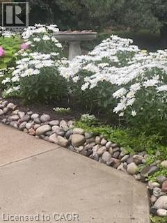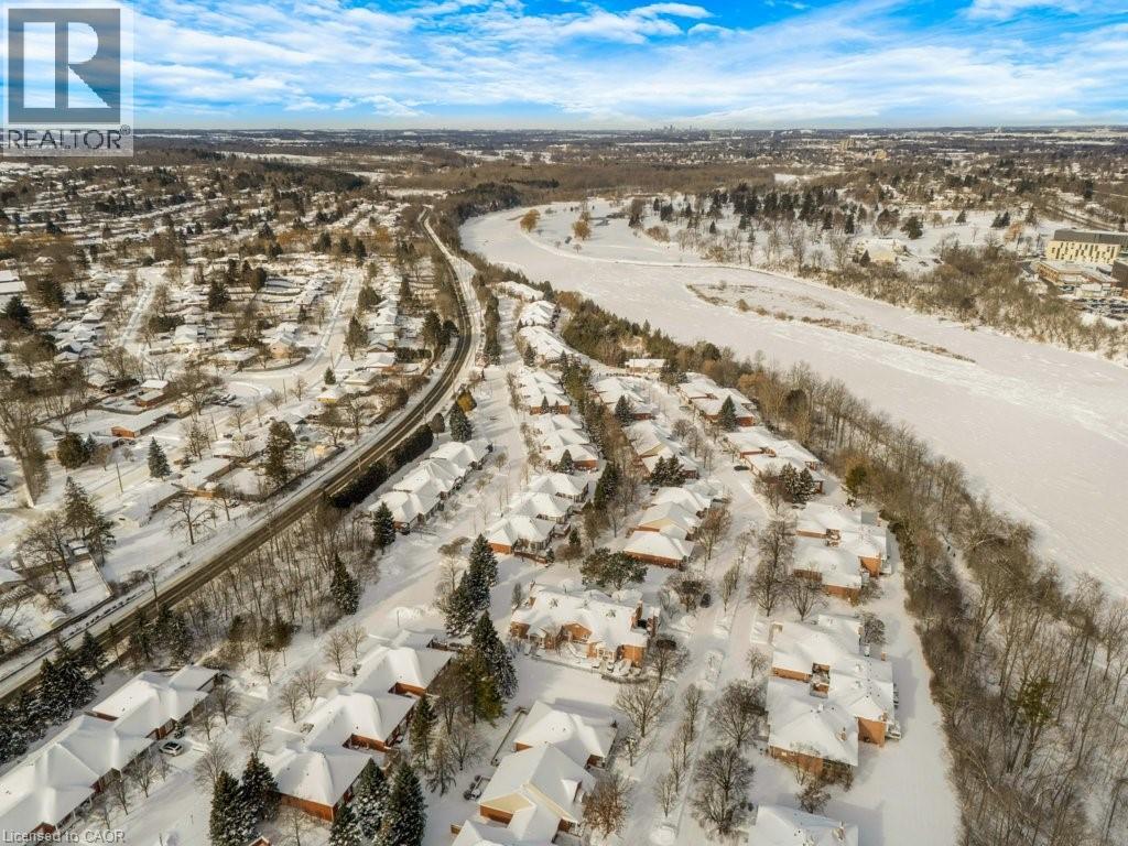 Experience the perfect blend of nature and modern luxury at the Riverwalk Condominiums. This stunning two-bedroom raised bungalow offers a rare lifestyle opportunity along the banks of the Grand River. The heart of the home is a chef-inspired kitchen, fully updated in 2024/2025 with rich walnut cabinetry, porcelain walls, and a striking mix of stainless steel and leathered granite countertops. Morning coffee is best enjoyed at the live-edge breakfast bar or through the sunny patio doors onto your private retreat. The open-concept living area, anchored by an electric fireplace and crown moulding, is bathed in natural light from a classic bay window. Retreat to the primary suite featuring a magnificent walk-in closet, or utilize the second bedroom, a showstopper with vaulted ceilings and a Palladian window, as a fabulous home office with its own private balcony. The lower level expands your footprint significantly, offering a massive media room, a flexible bonus room for guests or fitness, and a bright, sun-filled laundry suite with direct garage access. For larger family gatherings, residents can use the Quarry House with cozy fireplace setting, full kitchen & bathroom areas. In nicer weather there is an outdoor deck & newly installed pickleball court! Come be a part of this lovely riverside community! (id:64974)