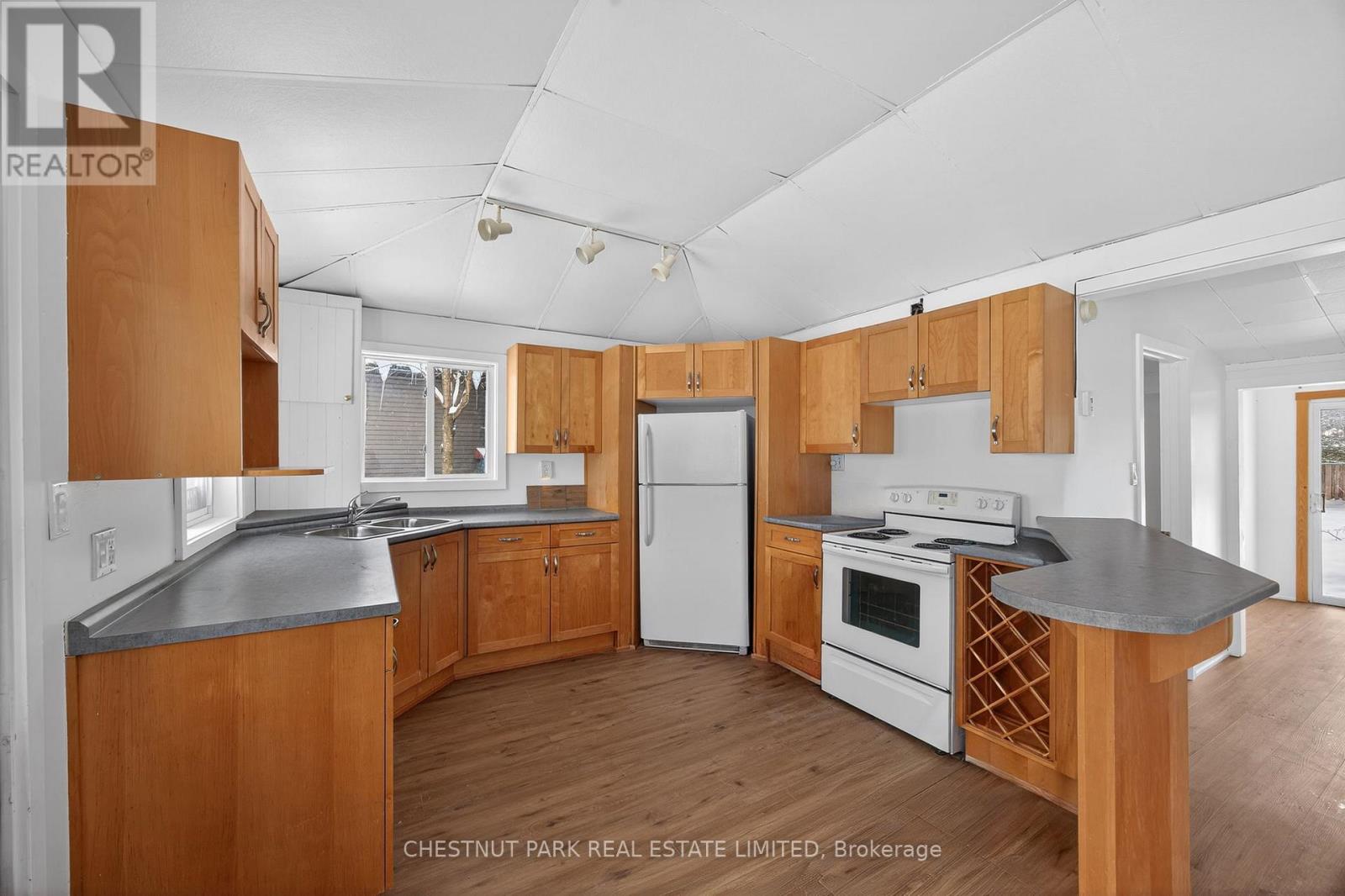 3410 Beachview Avenue is a newly renovated property located in the charming cottage community of Cumberland Beach, just steps from the shores of Lake Couchiching. Easily accessible at just over an hour from the GTA and located off Highway 11, this home offers the perfect blend of comfort and convenience. The inviting bungalow sits on a generous lot, presenting excellent potential to build, expand, or grow in the future. Inside you'll find a bright open-concept living space and brand new laminate flooring throughout. The spacious kitchen features a breakfast bar and there's also a brand-new four-piece bathroom with custom tile. Complete with private drive and two garden sheds, this home has everything you need to enjoy year-round living or the perfect summer getaway. (id:64974)