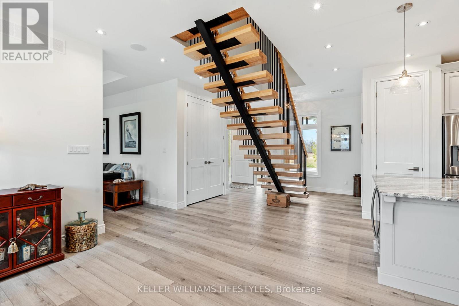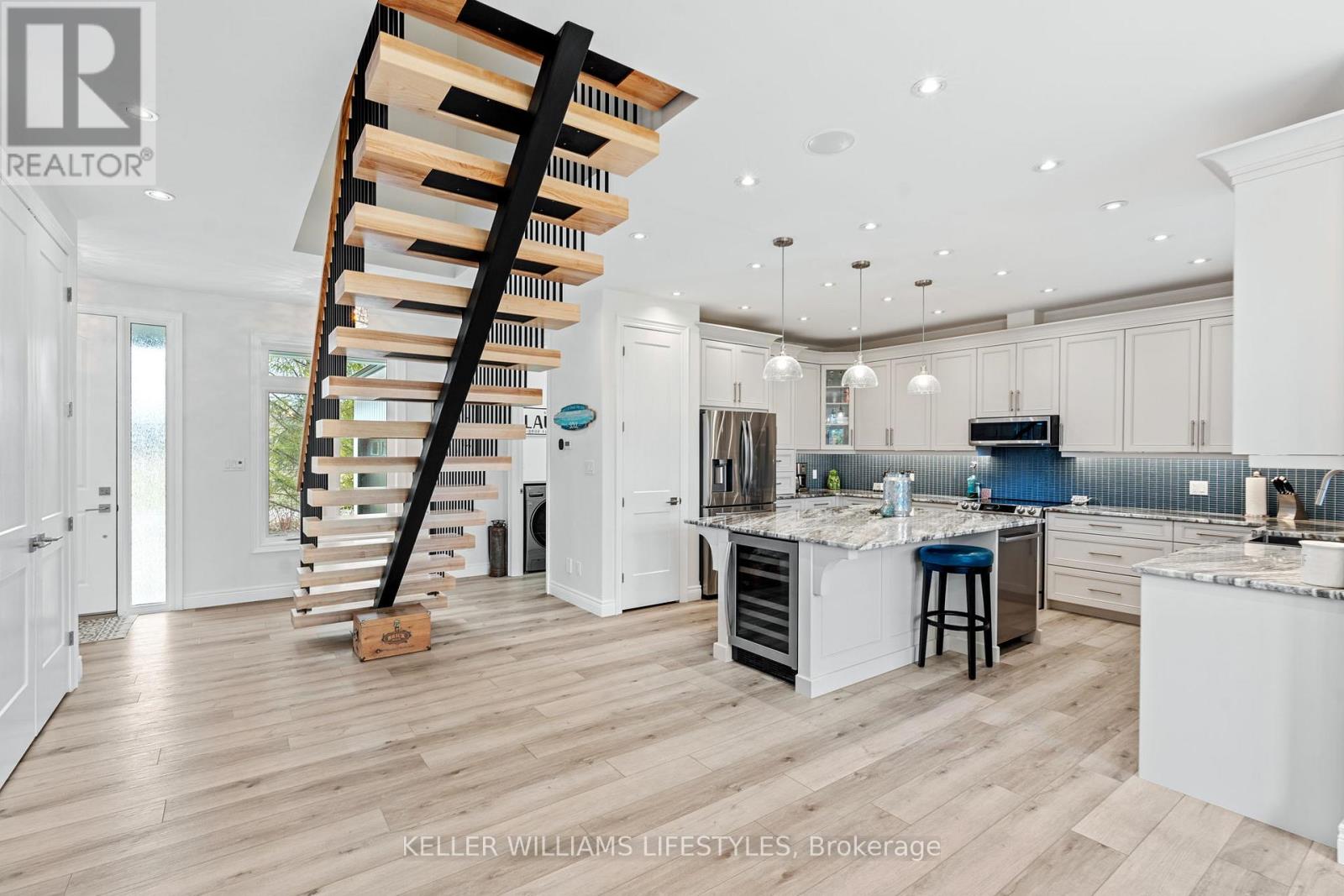 This stunning New Home is really something to behold! This builder has insured that all the details are PERFECT! And the property is located a 1minute drive North of Bayfeld, with Lake Huron just a minutes walk off of the front driveway! Detail, Detail, Detail prevail throughout the home! HUGE kitchen with HUGE Island! Tons of cupboard space! Tons of counter space! Beautiful backsplash! Wine Fridge!! (Let's not forget that!). Spacious dining area, wonderfully detailed family room featuring a trayed ceiling, gas fireplace with limestone surround, mantle and builtins on each side of the fireplace with floating ash shelves and LED under cabinet lighting. Main floor laundry room is very generously sized, with it's own sink, and ample cupboard space as well. There is also garage access here. The second floor features a LARGE PRIMARY BEDROOM and a gorgeous "uplit" trayed ceiling and 2 oversized "hers & hers" walk-In closets! The oversized 5 pc ensuite bathroom boasts: a walk-in shower with standard shower head, 4 body jets, and rain head; separate water closet; double vanity with centre make-up table; and a built-in 2 person water jet tub. Not to be outdone, the second bedroom has it's own 3 pc ensuite (Shower) as well! The lower level is not finished but finished would easily add another 1134 sq. ft. in living space. There is a bathroom rough-in in the basement. Basement windows are egress windows, so adding an extra bedroom or bedrooms has been accounted for. The Garage is a 3+ garage with plenty of room for 2 cars, toys and for boat(currently housing a 22ft Sea Ray) with full size garage door exit to back yard! The backyard is nicely sized and there are partial lake views from the property! (id:64974)