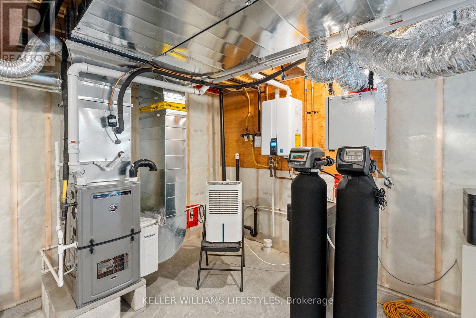 - Appliances: Washer, Refrigerator, Water softener, Central Vacuum, Dishwasher, Wine Fridge, Stove, Dryer, Microwave, Water Treatment, Window Coverings, Garage door opener, Water Heater - Tankless, Water Heater