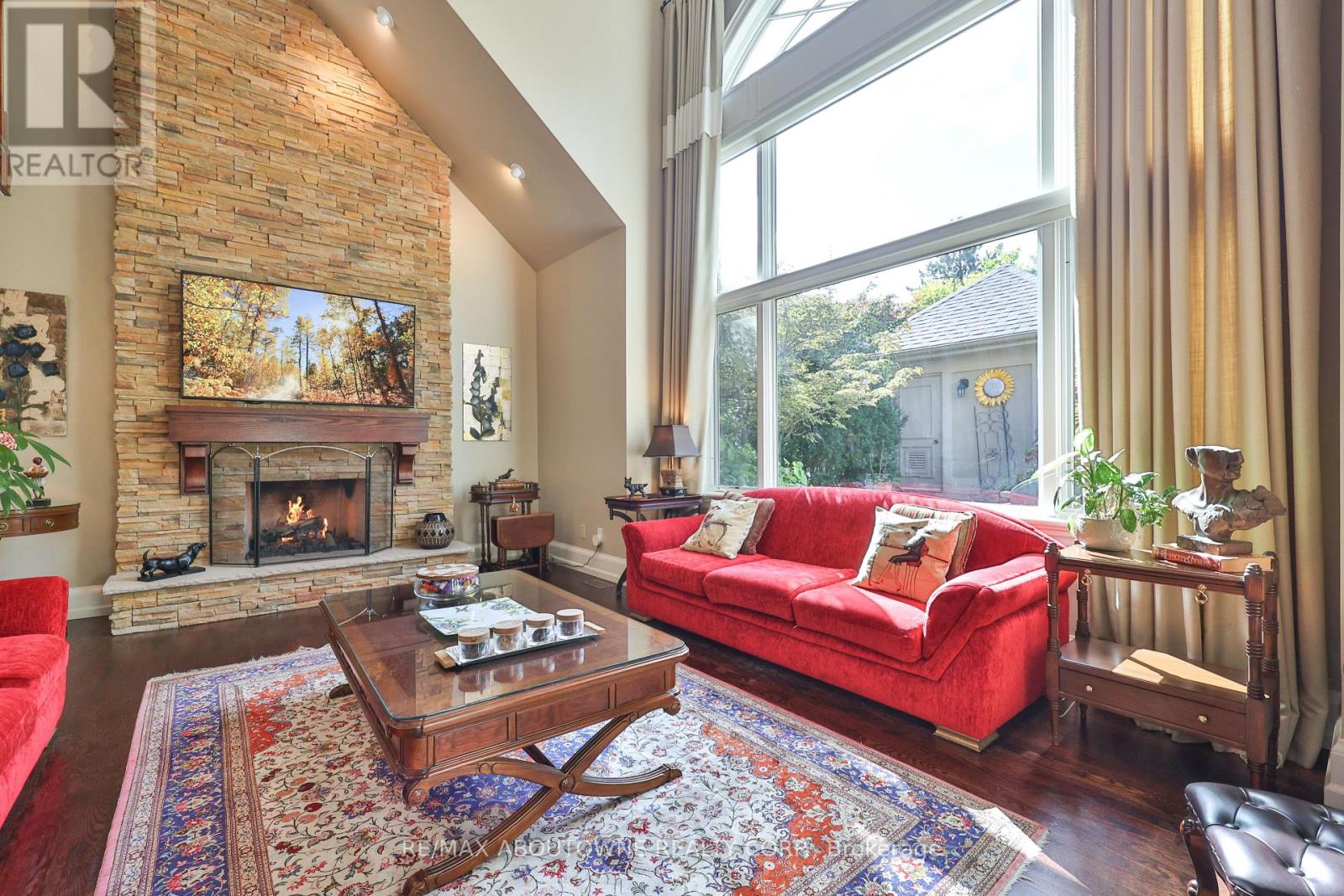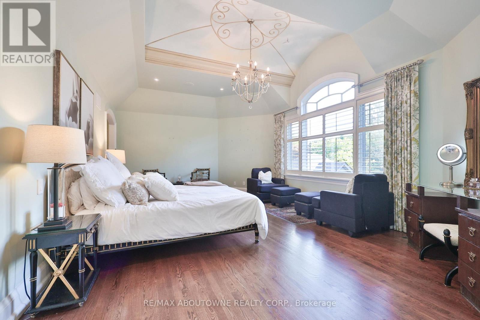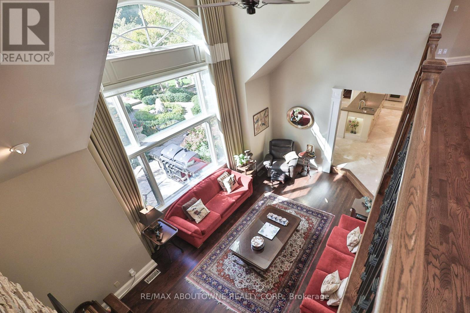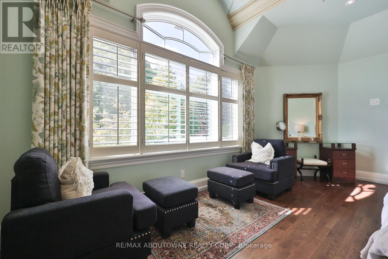 Set on a breathtaking 70'x209' private lot in Burlington's prestigious Roseland community, this stately stone and stucco home offers over 5,850 sq ft of finely curated living space across three levels. Showcasing timeless elegance and old-world craftsmanship, this home impresses with custom millwork, plaster crown mouldings, custom built-ins and rich hardwood, limestone and porcelain floors. Step into a grand foyer that leads to elegant formal dining and living rooms with a gas fireplace then discover the heart of the home: a chef's dream kitchen featuring a sprawling island, top-of-the-line appliances, walk-in pantry, sunlit breakfast area with a walk out to the stunning gardens. Adjoining the kitchen is the great room with a two-storey ceiling, gas fireplace and a wall of windows framing your own backyard paradise. The main level also features a home office, stylish powder room and custom mudroom with access to an oversized double garage with epoxy floors. Upstairs, unwind in your primary retreat with vaulted ceilings, sunlit walk-in closet and luxurious 4-piece spa-inspired ensuite with steam shower. A loft-style library with built-in bookcases overlooks the great room and three more spacious bedrooms include a private guest suite, a shared 4-piece bath and convenient upper-level laundry. The lower level features a home theatre room, hobby room, second laundry, fitness studio with beverage centre and 3-piece bath and storage. Outside, the resort-style backyard is an entertainer's dream featuring a 20'x40' saltwater gunite pool ('19), stucco pool house ('15) with kitchenette, change room and garden storage, a pergola-covered stone patio ('19) with gas fireplace, dramatic landscape lighting and tranquil stone water feature, surrounded by stunning, lush, mature gardens. Just steps to top schools, parks, downtown and the lake, this distinguished home with its meticulous attention to detail exudes warmth and comfort and will appeal to the most discerning buyer. (id:64974)