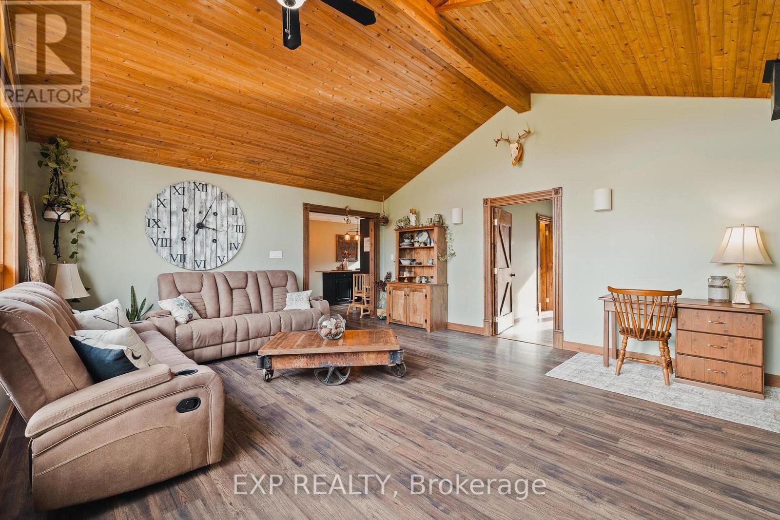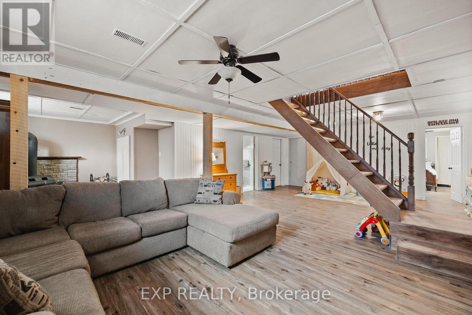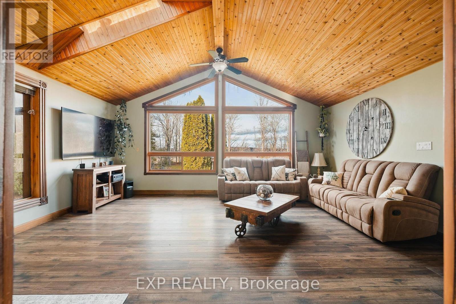 Welcome to 342008 Concession 14, a modern farmhouse retreat tucked into the quiet beauty of Georgian Bluffs. Set on just under an acre and wrapped in mature trees, this updated bungalow offers the kind of calm you can actually feel, the kind that makes you forget the city even exists. Step inside to bright, open living spaces filled with natural light and thoughtful custom details, from the trim work to the barn doors carried throughout the main floor. The newly completed primary suite (2024) feels like a true getaway, complete with a fresh, spa-inspired ensuite. Two additional bedrooms and a modern 4-piece bath round out the main level, keeping family life easy and uncluttered. Downstairs, the finished lower level extends the home's comfort with a fourth bedroom and a cozy wood-burning fireplace, perfect for movie nights or slow winter weekends. This level also offers a third full bathroom and flexible space for guests, hobbies or a quiet retreat. Recent updates bring peace of mind along with the peaceful setting, including a new roof and timber-frame front porch (both 2020), creating a warm and timeless first impression the moment you arrive. And when you're ready to explore, you're minutes from Shallow Lake and a short drive to Wiarton, Sauble Beach and Owen Sound. A place to slow life down with room to breathe, grow and simply be. Welcome home. (id:64974)