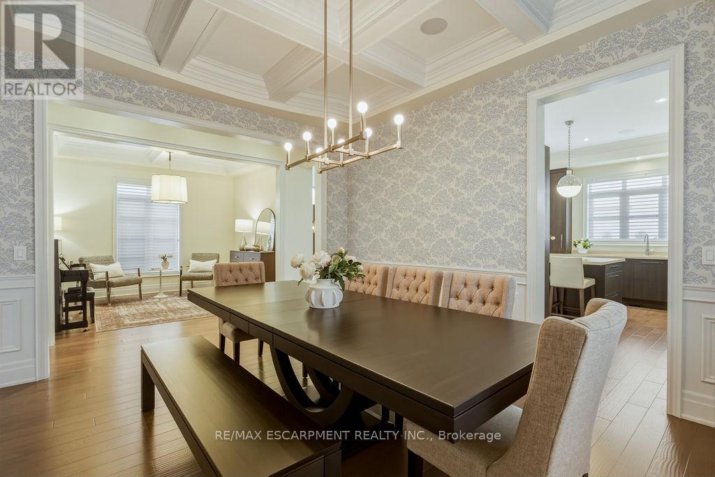 Discover a lifestyle of refined comfort in the highly coveted Royal Oakville Club. This exquisite Fernbrook-built residence in South Oakville seamlessly blends grand architectural scale with the warmth of a true family home. Over 5000 finished square feet -every inch of this 4+1 bedroom home has been curated with an eye for detail.The heart of the home is a chef's dream: a gourmet upgraded Downsview kitchen featuring a sprawling centre island for five and a professional-grade Wolf and Sub-Zero appliance suite. Whether you are hosting formal gatherings under the coffered ceilings of the dining room or enjoying a quiet evening by the fire in the family room, the 10-foot ceilings and bespoke millwork create an atmosphere of airy sophistication.Retreat upstairs to find two magnificent primary suites, each serving as a private sanctuary with spa-inspired ensuites and custom wardrobe styling. Recently upgraded and landscaped rear yard with Unilock stone landscaping and a meticulous and thoughtfully designed garden. From the white-to-pink transition of the hydrangeas to the year-round privacy of the Norwegian Spruce, the backyard is an enchanting private oasis. Situated moments from Appleby College and the charming boutiques of downtown Oakville, this is more than a home-it is your retreat by the lake in a spectacularly convenient location. (id:64974)